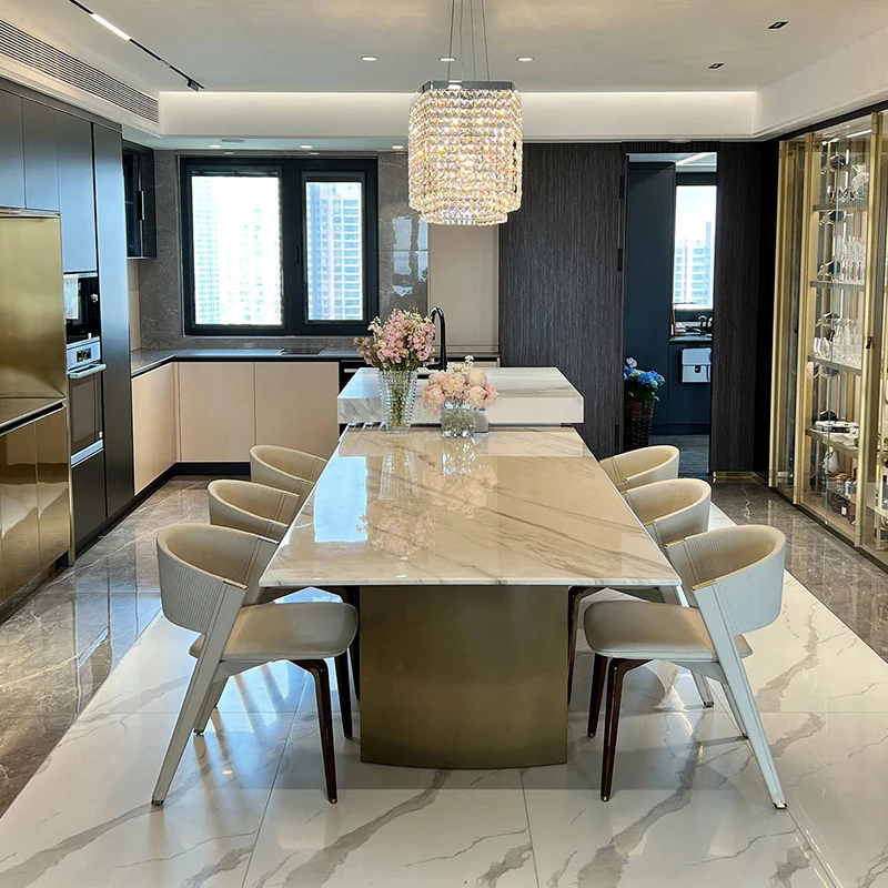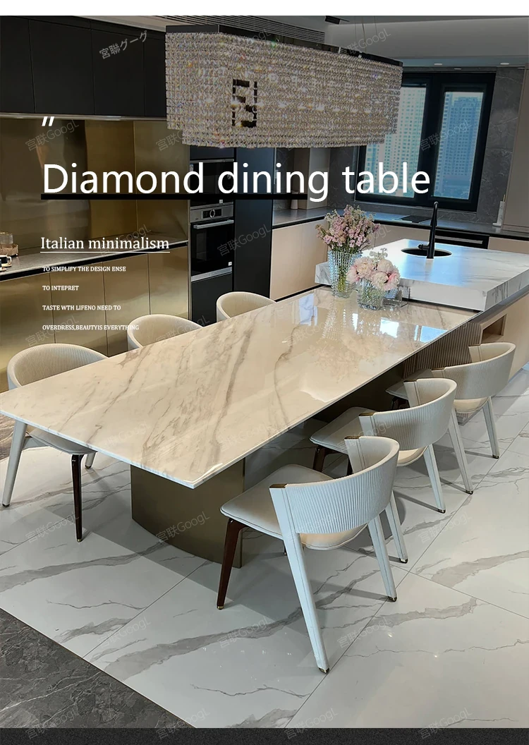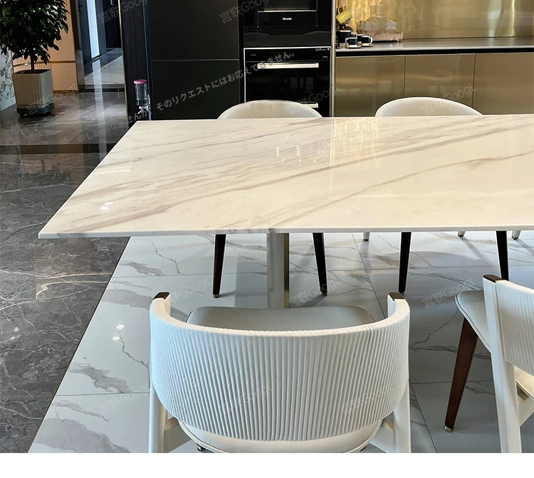 高級天然大理石長方形ダイニングテーブル - イタリアンミニマリズムデザインのジャズホワイト、洗練された空間を演出する贅沢な一品!