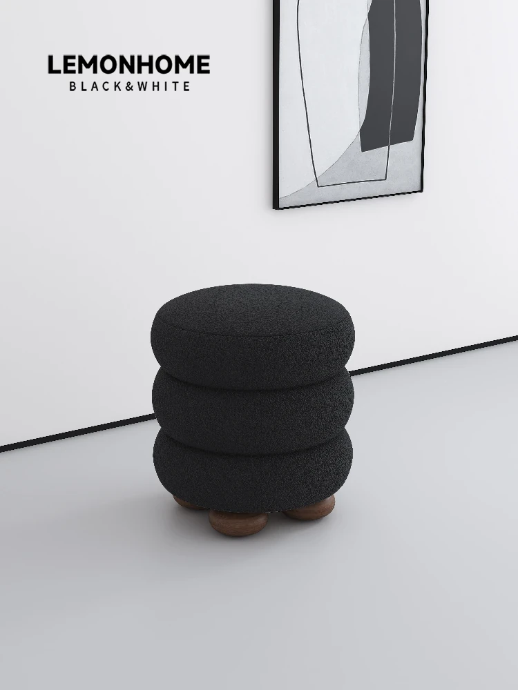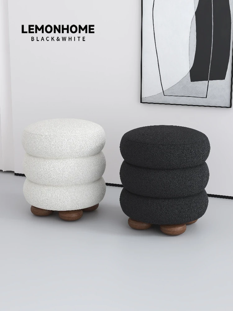 ミニマルデザインの化粧スツール、ラグジュアリーなラムファー仕立て!インスタ映えするクリエイティブなデザイナーによるイタリアンスタイルのシンプルなベッドルーム用ドレッシングテーブルサークルスツール。
