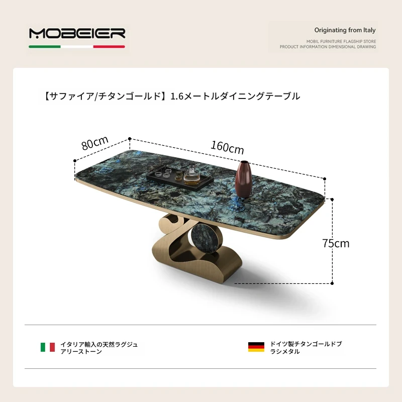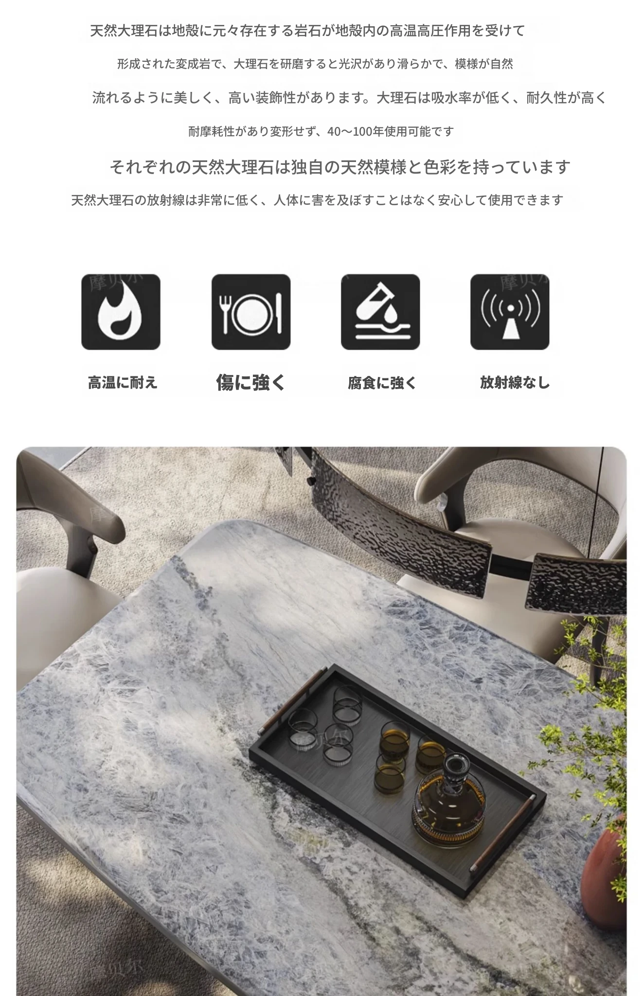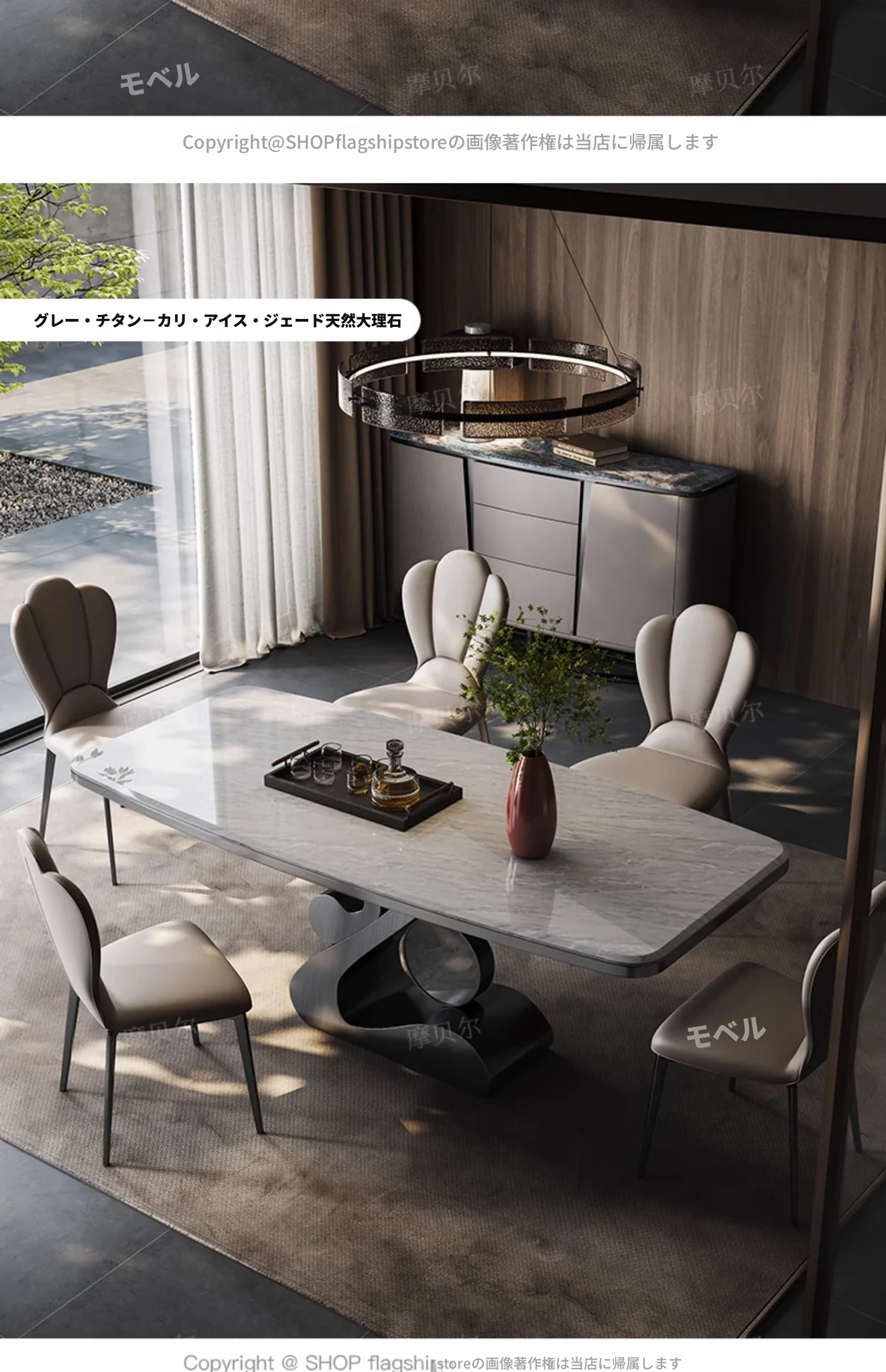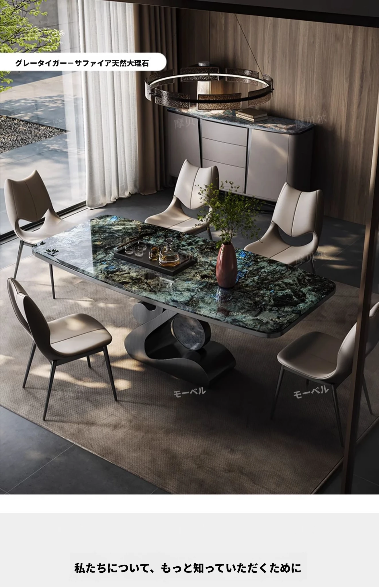 モベイエール 大理石ダイニングテーブル 高級感溢れる別荘スタイル イタリアンデザインの長方形 サファイアストーン製 食卓セット