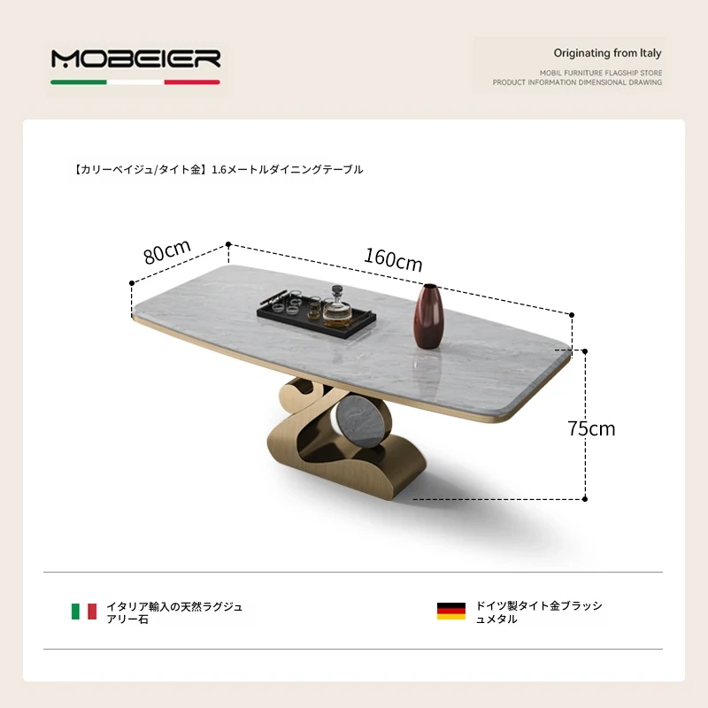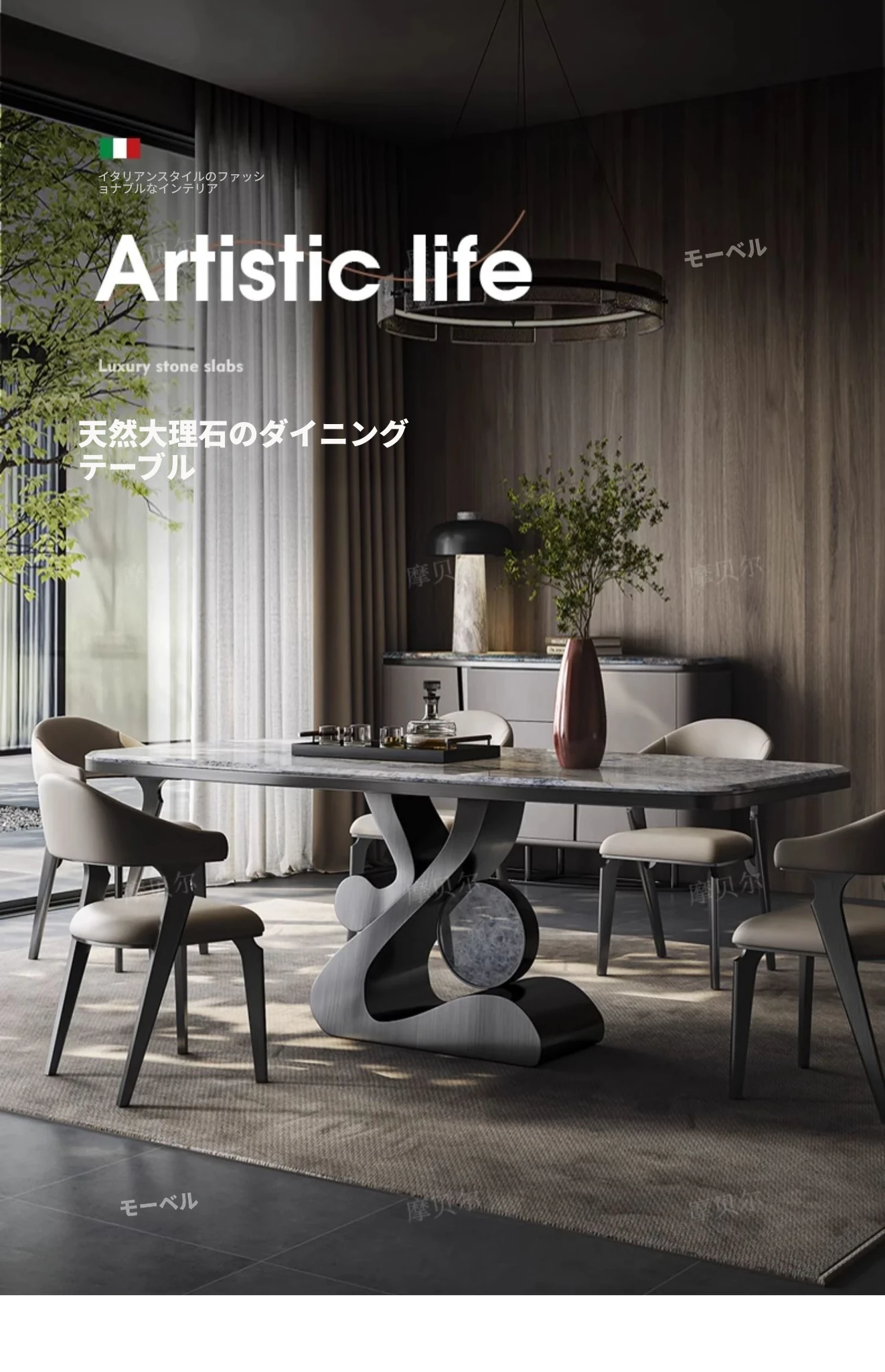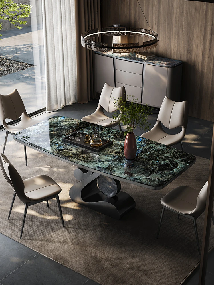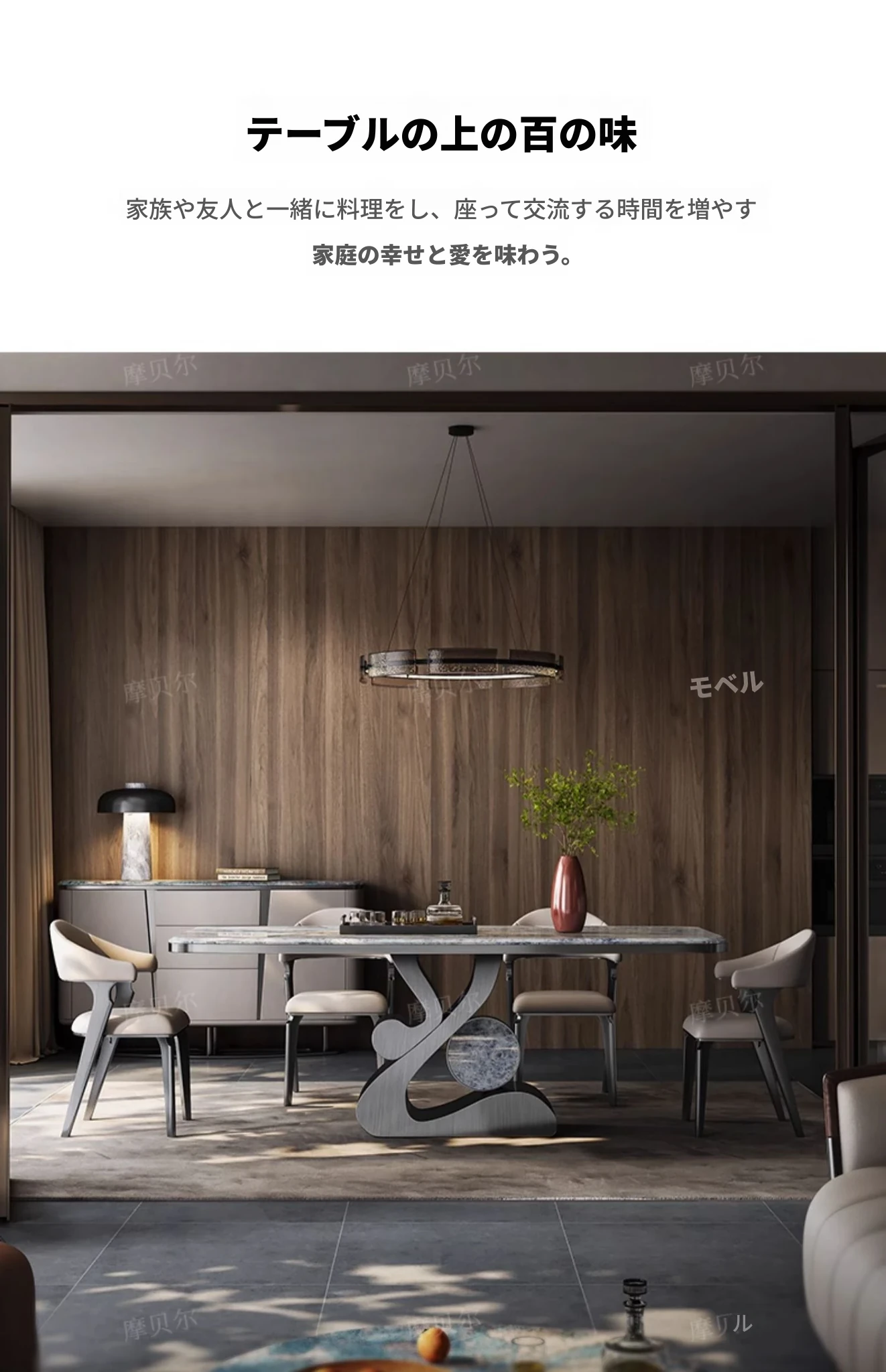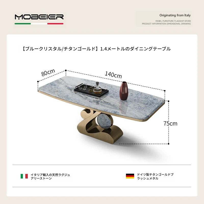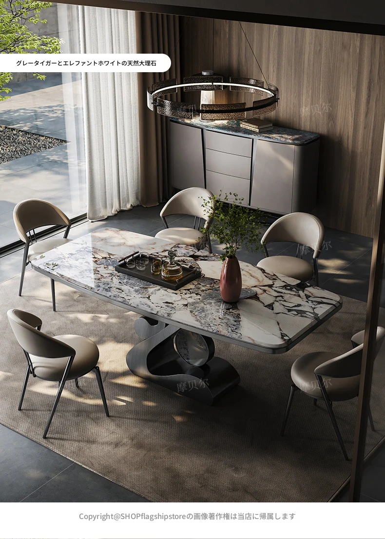 モベイエール 大理石ダイニングテーブル 高級感溢れる別荘スタイル イタリアンデザインの長方形 サファイアストーン製 食卓セット