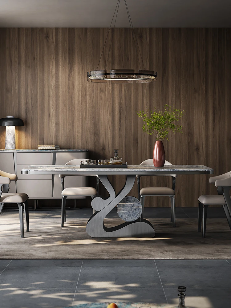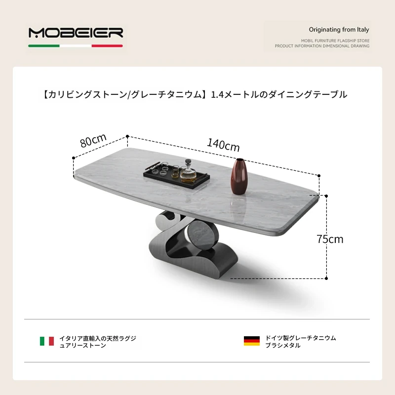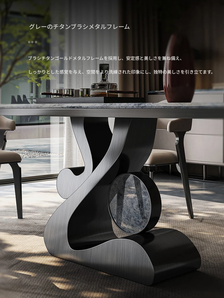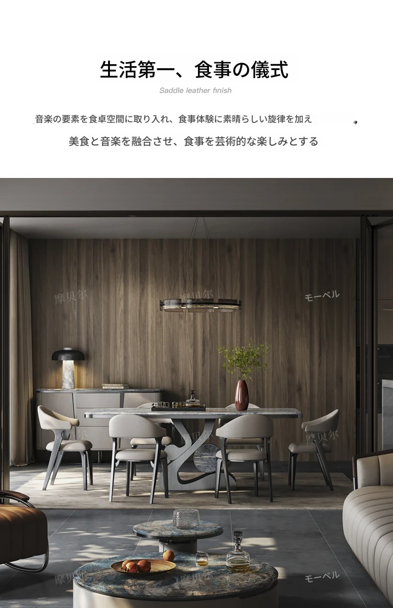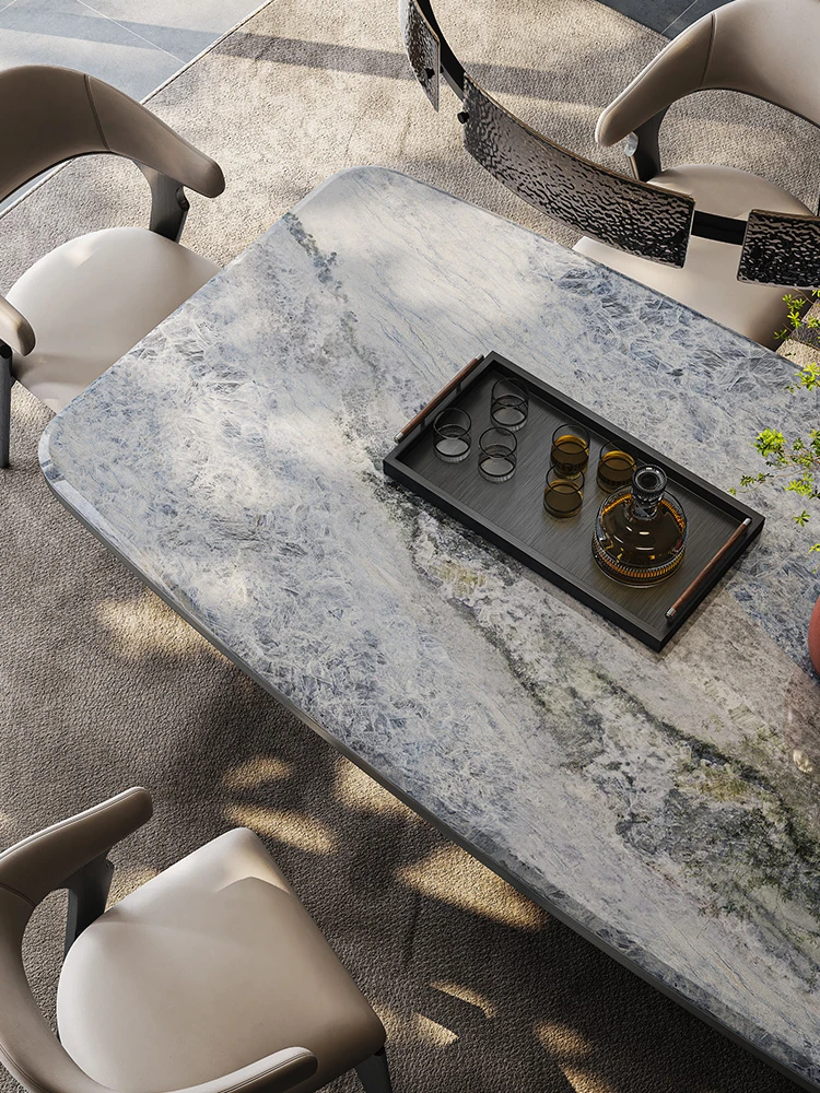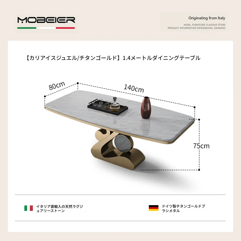 モベイエール 大理石ダイニングテーブル 高級感溢れる別荘スタイル イタリアンデザインの長方形 サファイアストーン製 食卓セット