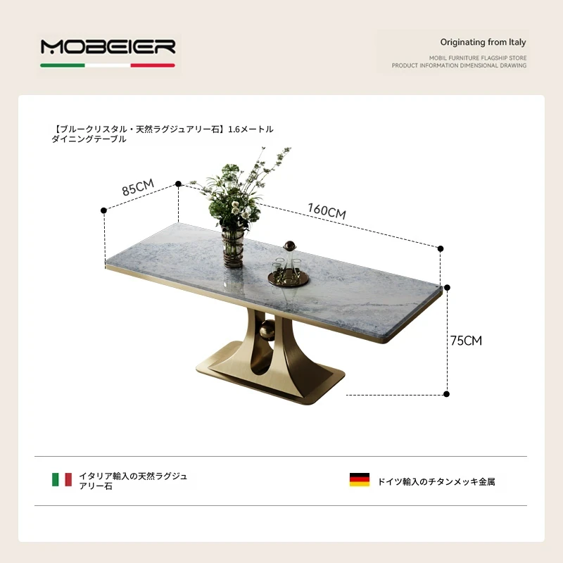 【ブルークリスタル・天然ラグジュアリーストーン】1.6メートルダイニングテーブル