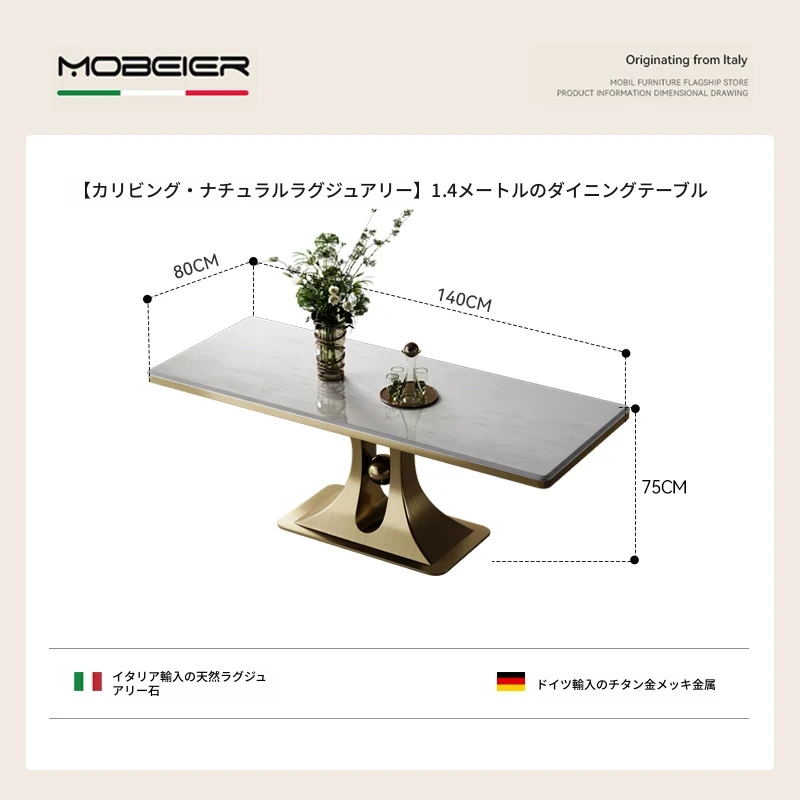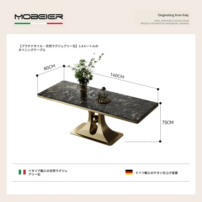 【プラチナタイル・天然ラグジュアリーストーン】1.4メートルダイニングテーブル