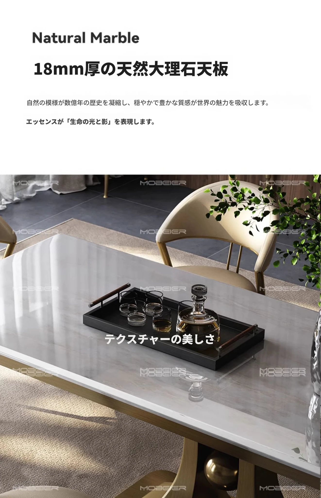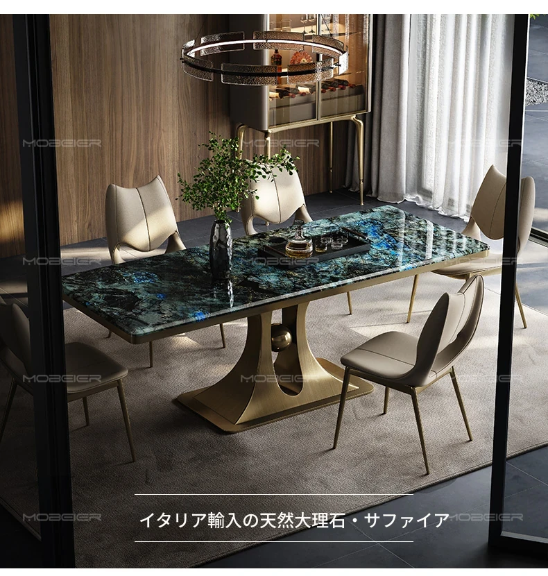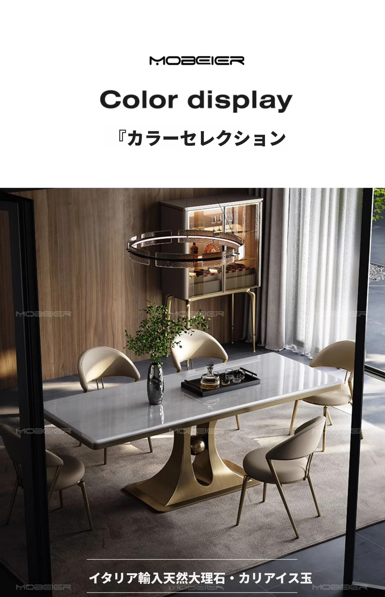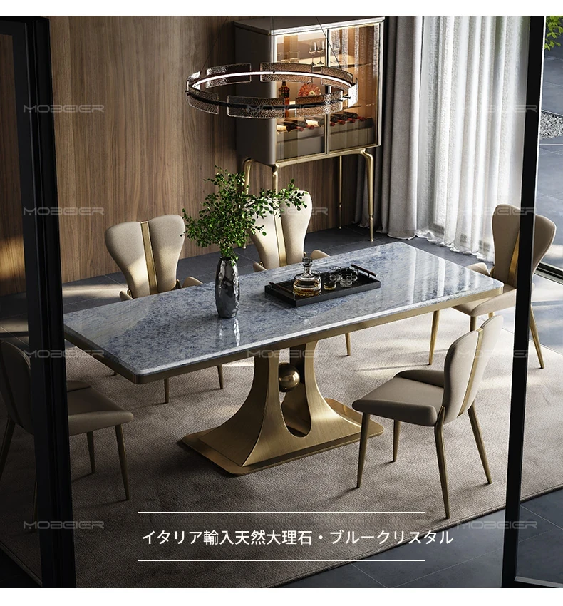 モビエール 天然大理石ロングテーブル カリブアイスジュエル 高級感あふれるラグジュアリーなダイニングセット チェア付き