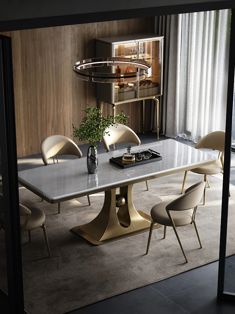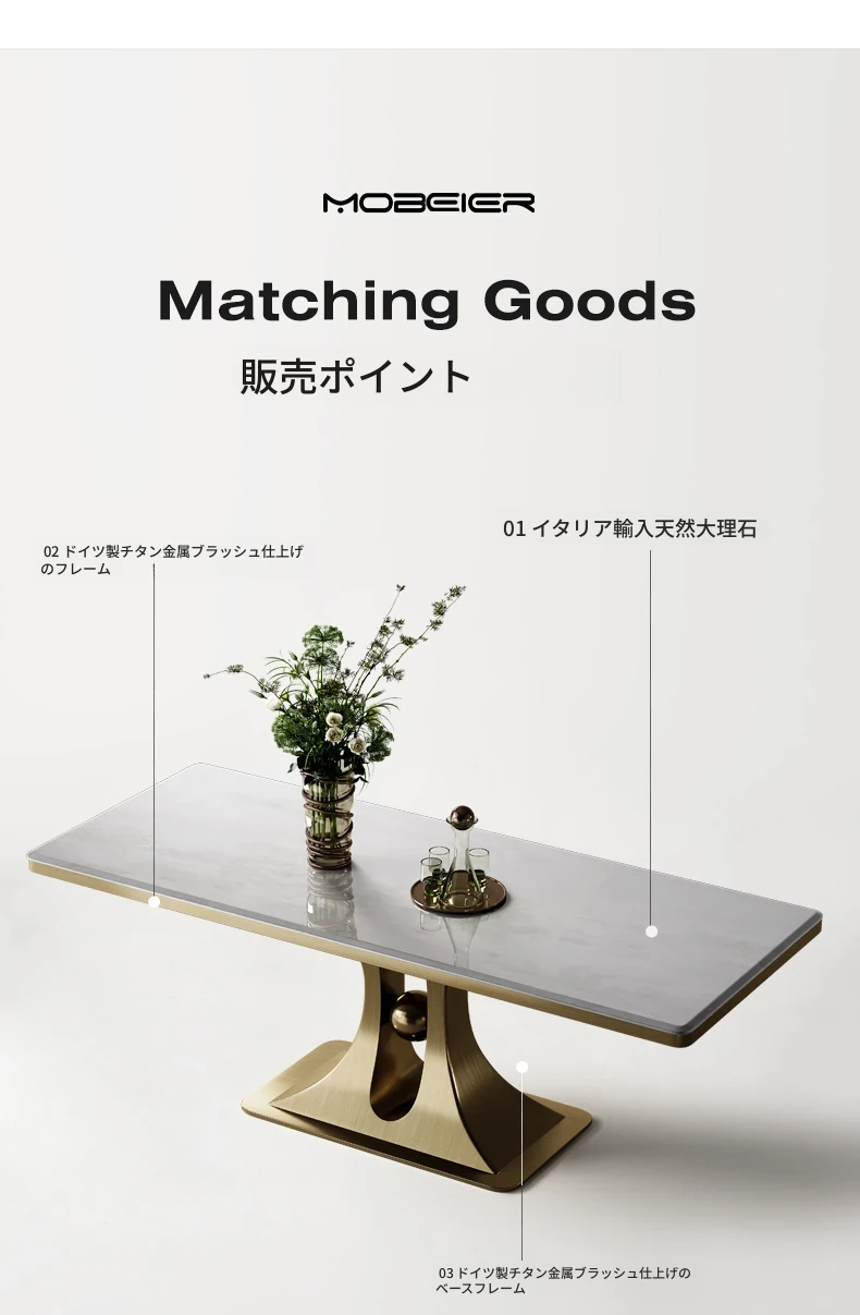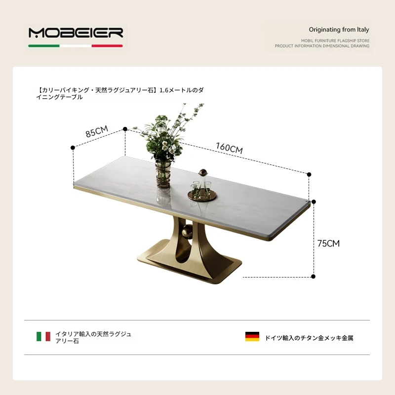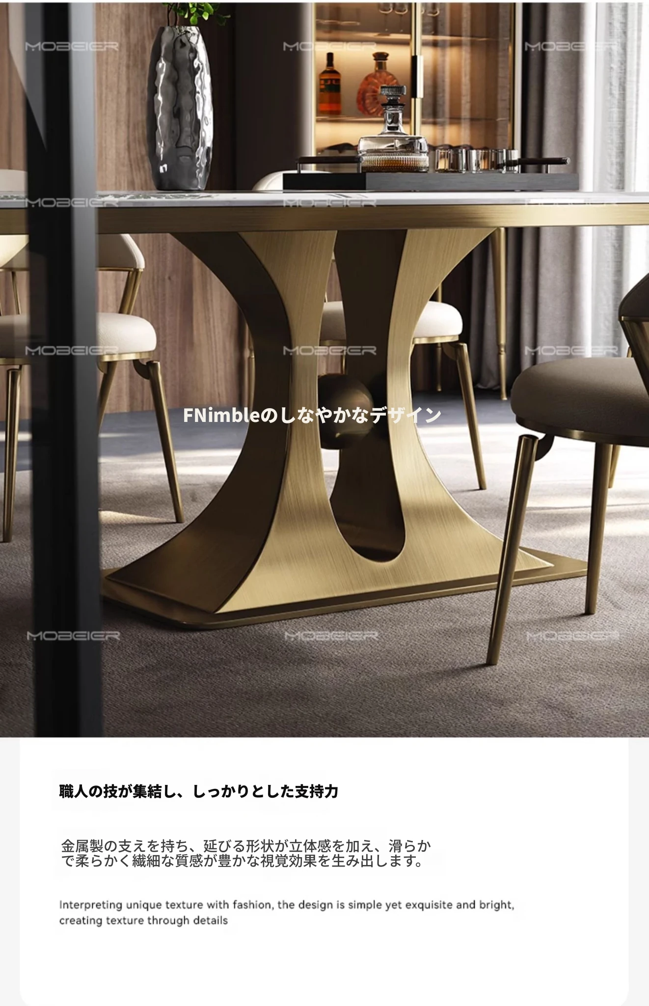 モビエール 天然大理石ロングテーブル カリブアイスジュエル 高級感あふれるラグジュアリーなダイニングセット チェア付き