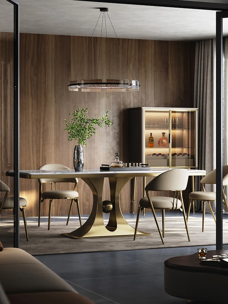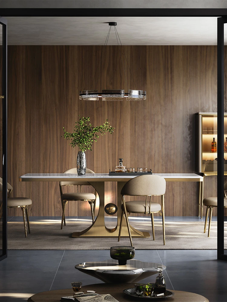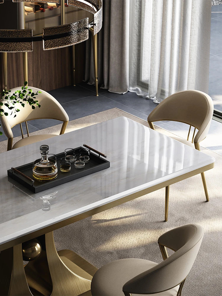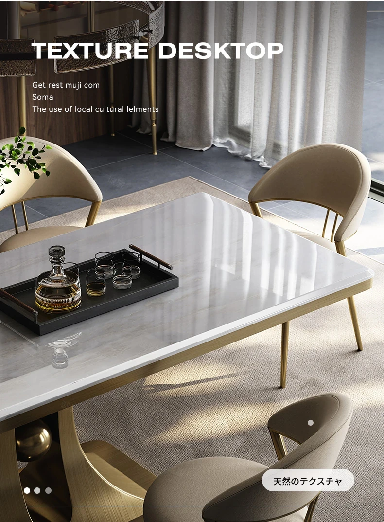 【カーリーアイスストーン・天然ラグジュアリーストーン】1.8メートルダイニングテーブル
