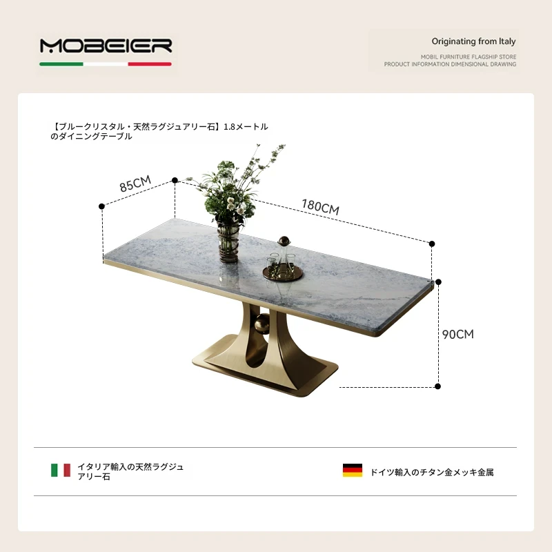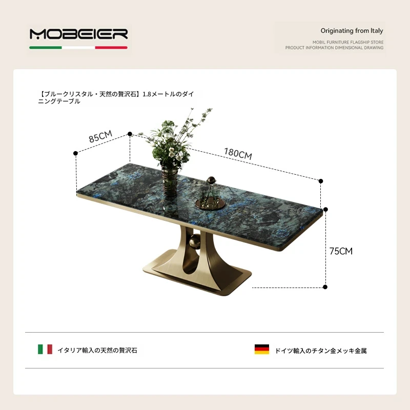 【ブルークリスタル・天然ラグジュアリーストーン】1.8メートルダイニングテーブル