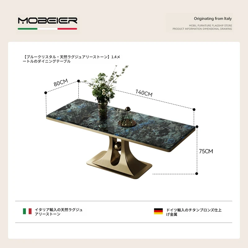 【ブルークリスタル・天然ラグジュアリーストーン】1.4メートルダイニングテーブル