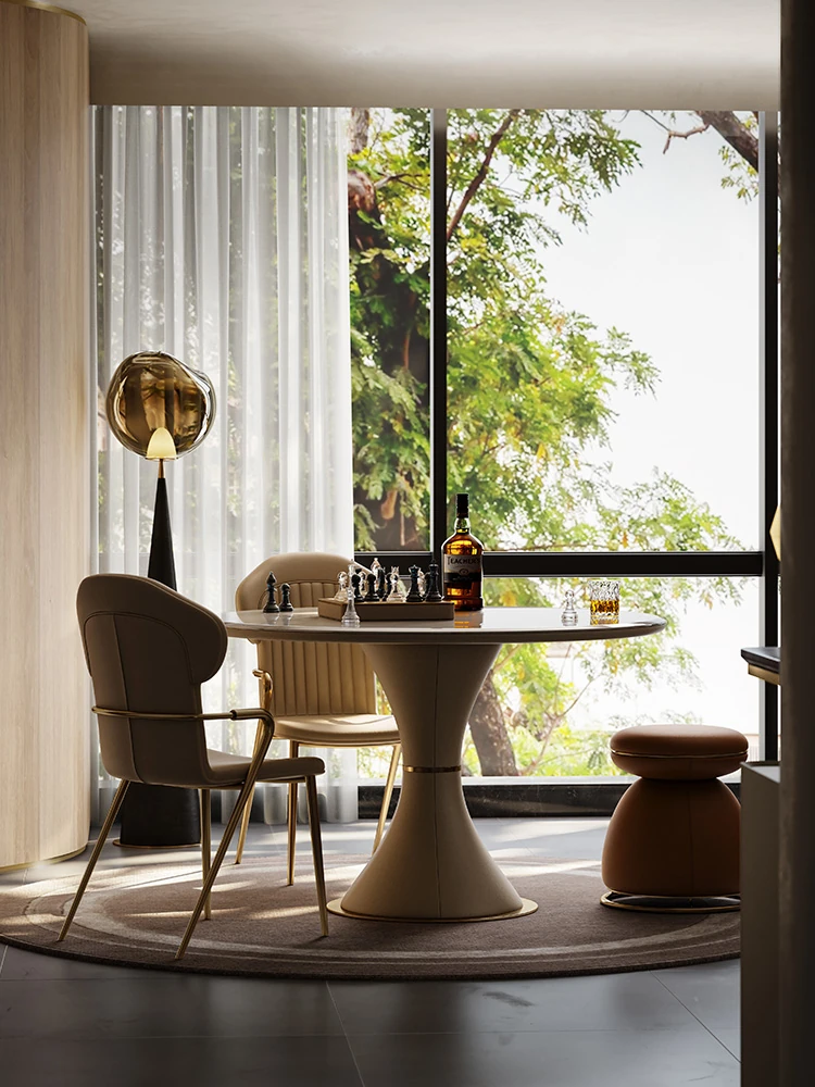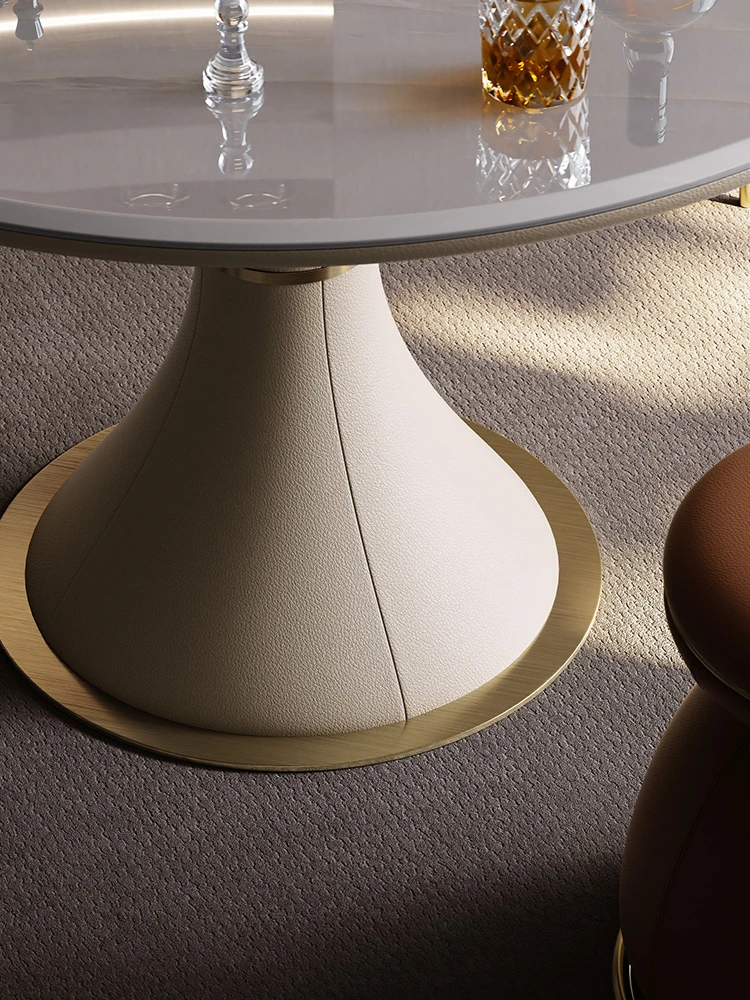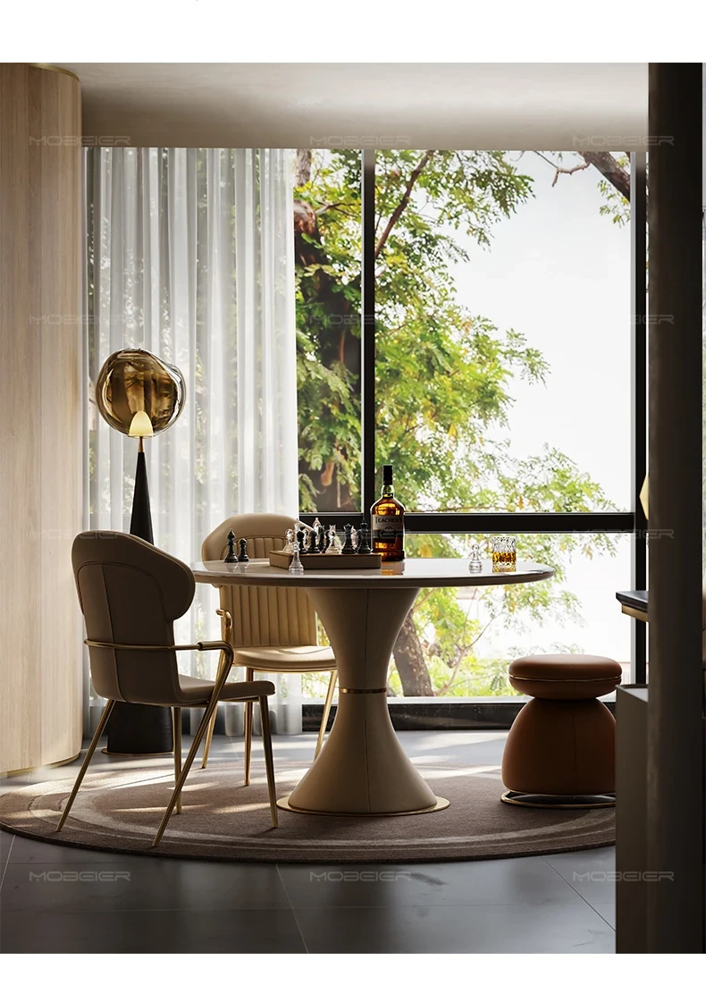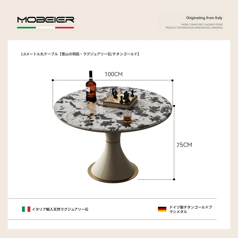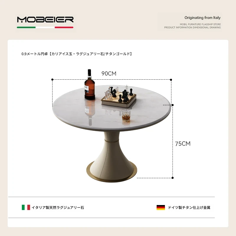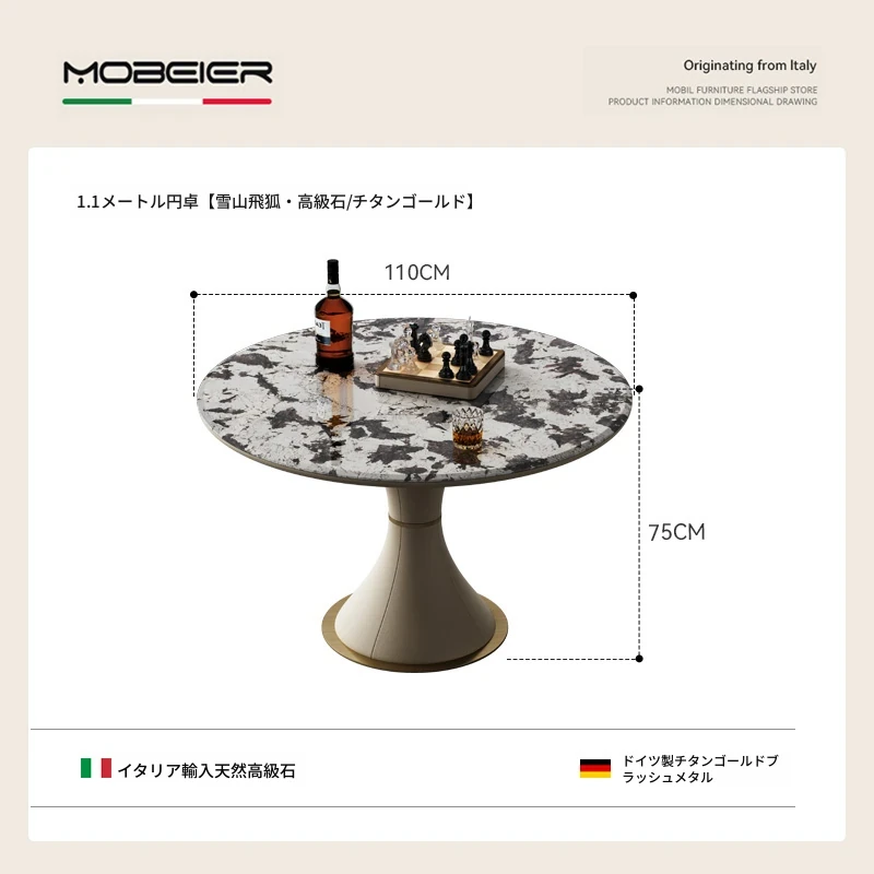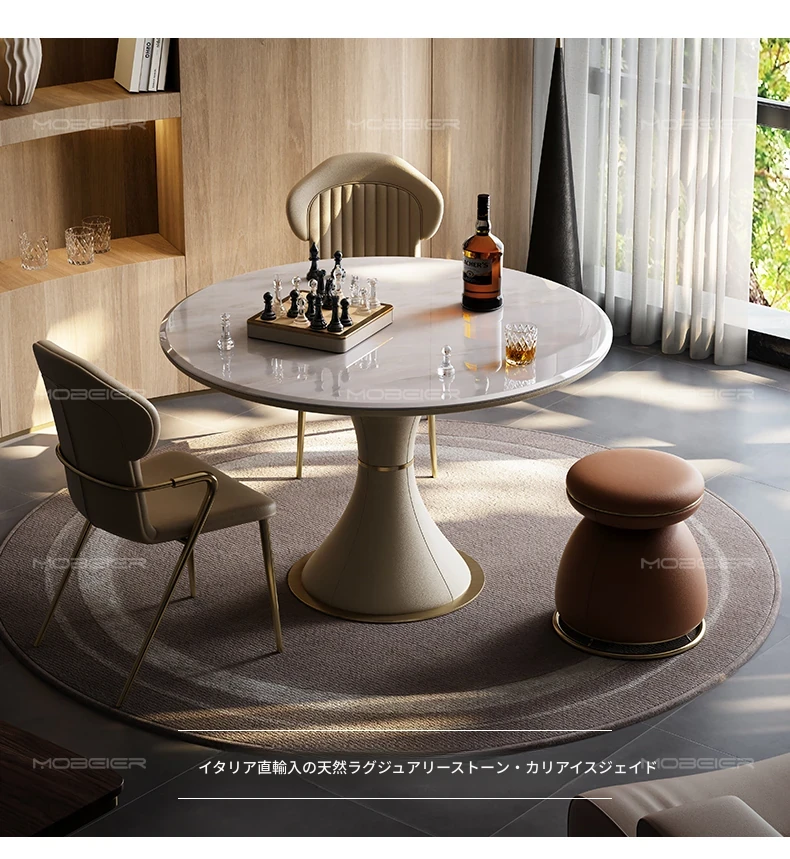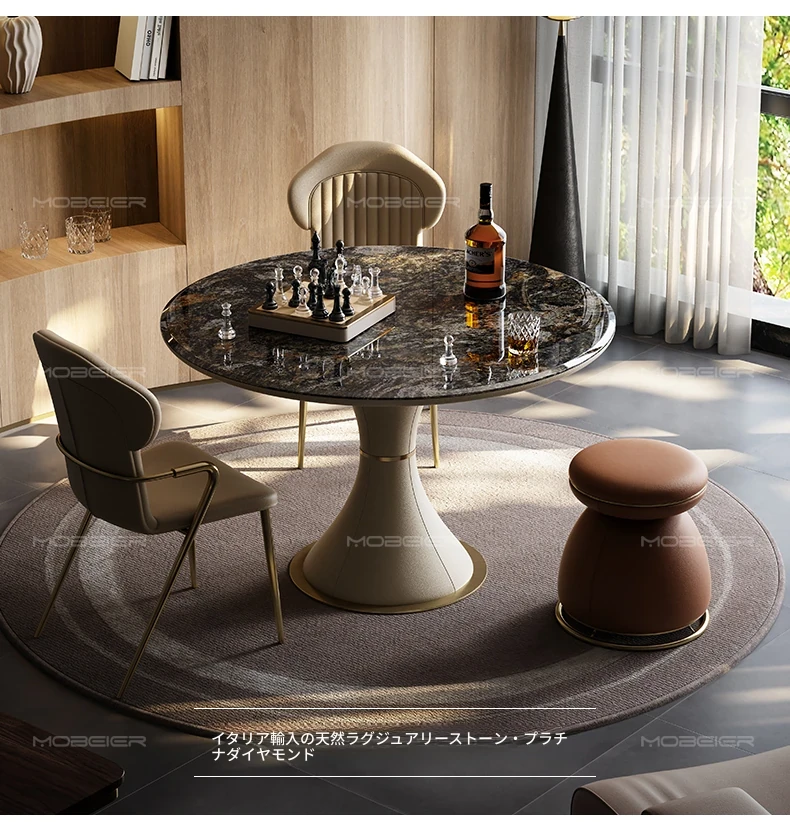 モビエール ミニマルイタリアン大理石ラウンドテーブル - 小型スペースに最適な高級感あふれるリラックス&エンターテイメント用テーブル!