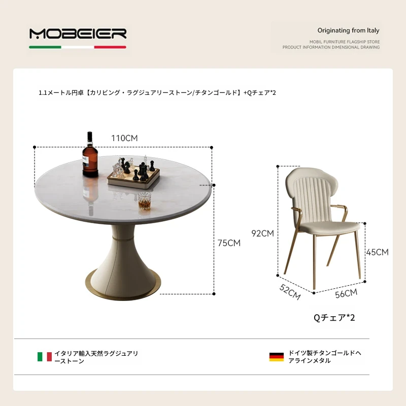 1.1メートル円卓【カリ氷玉・贅石/チタン】+Qチェア*2