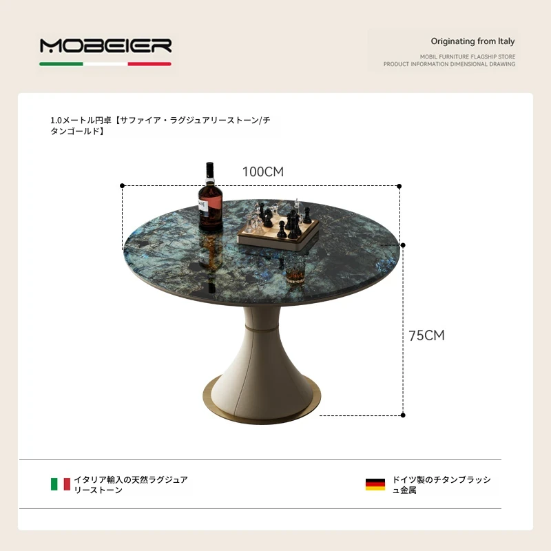 1.0メートル円卓【サファイア・贅石/チタン】