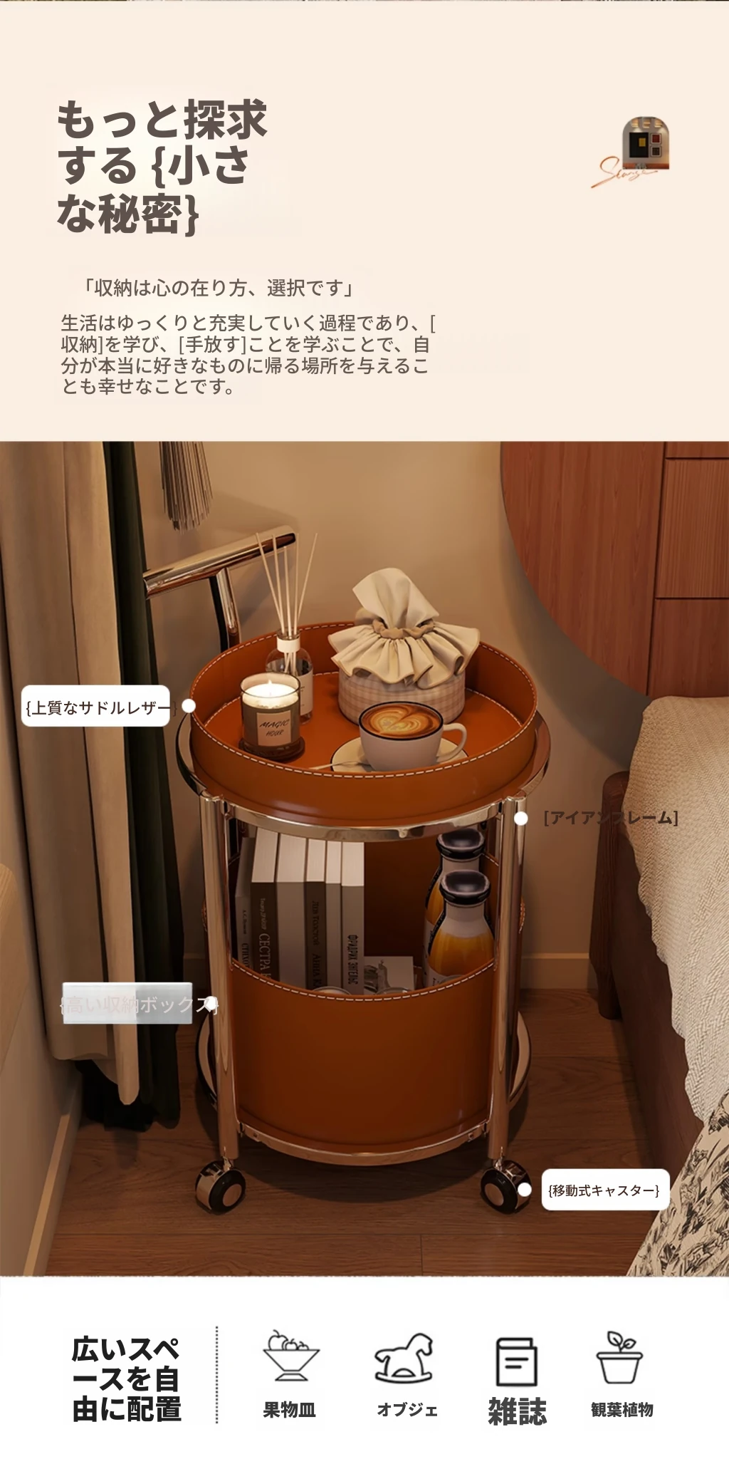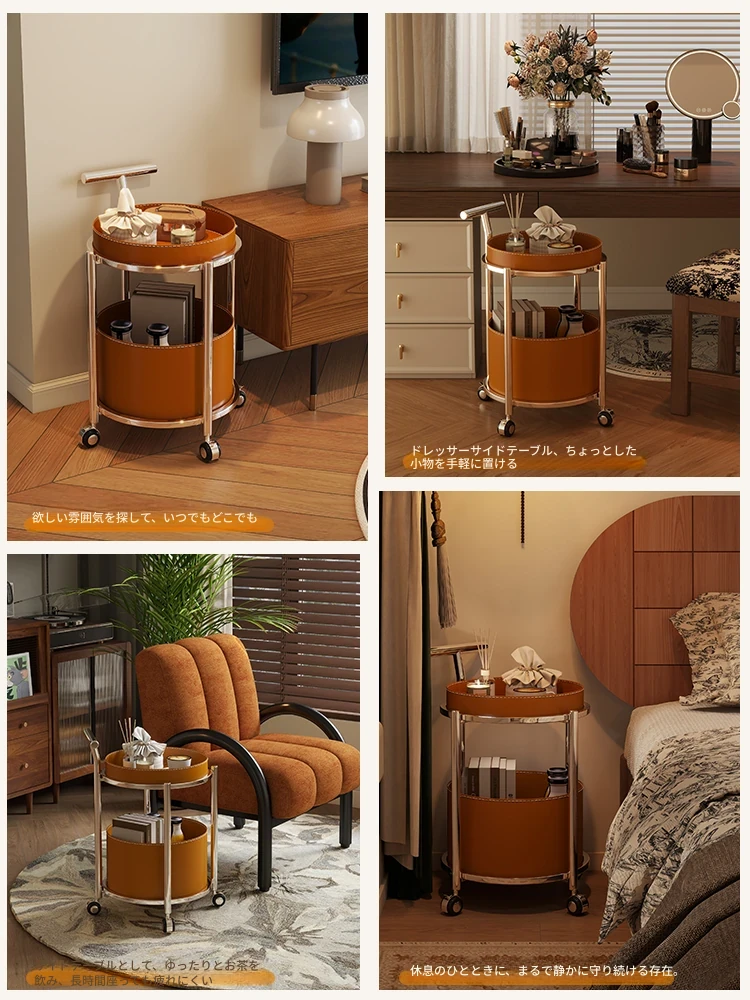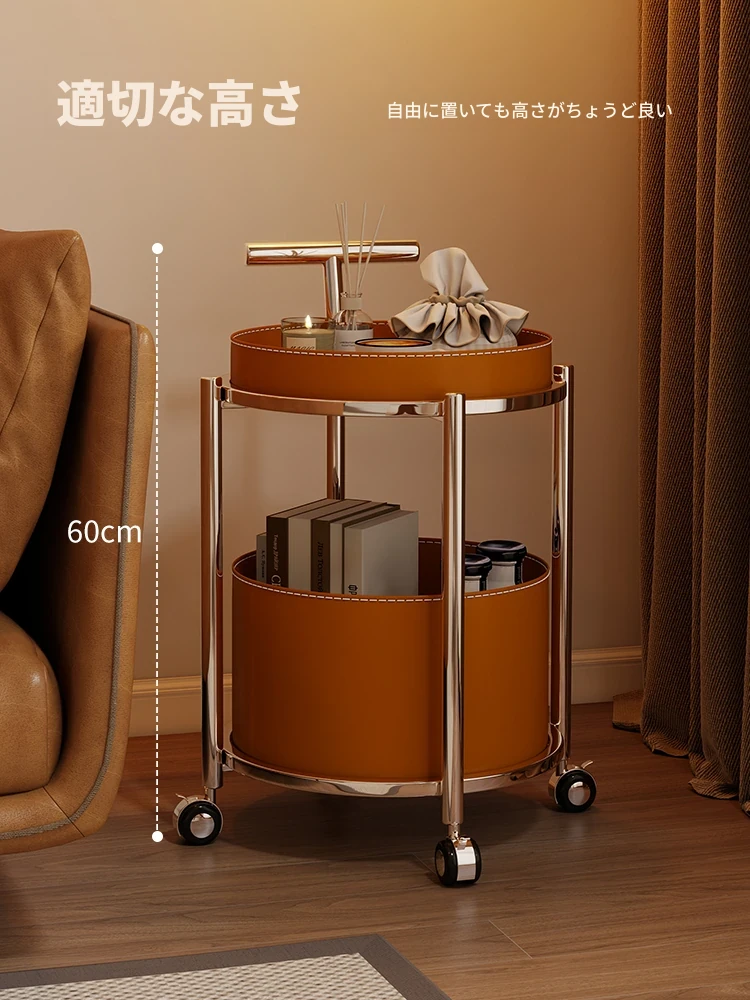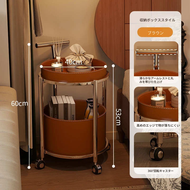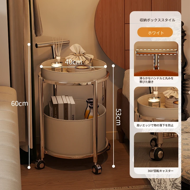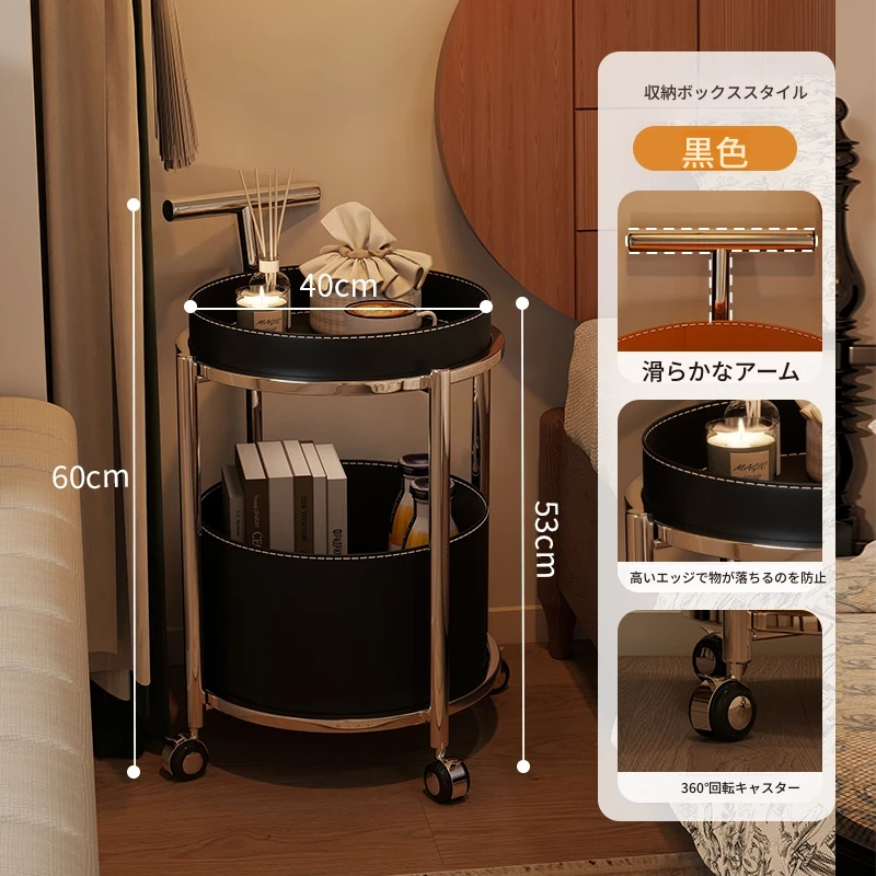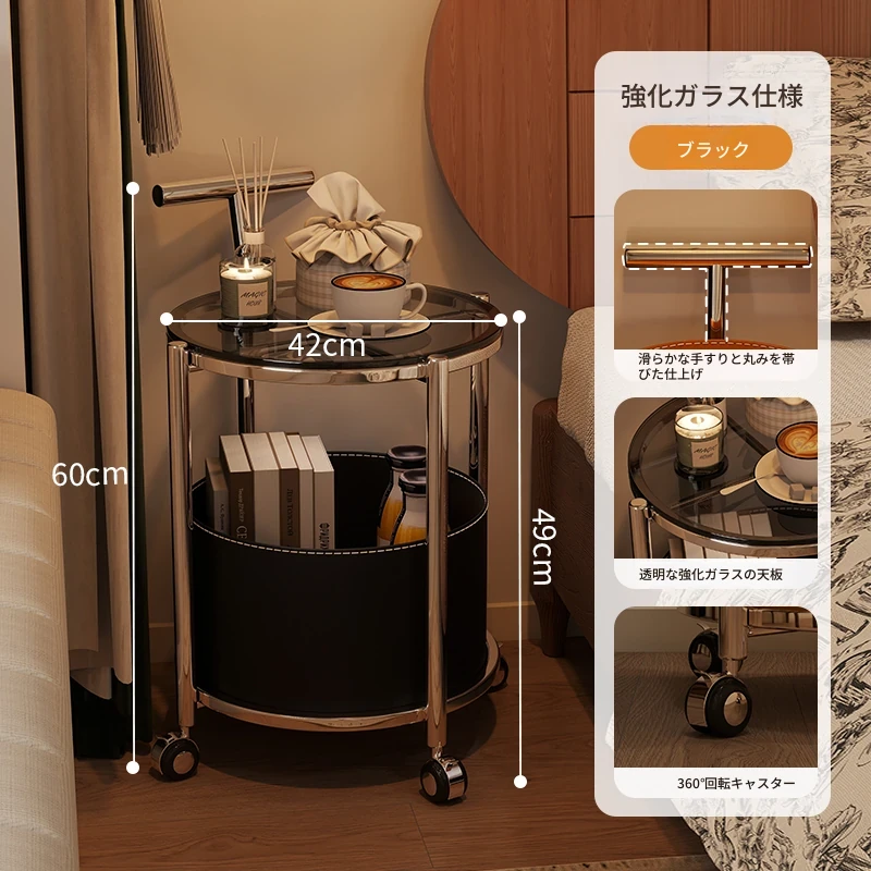移動可能なソファサイドテーブル!おしゃれなキャスター付き小型丸テーブル。ネットで人気のベッドサイド収納ラック、リビングにぴったりの家庭用アイテム!快適な生活空間を演出します。