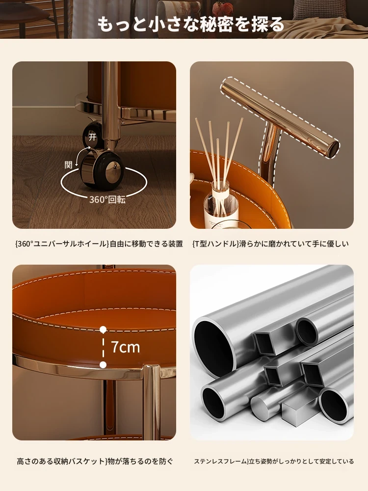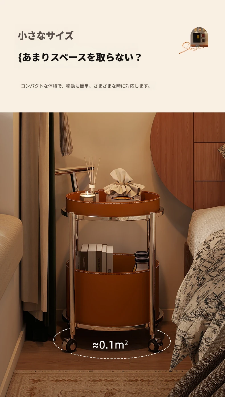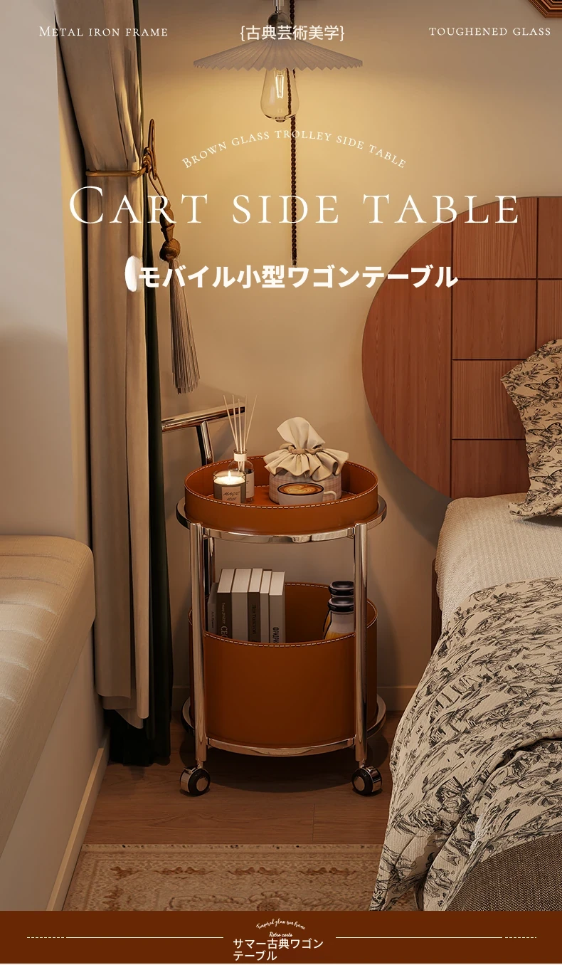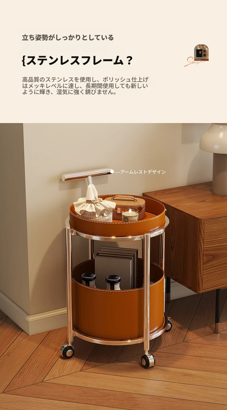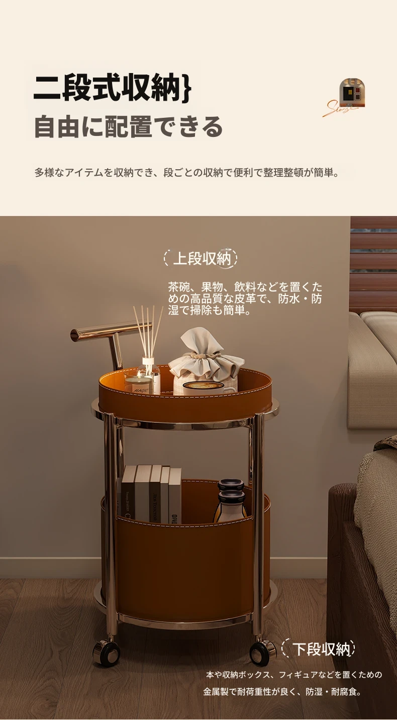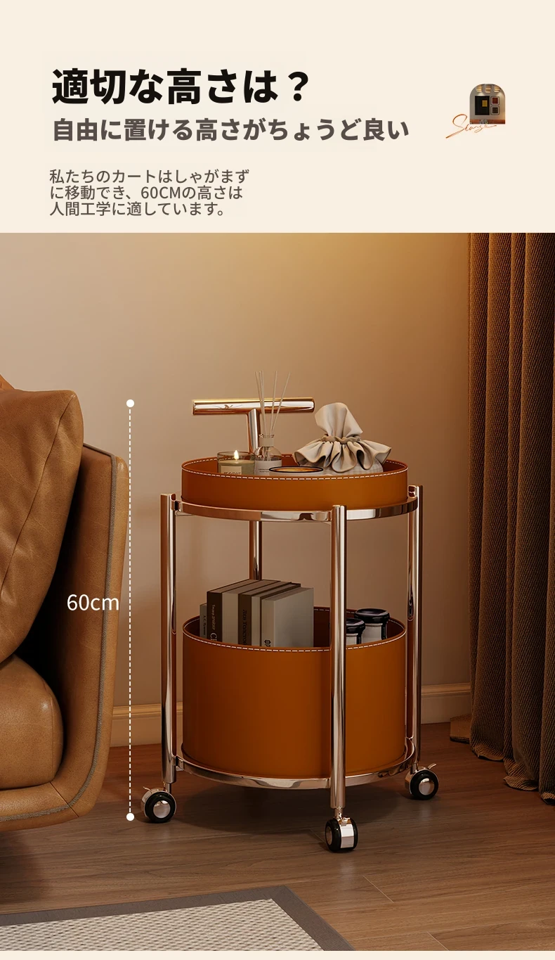 移動可能なソファサイドテーブル!おしゃれなキャスター付き小型丸テーブル。ネットで人気のベッドサイド収納ラック、リビングにぴったりの家庭用アイテム!快適な生活空間を演出します。