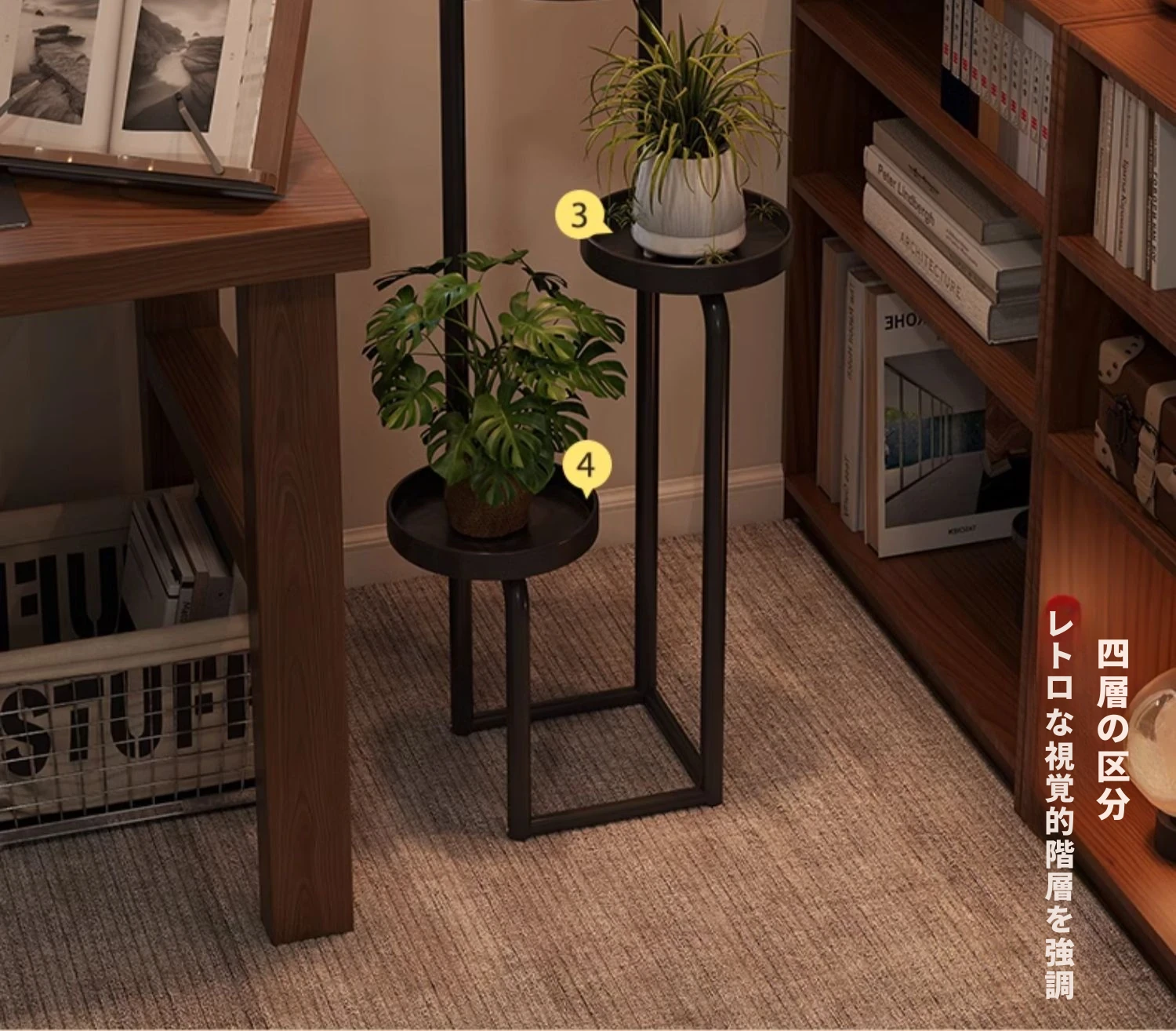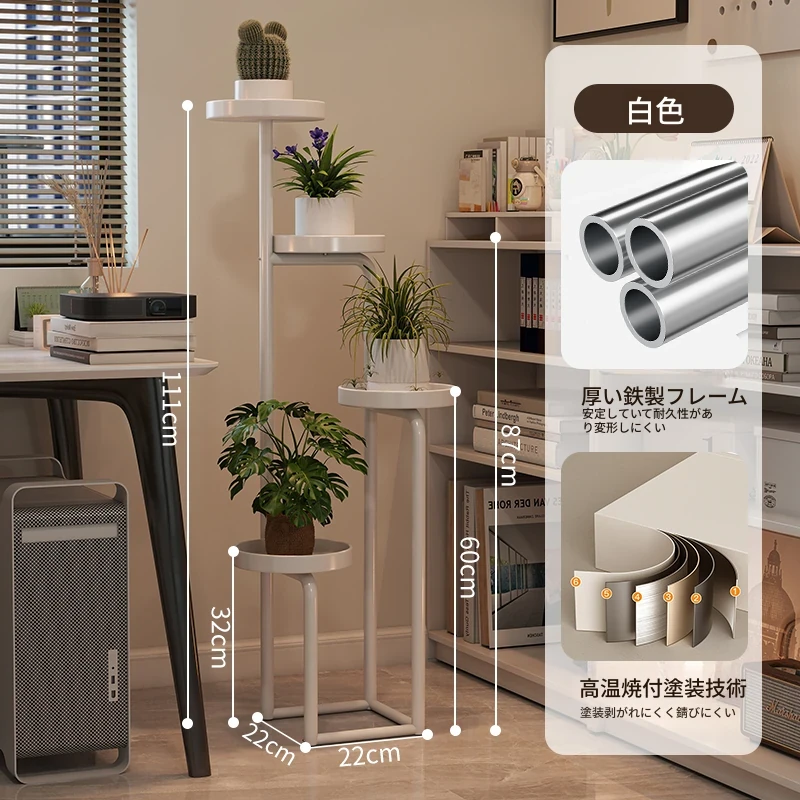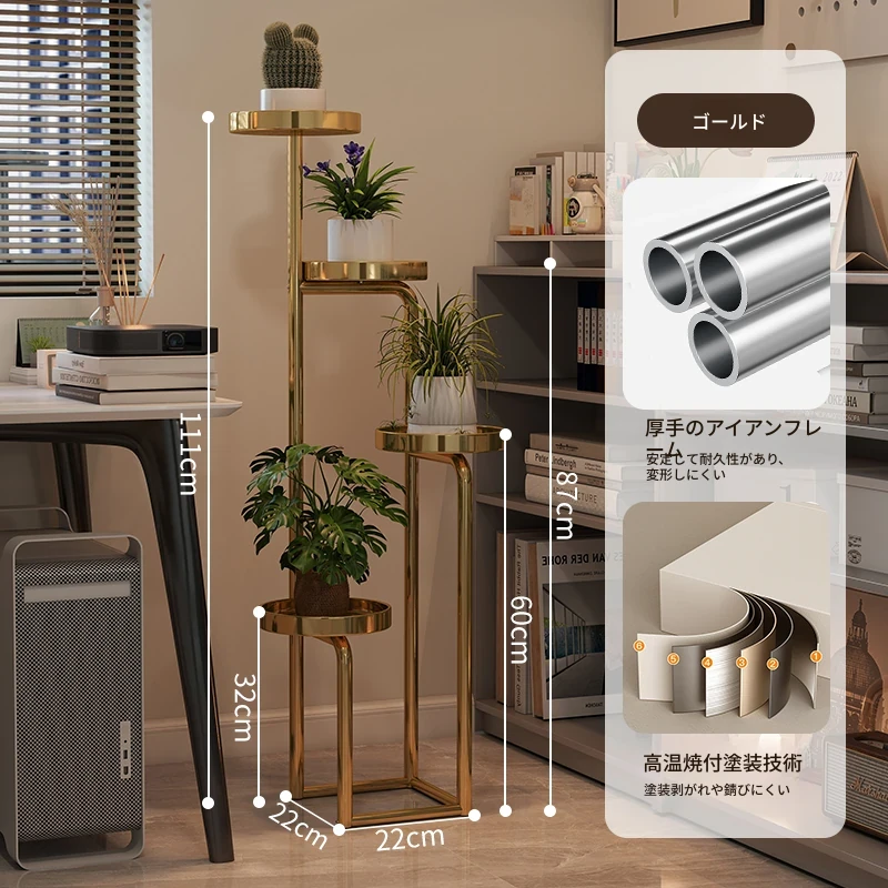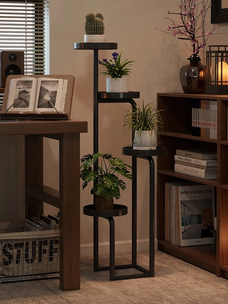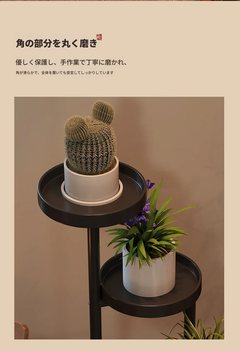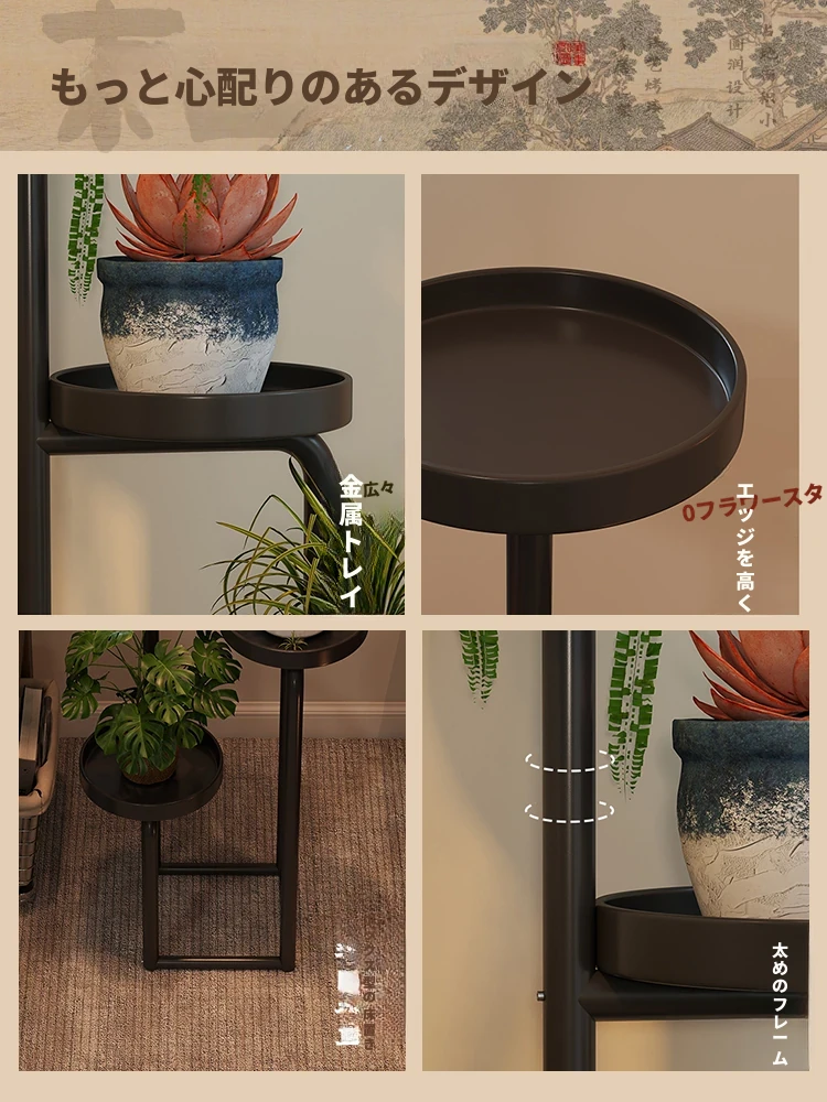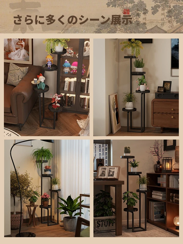 新中式アイアンフラワースタンド - 家庭用・リビング・バルコニー・寝室・テレビ横にぴったり!多層収納可能な多肉植物用花台。おしゃれなデザインでお部屋を華やかに演出します!