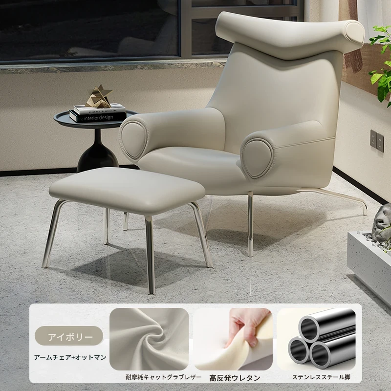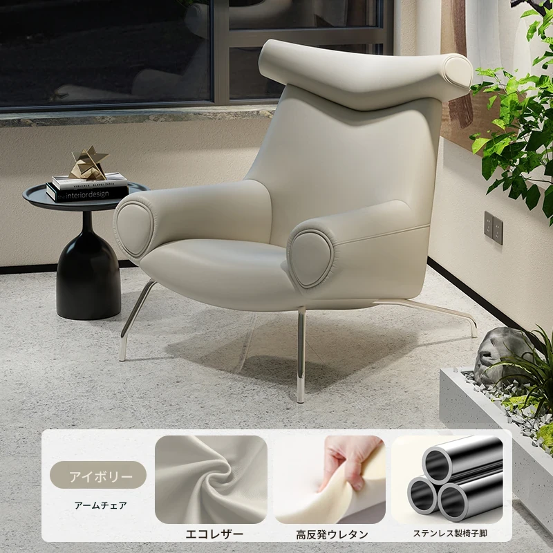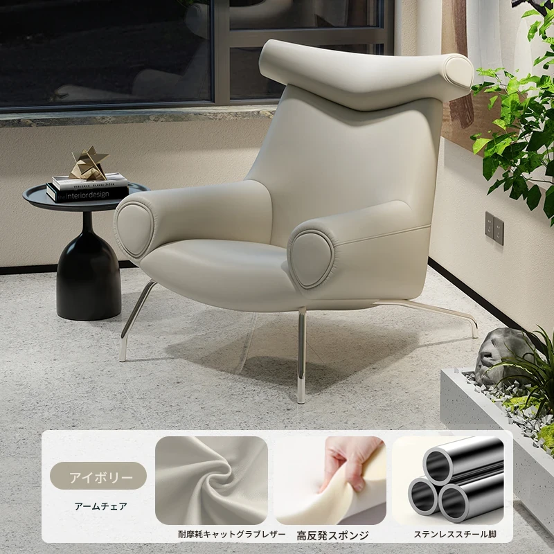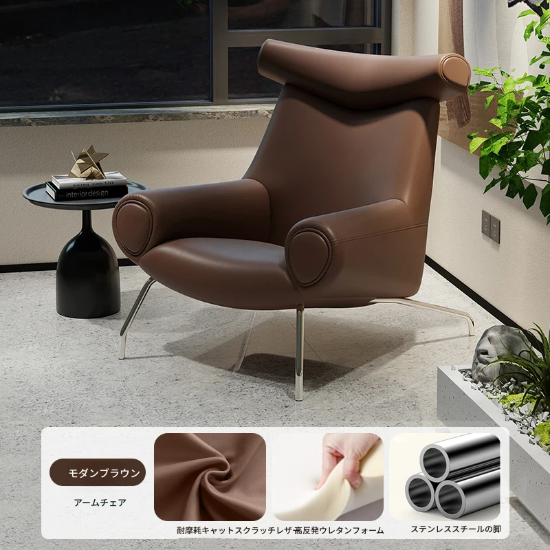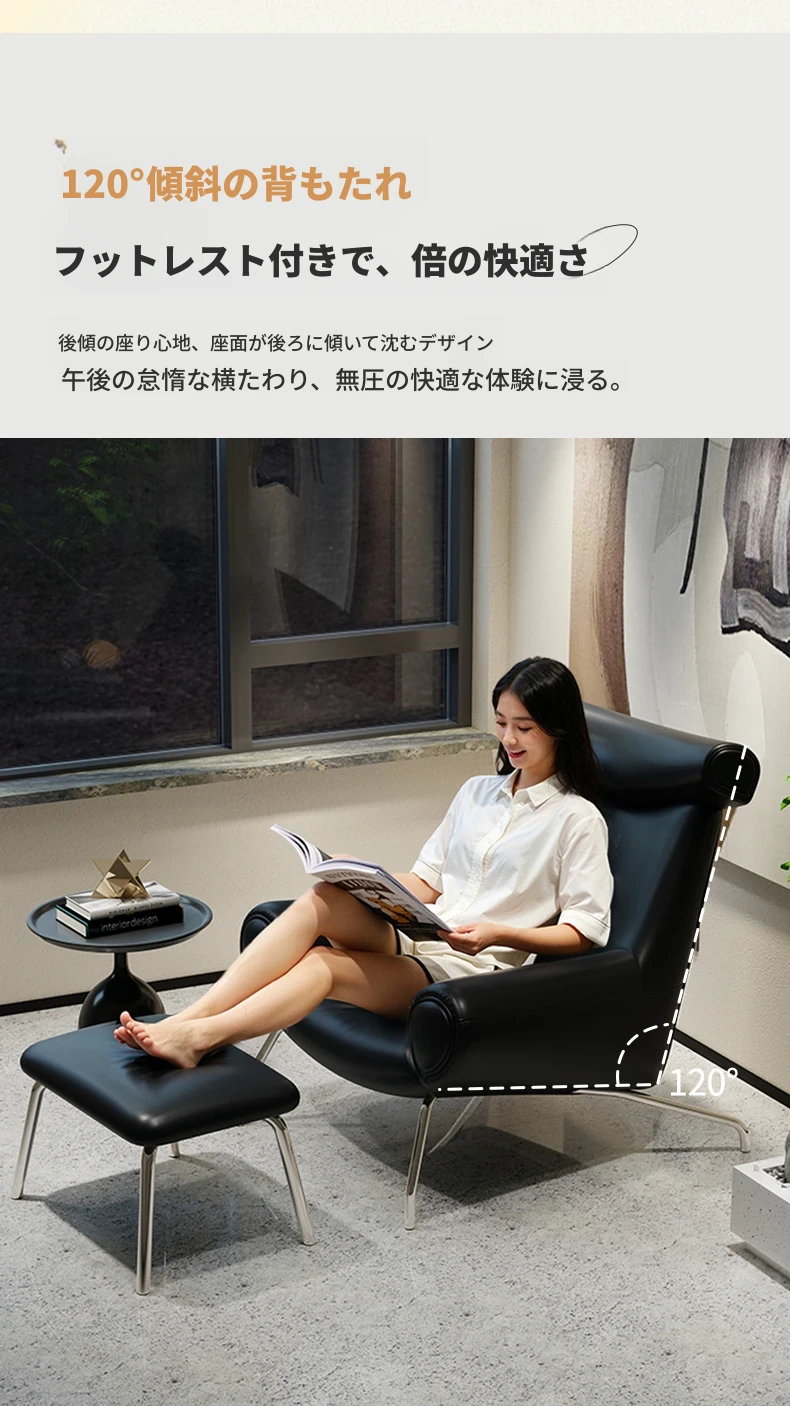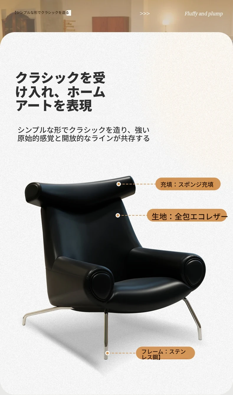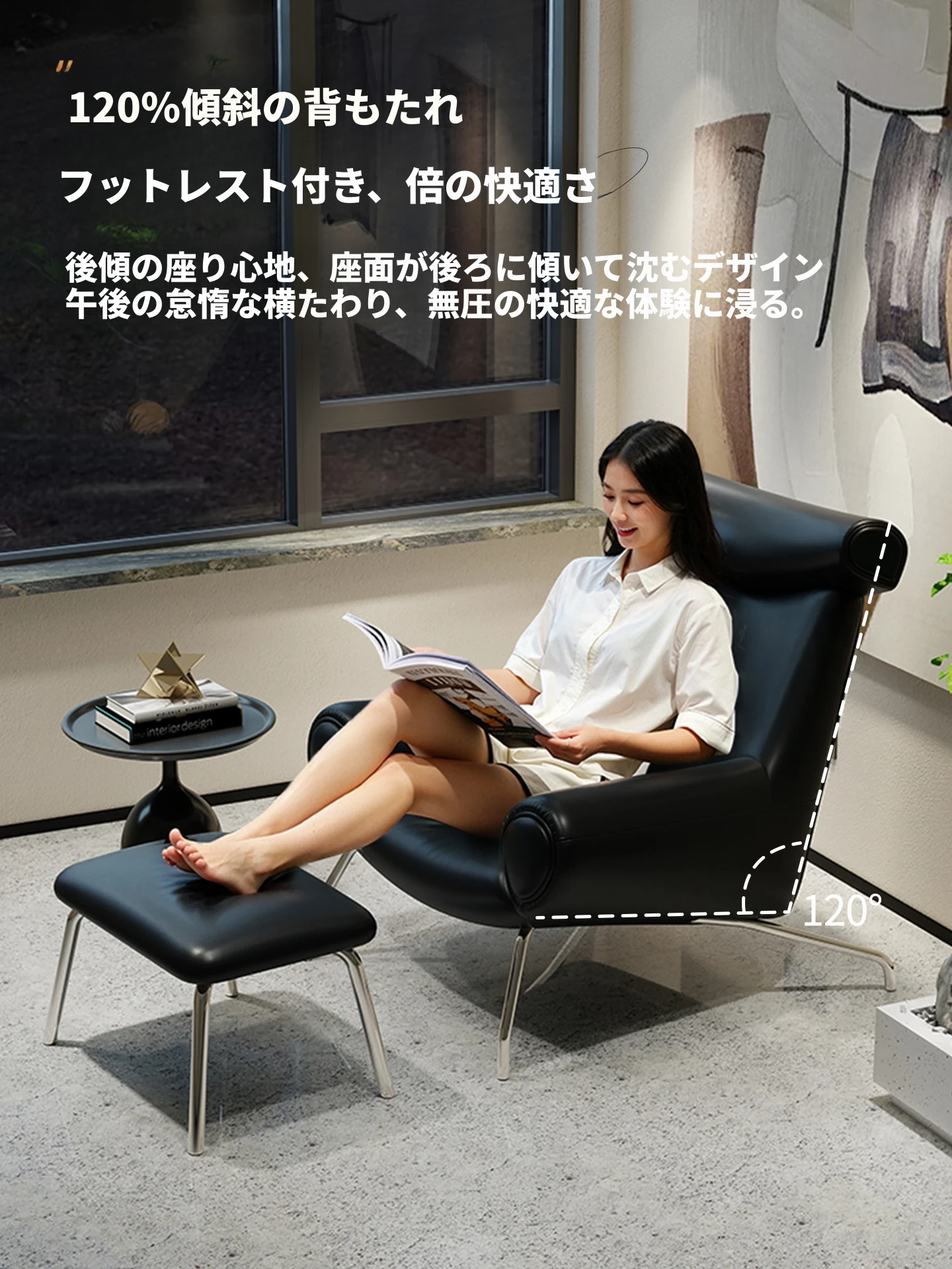 現代的ミニマリストデザイン!ブラックレザーの一人掛けソファチェア。イタリアンスタイルのシンプルなホテル用リビングルームのリラックスチェア。牛革使用で高級感溢れる一品!