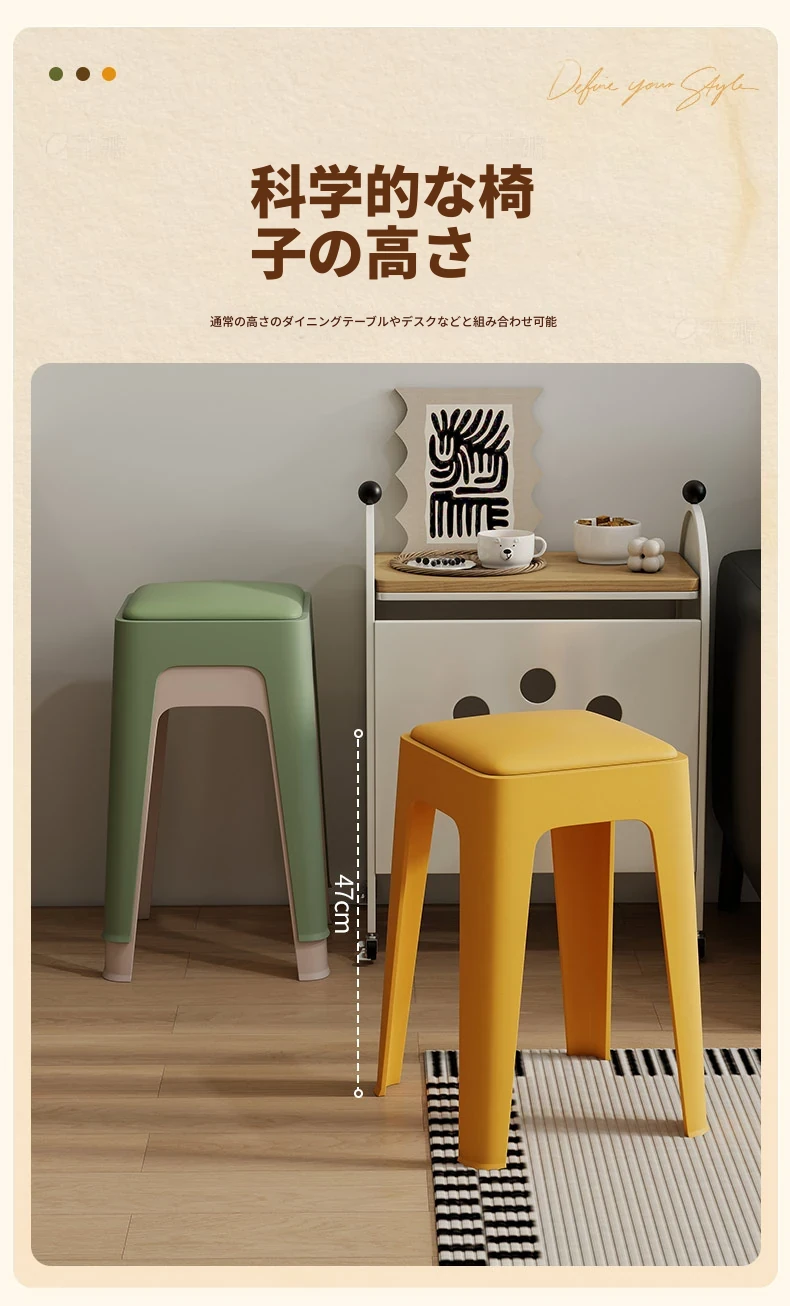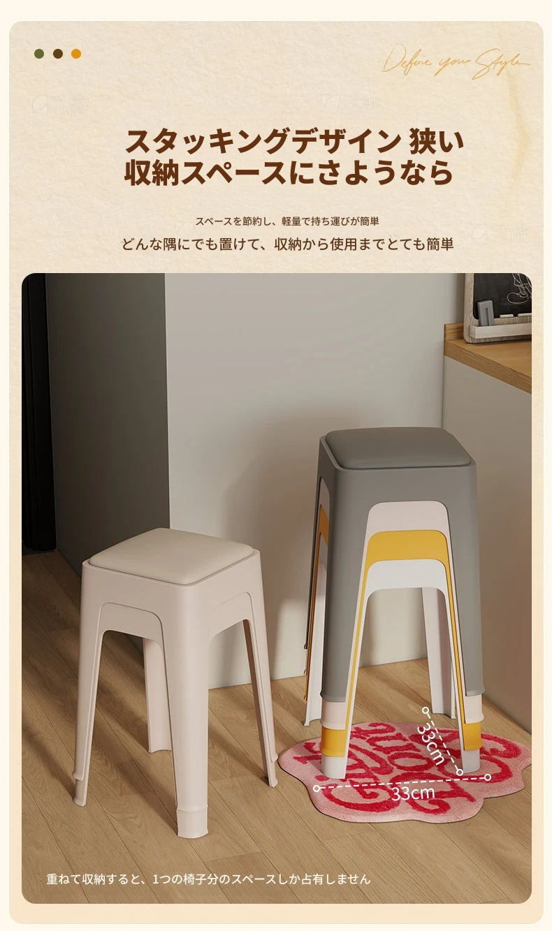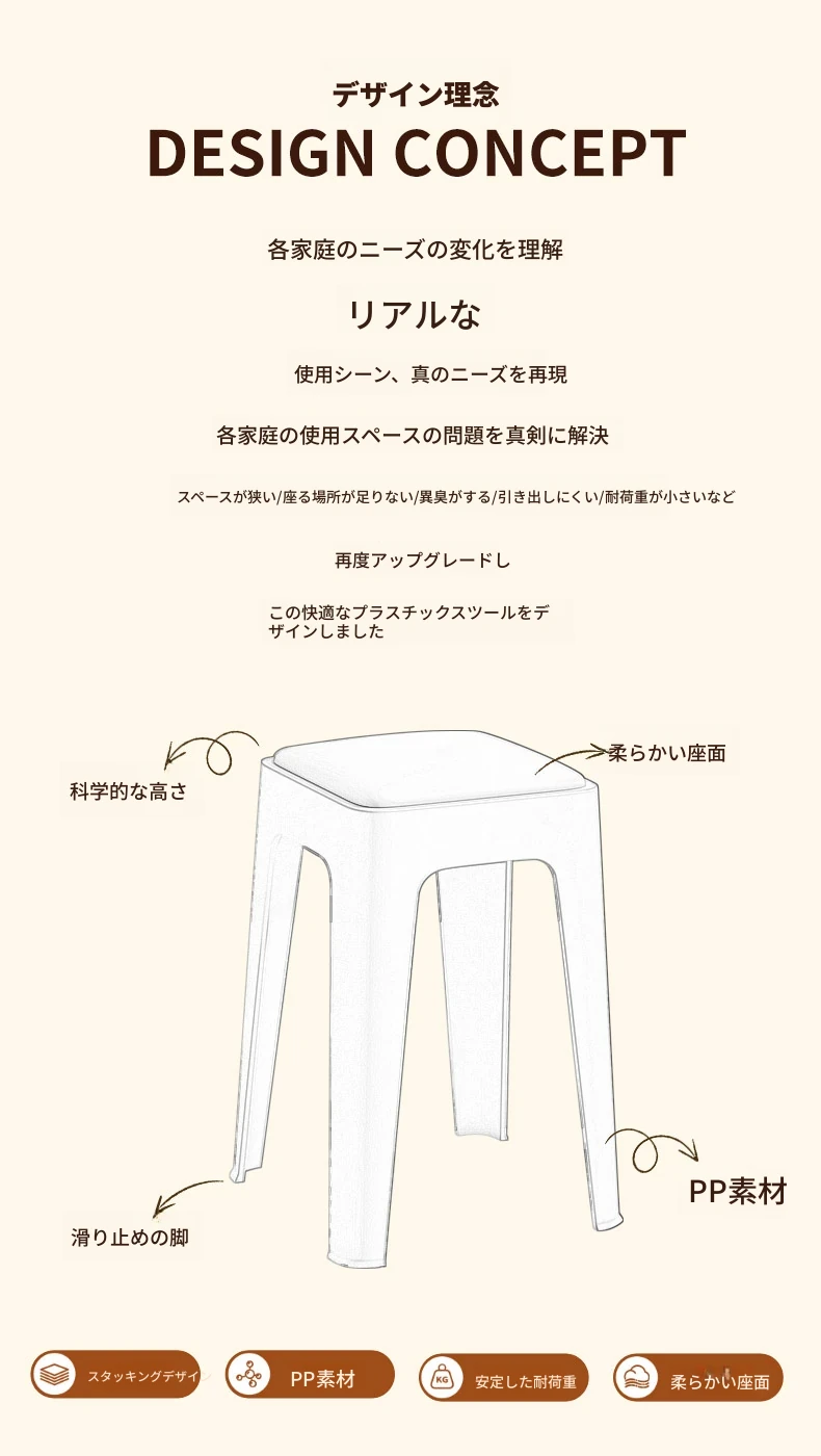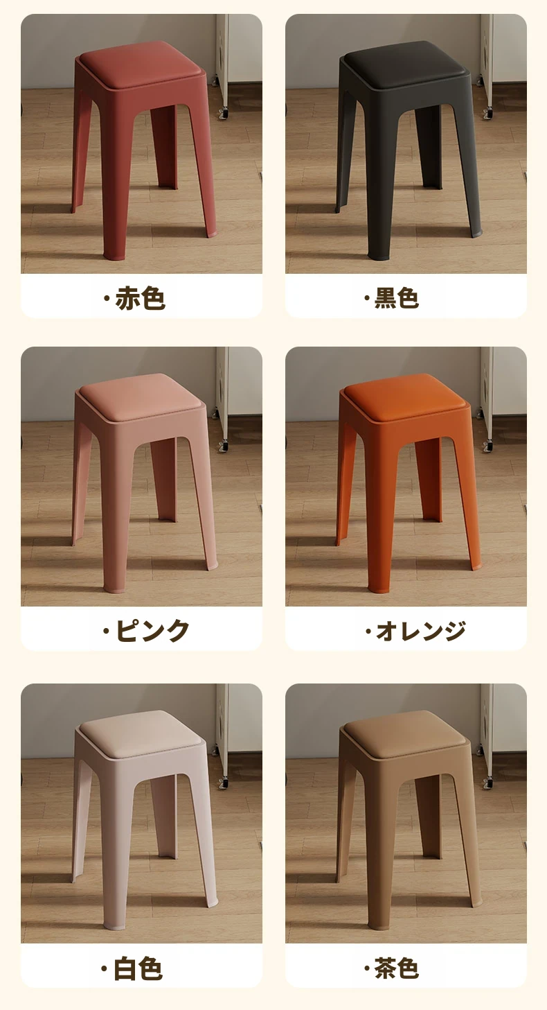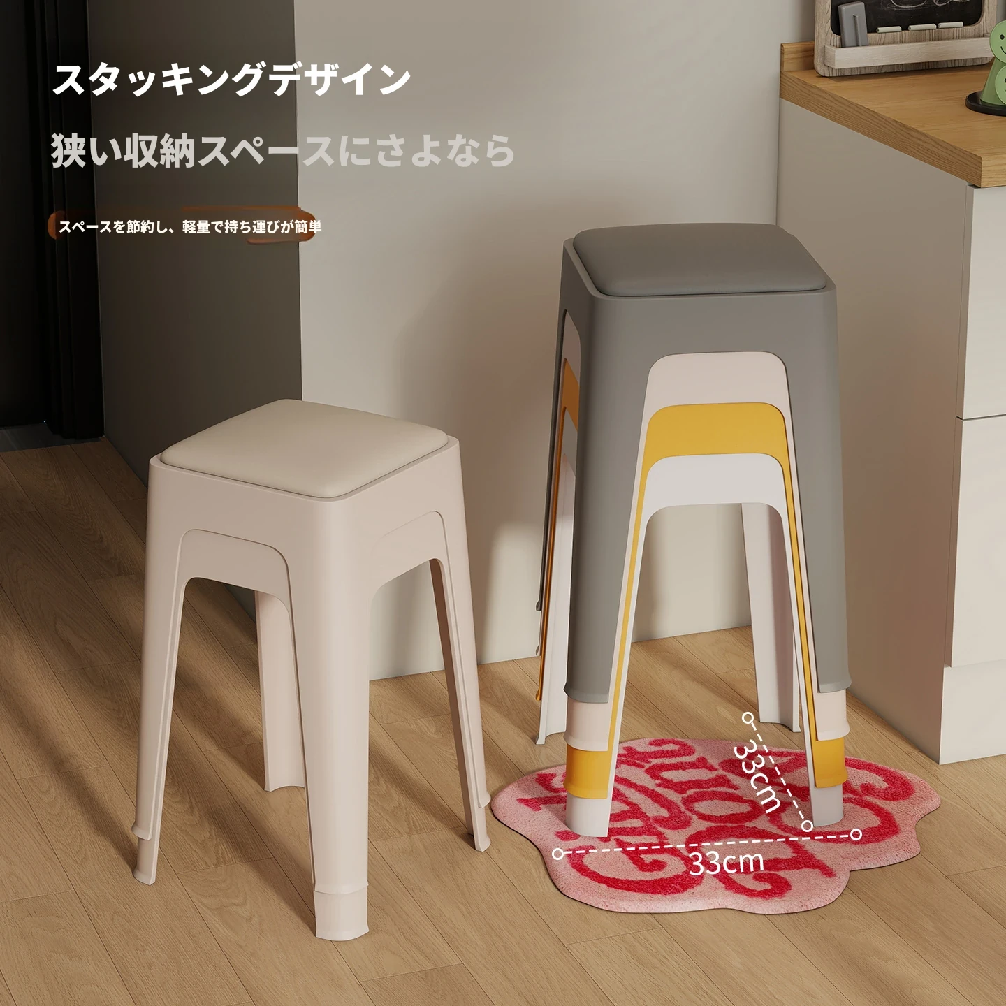 クリームカラーの化粧台チェア - モダンでシンプルなデザイン、厚手のプラスチック製、女性の寝室にぴったり!スタッキング可能で省スペース、使い勝手抜群のアイテムです。