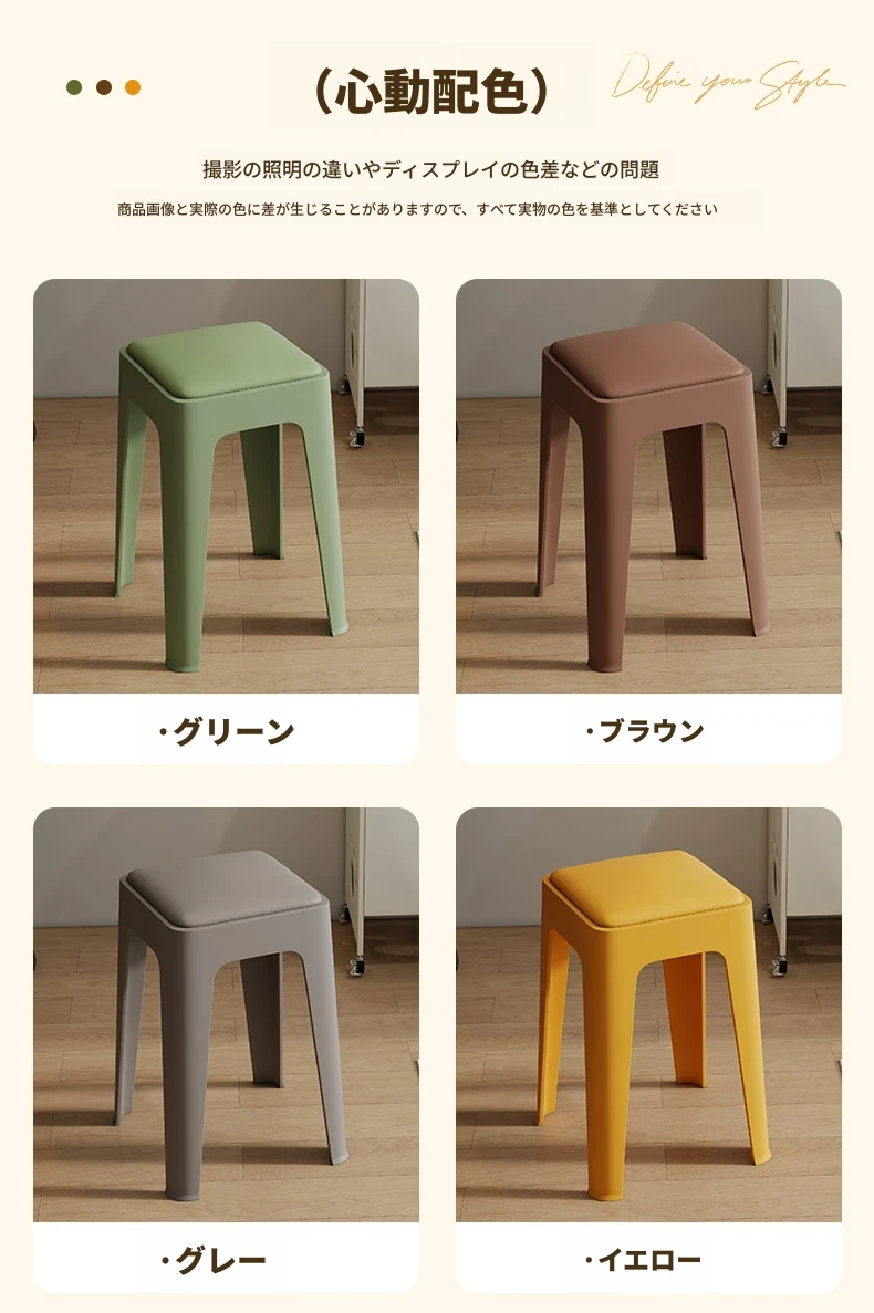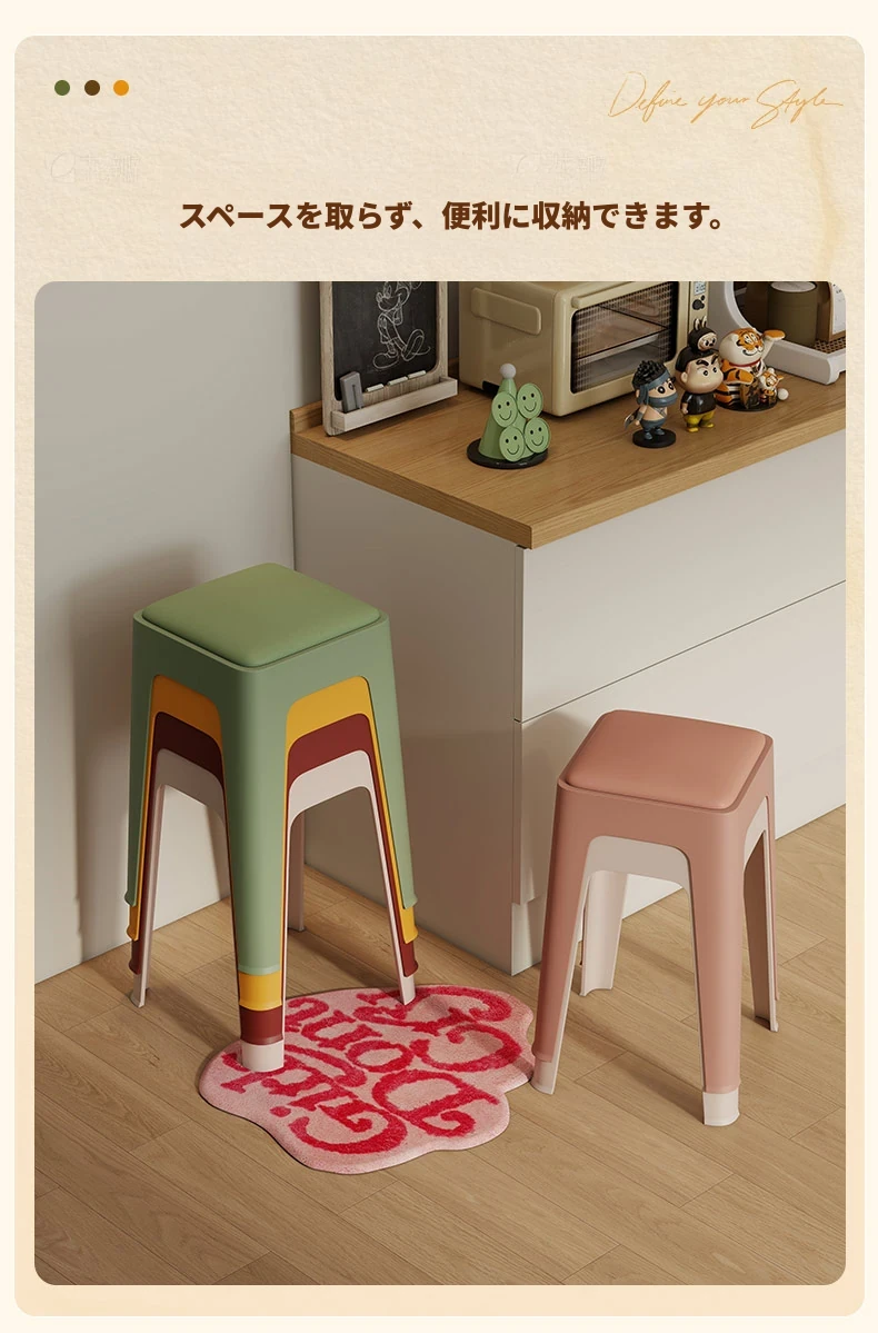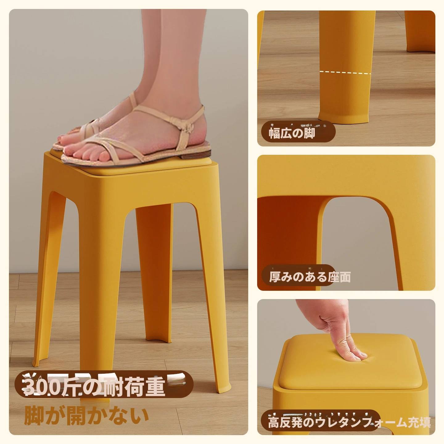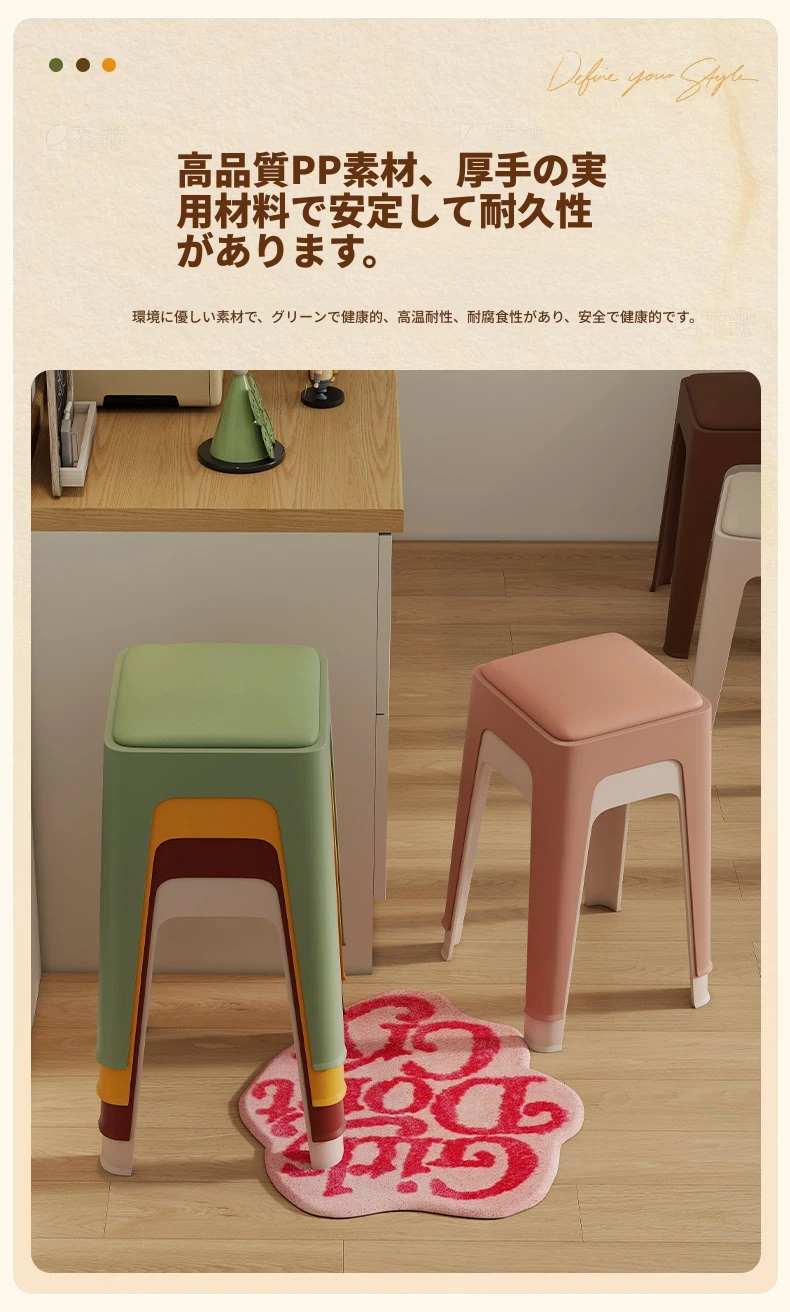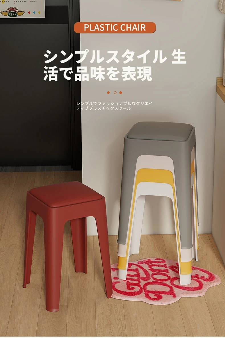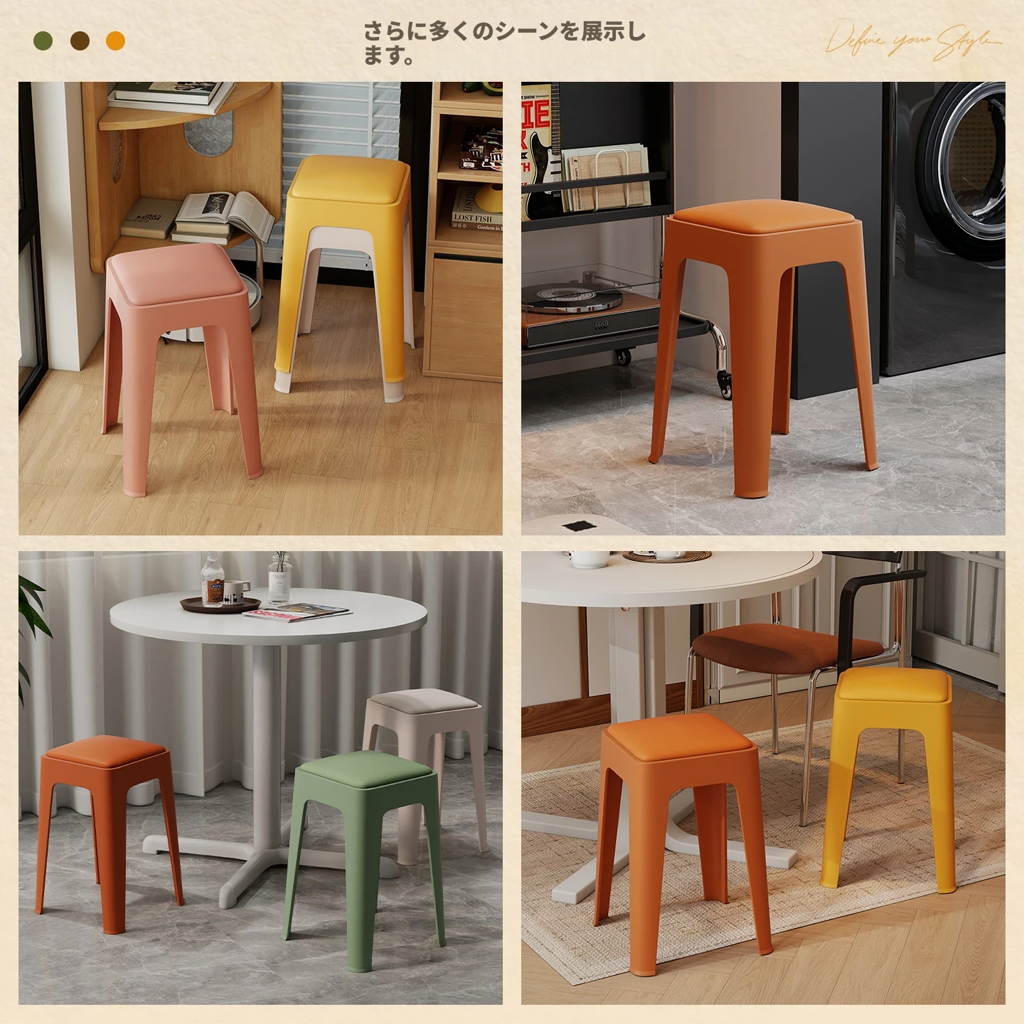 クリームカラーの化粧台チェア - モダンでシンプルなデザイン、厚手のプラスチック製、女性の寝室にぴったり!スタッキング可能で省スペース、使い勝手抜群のアイテムです。