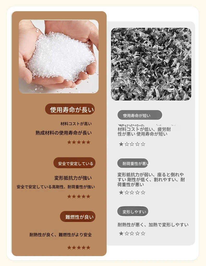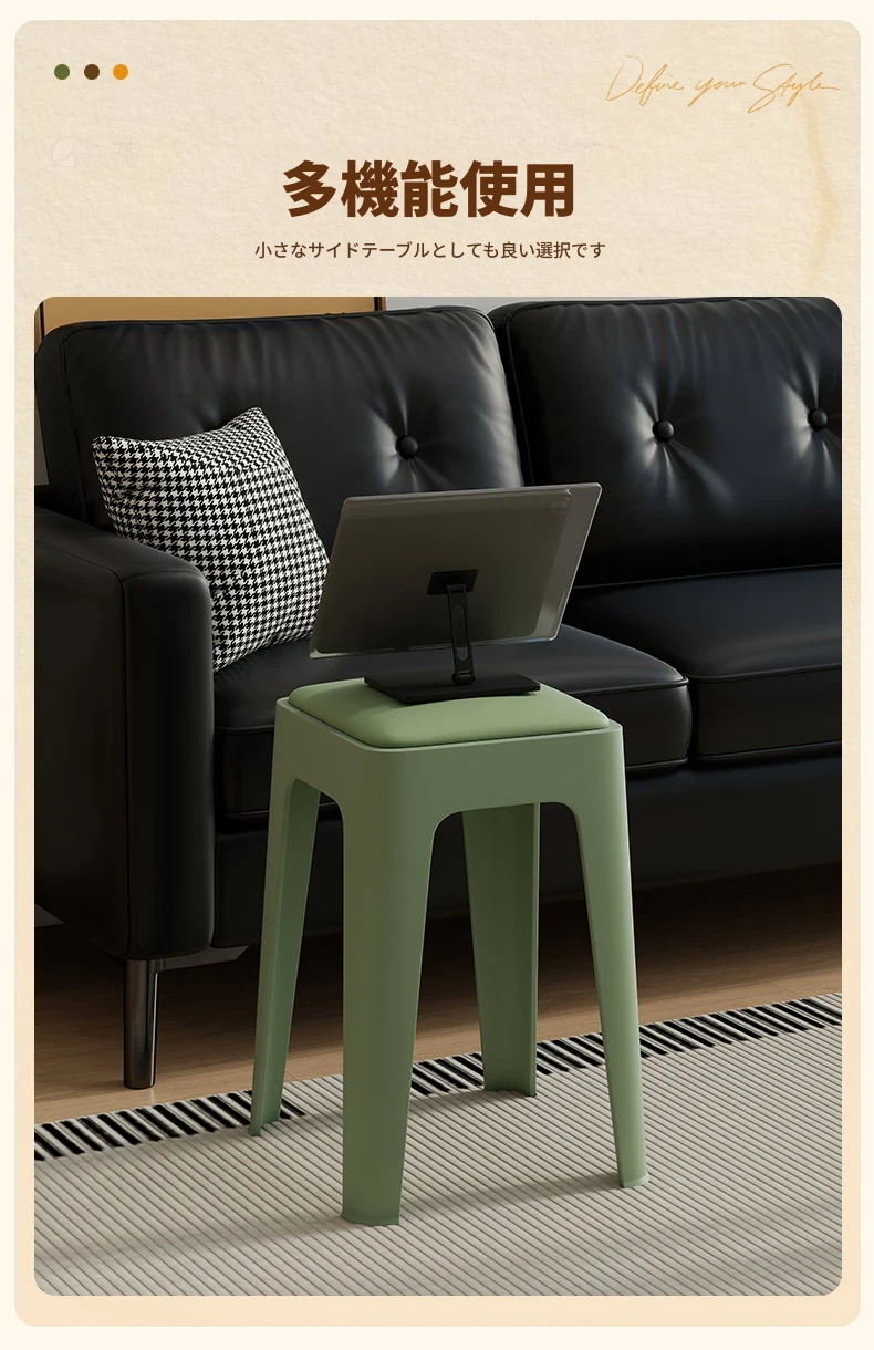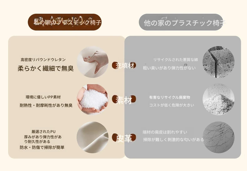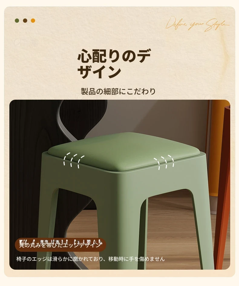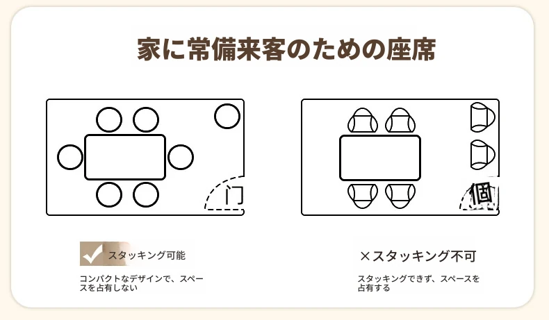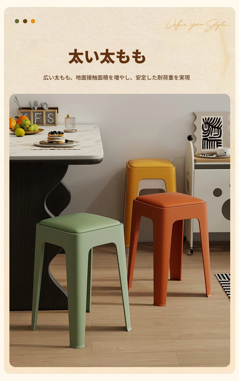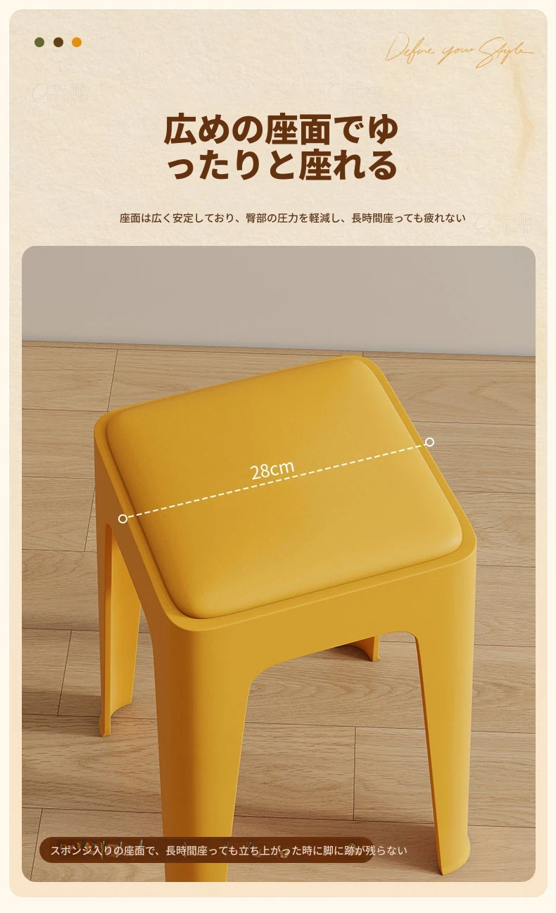 クリームカラーの化粧台チェア - モダンでシンプルなデザイン、厚手のプラスチック製、女性の寝室にぴったり!スタッキング可能で省スペース、使い勝手抜群のアイテムです。
