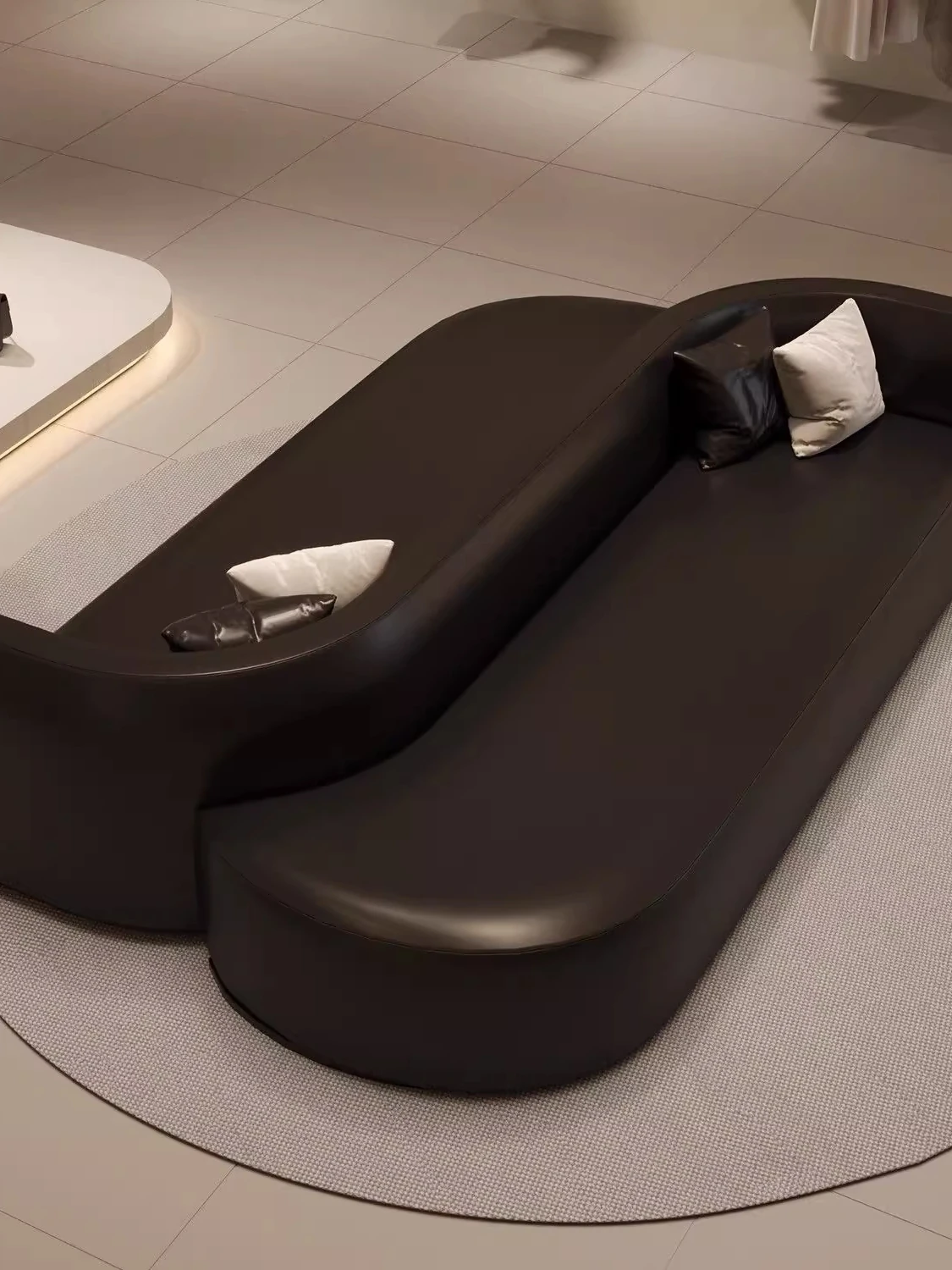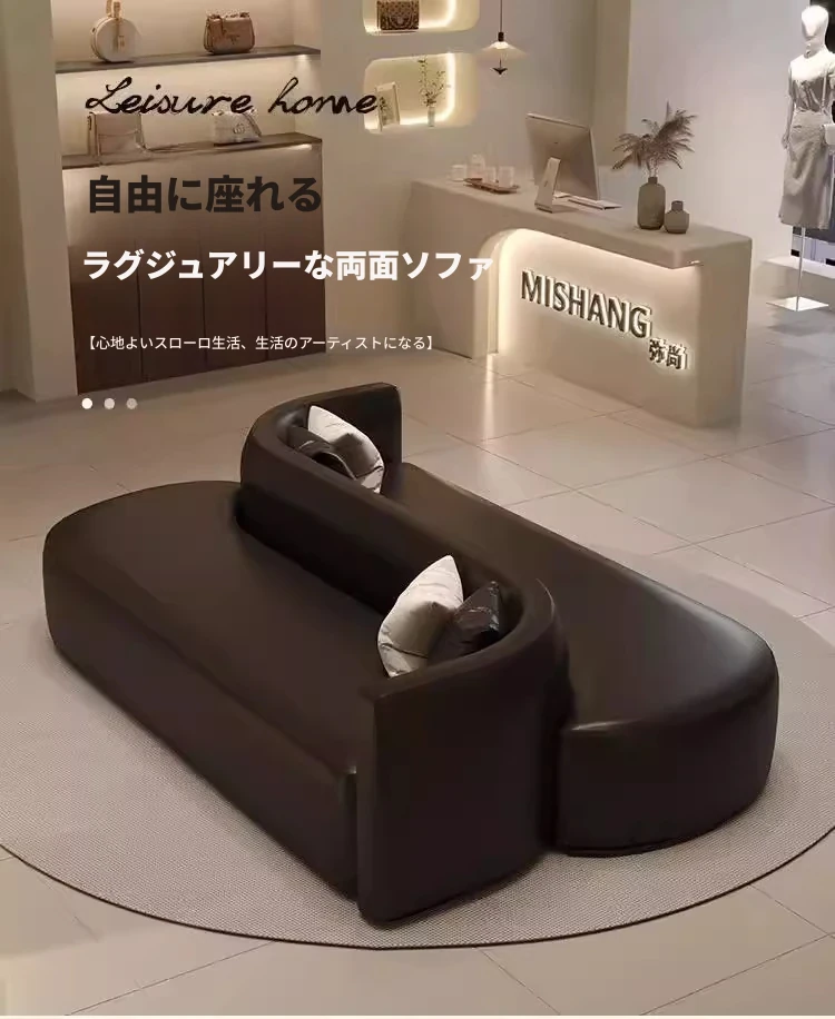 シンプルでモダンなデザインの両面アーチソファ|美容院やアパレル店の待機スペースに最適!おしゃれな背もたれ付きで、居心地の良い休憩エリアを演出します。