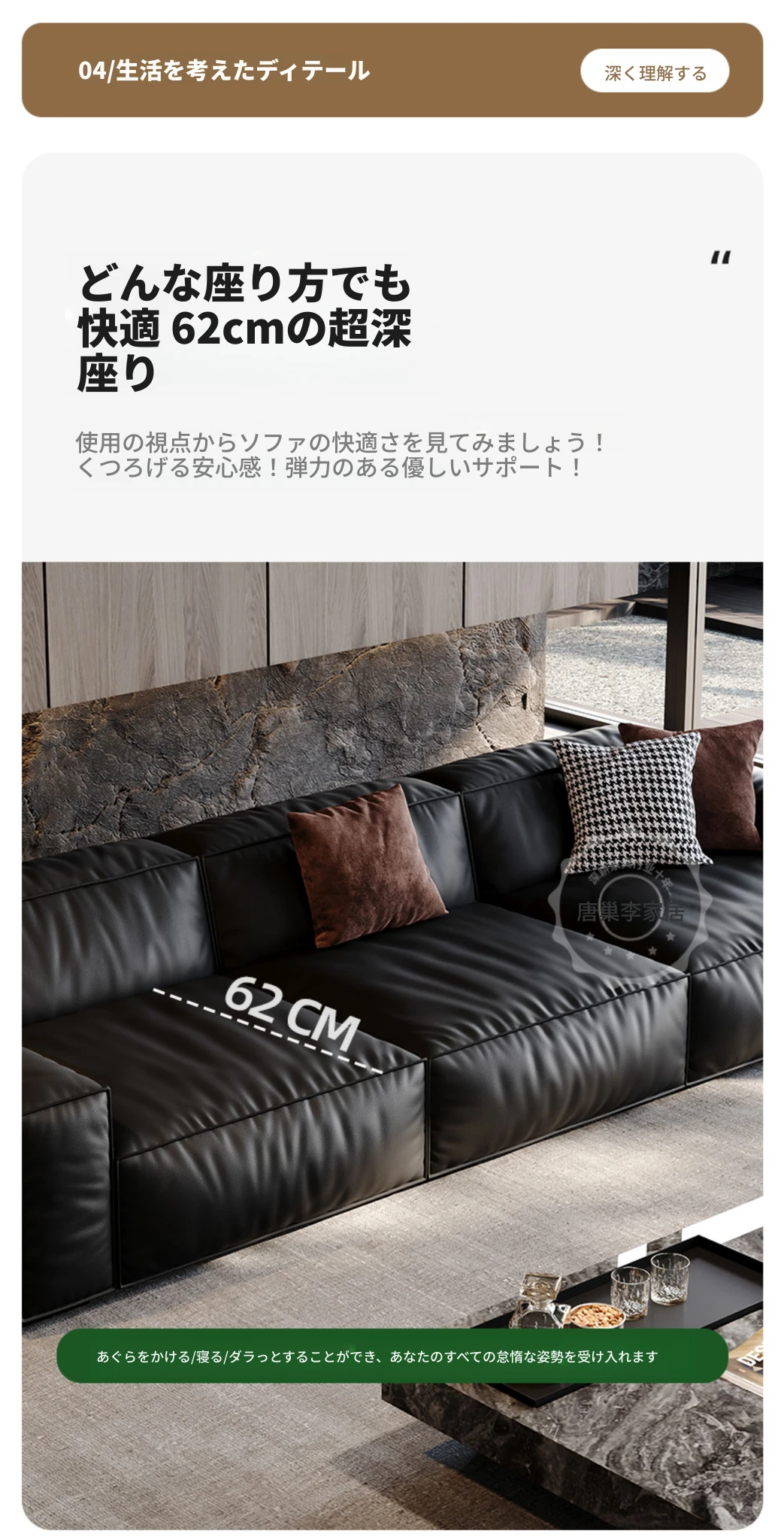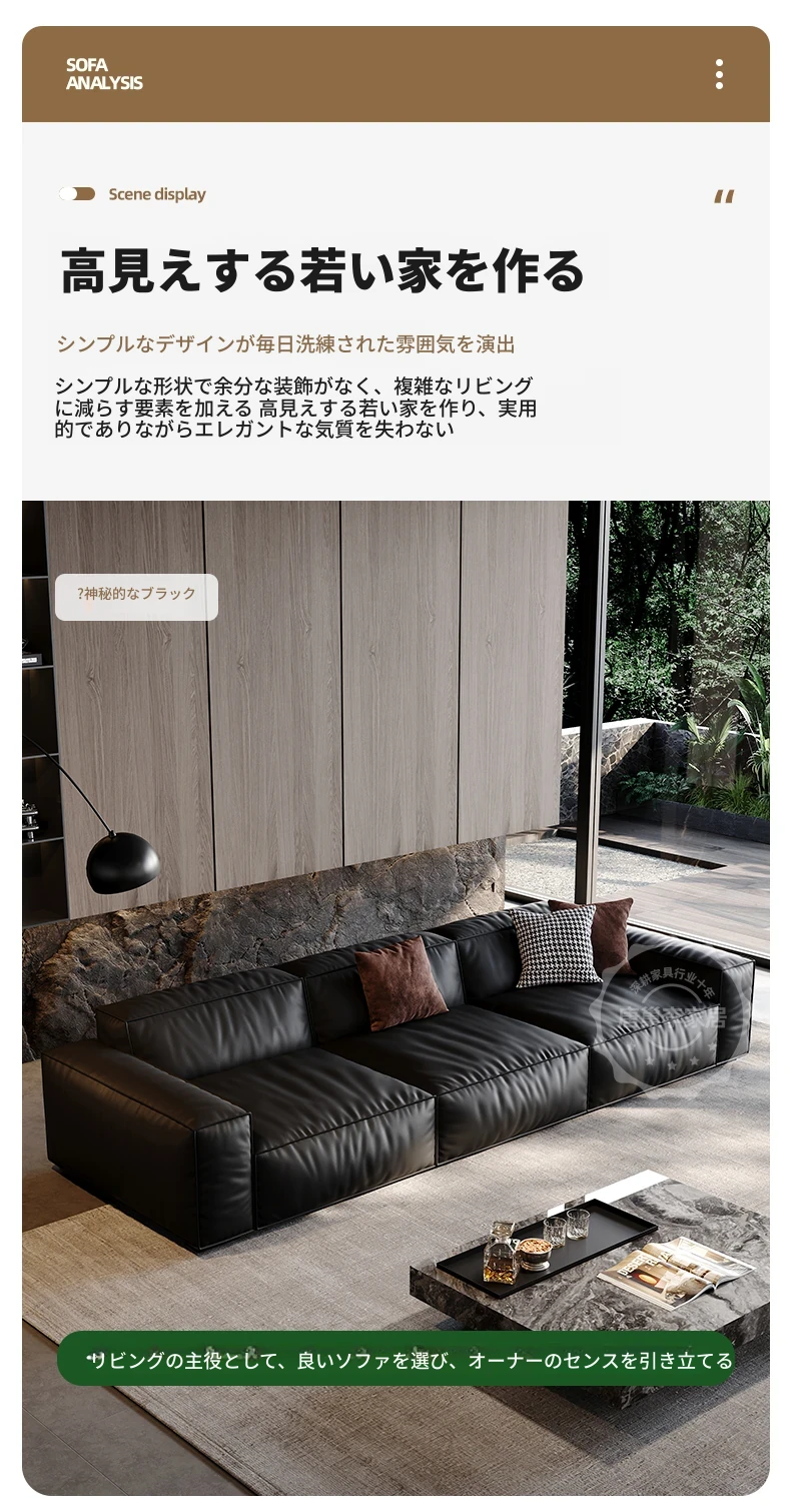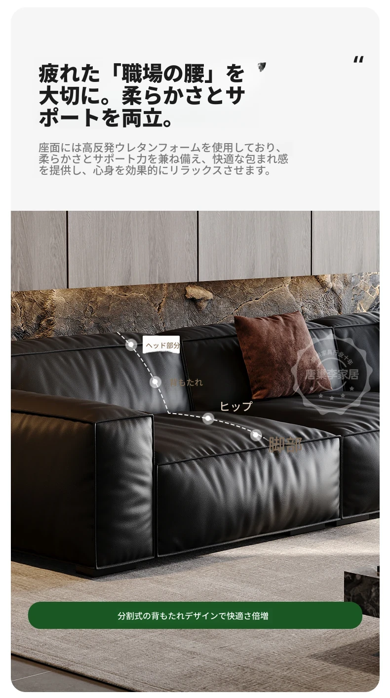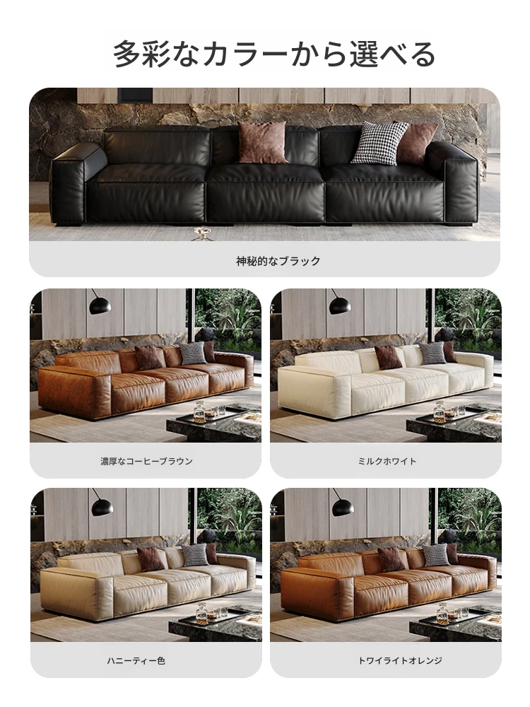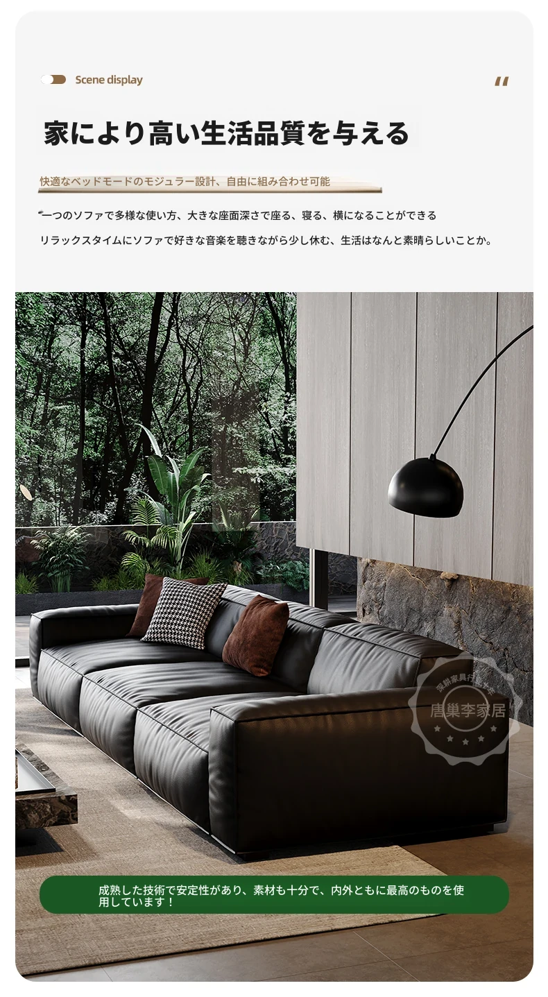 豆腐ブロック本革ソファ|モダンミニマリストデザイン|イタリアンラグジュアリー|リビングや小型住宅に最適なコンビネーション|上質なトップグレイン牛革使用で贅沢な座り心地を実現