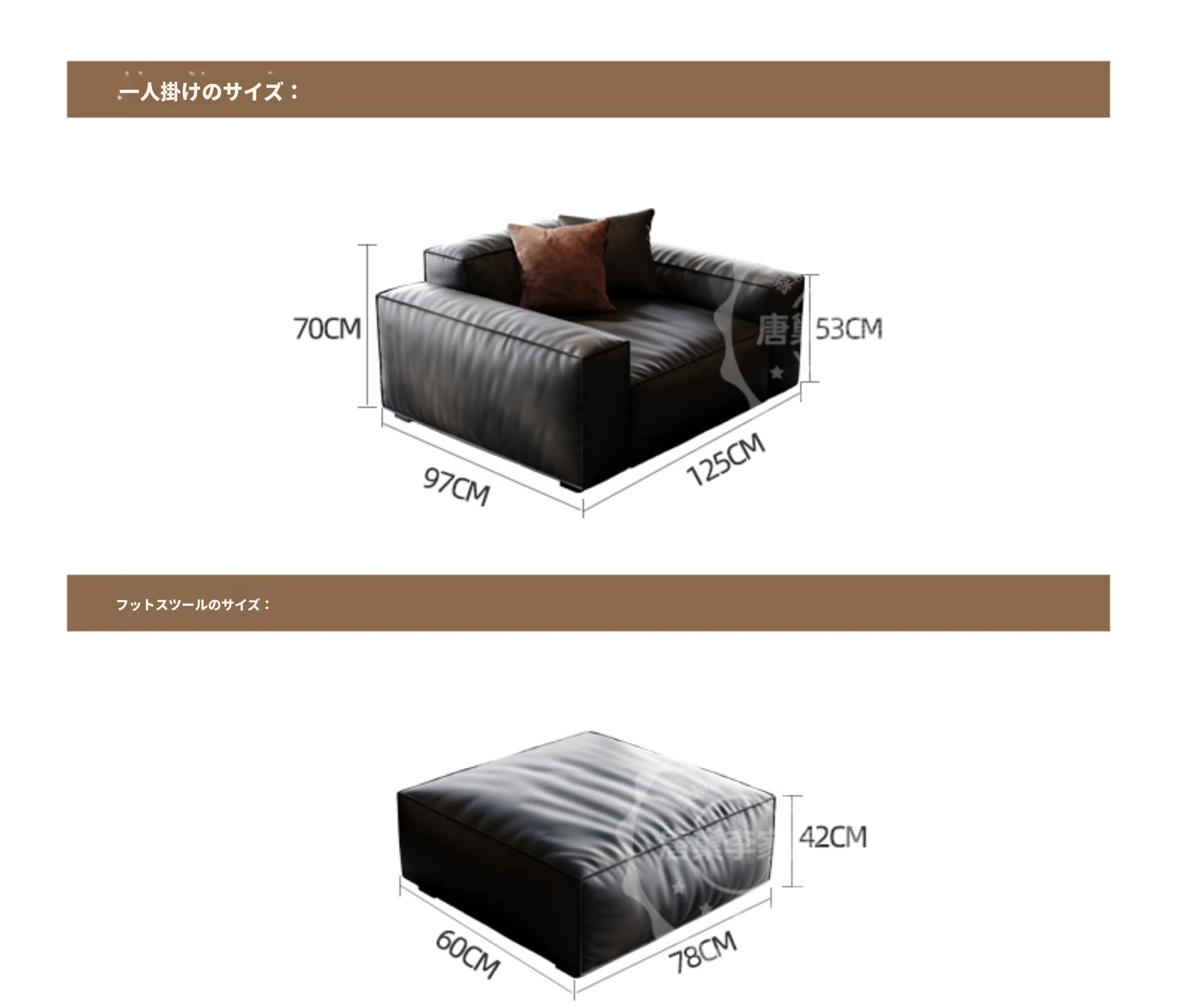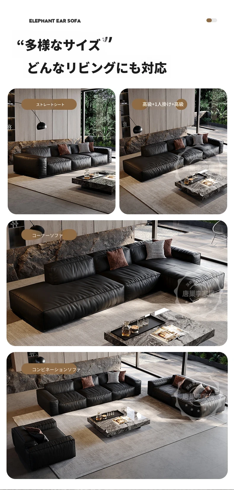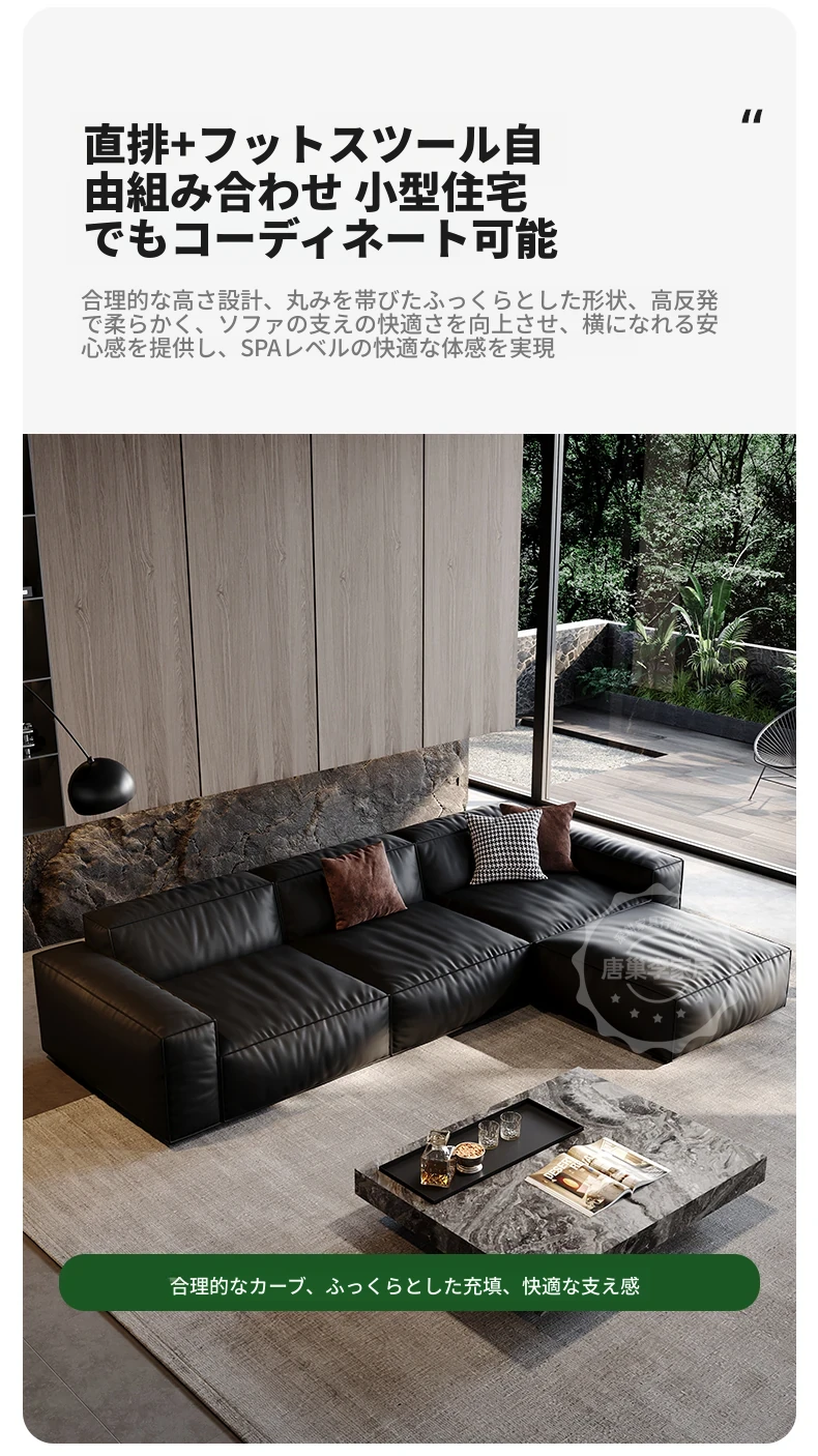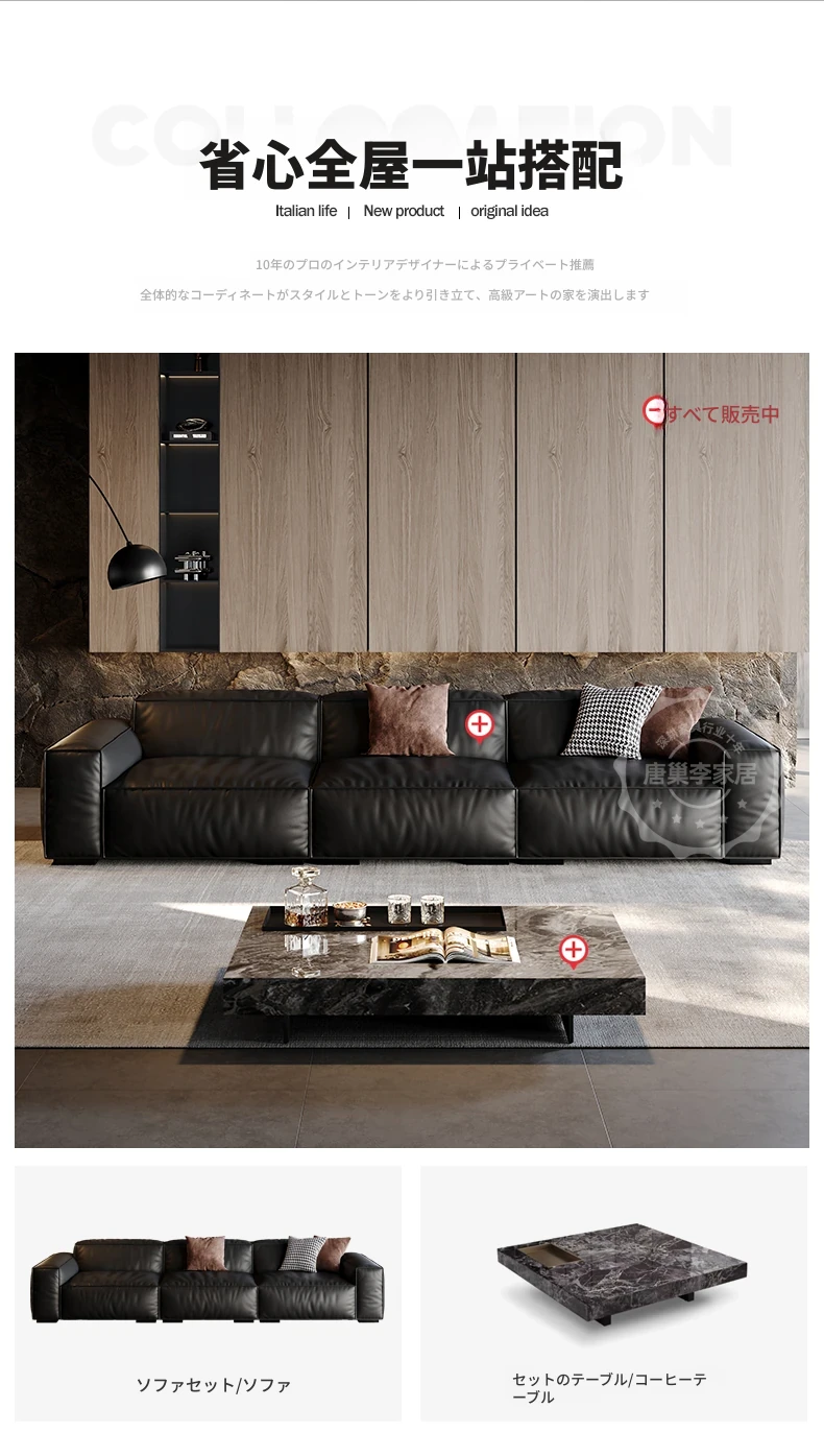 豆腐ブロック本革ソファ|モダンミニマリストデザイン|イタリアンラグジュアリー|リビングや小型住宅に最適なコンビネーション|上質なトップグレイン牛革使用で贅沢な座り心地を実現
