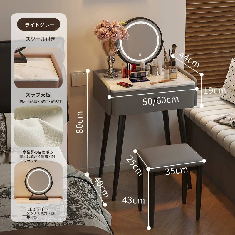 ライトグレー - 猫爪皮【単卓+スツール+鏡】
