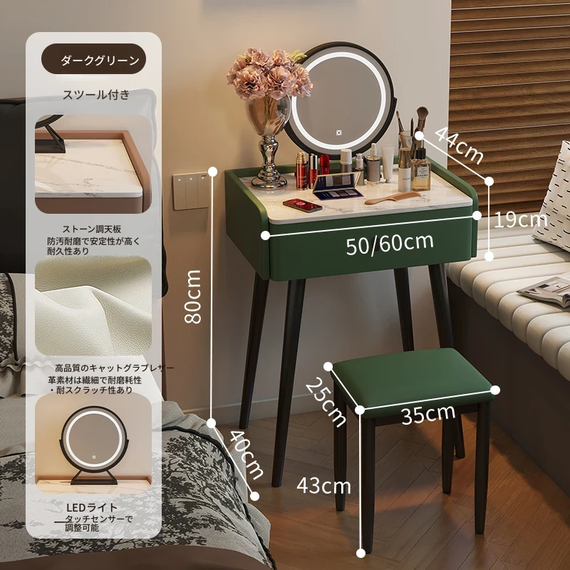 ダークグリーン - 猫爪皮【単卓+スツール+鏡】