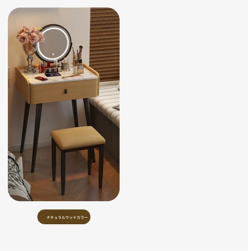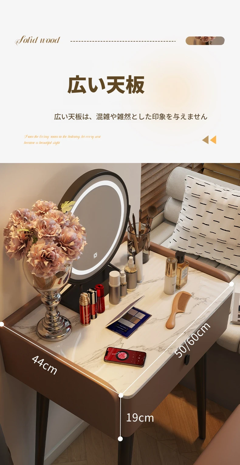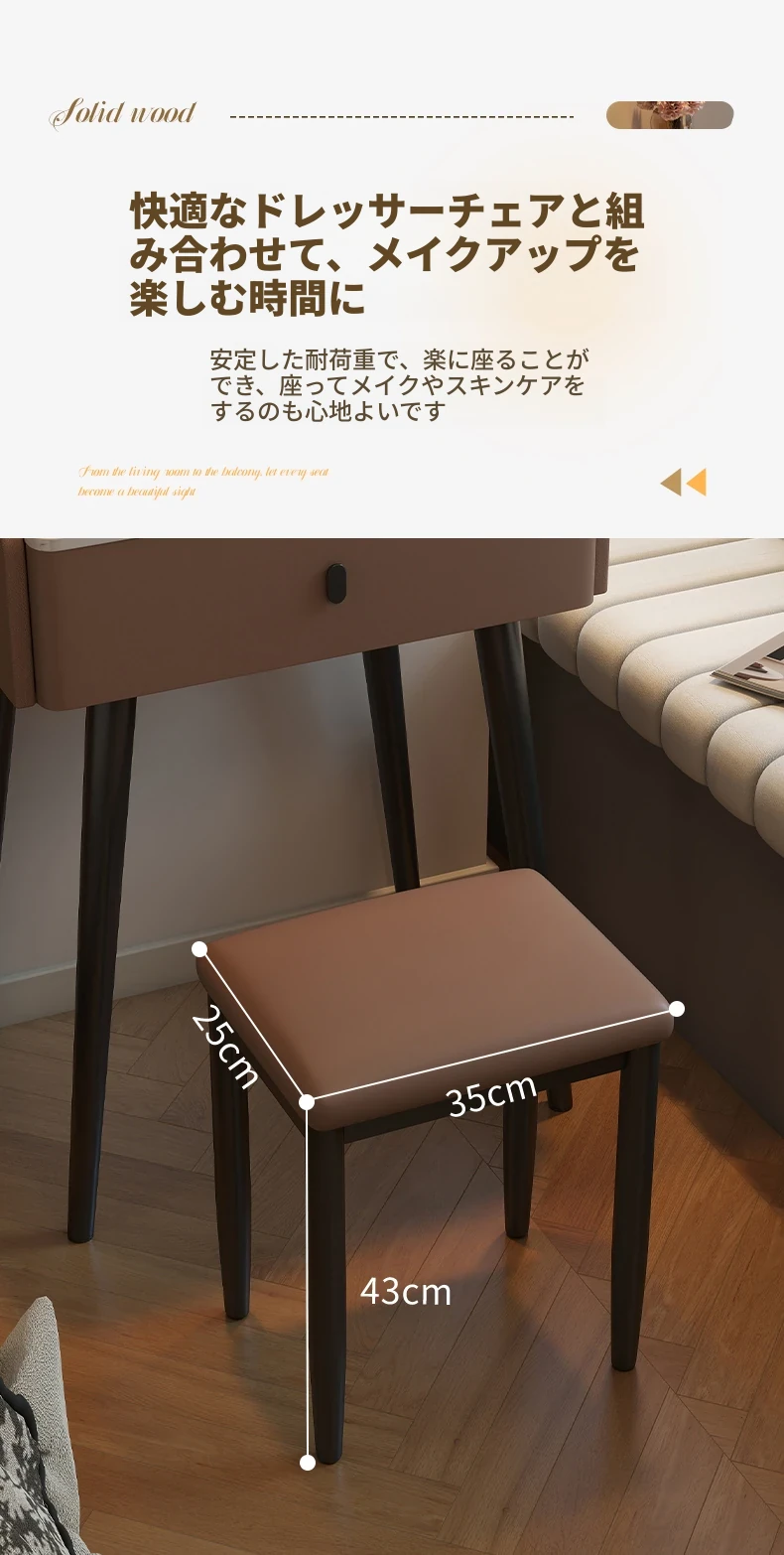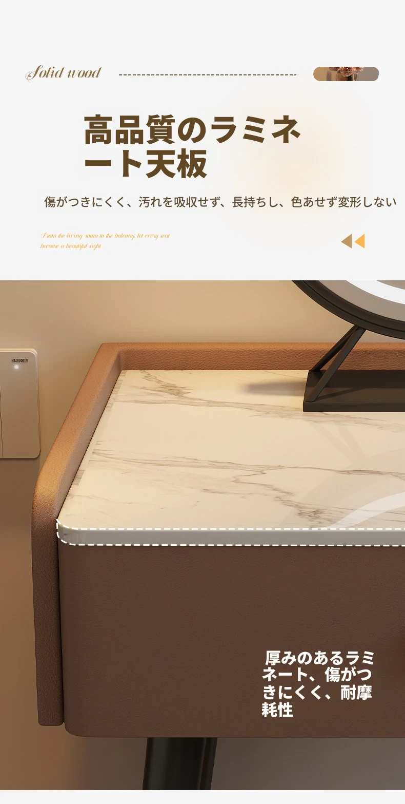 モダンでシンプルなデザインの小型化粧台、2025年新作!高級感あふれるレザー仕上げと実木製の構造で、寝室にぴったりのスタイリッシュな鏡付きドレッサー。あなたの美しさを引き立てる完璧なアイテムです!