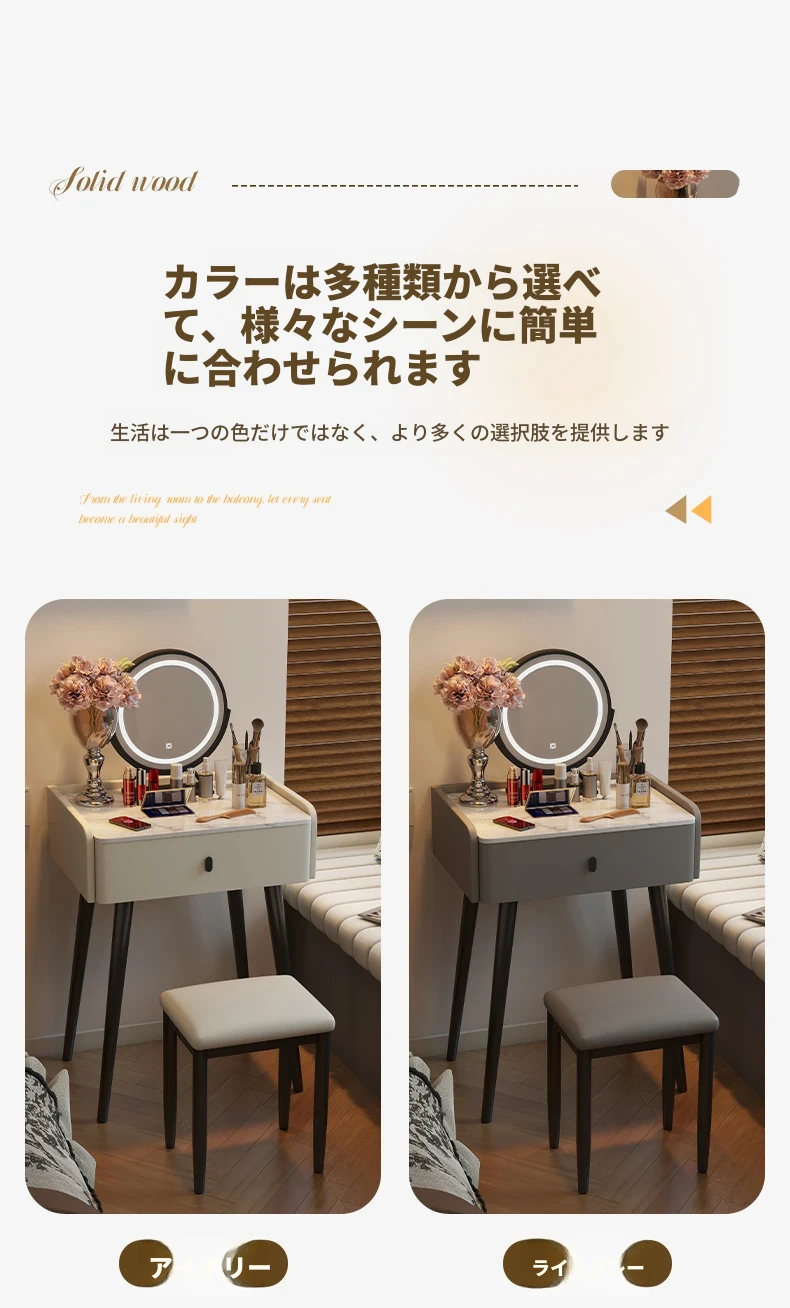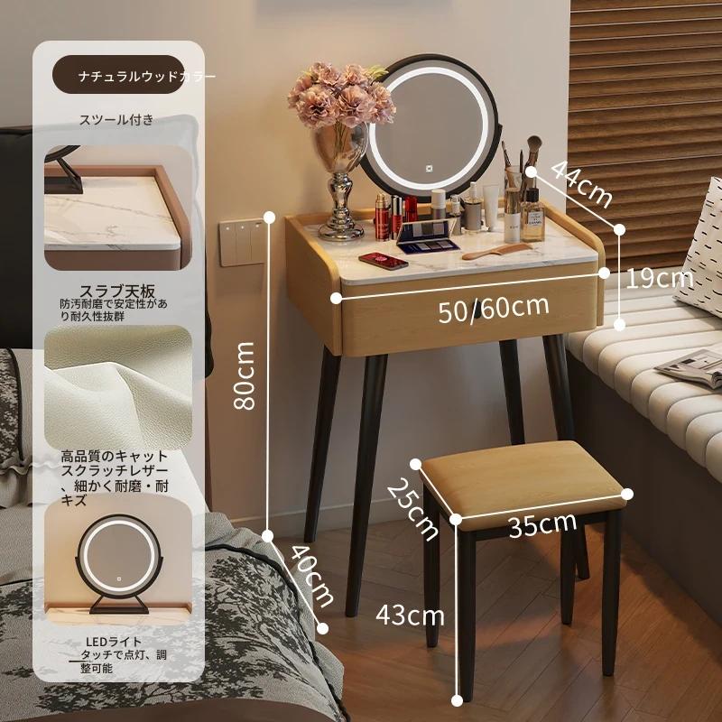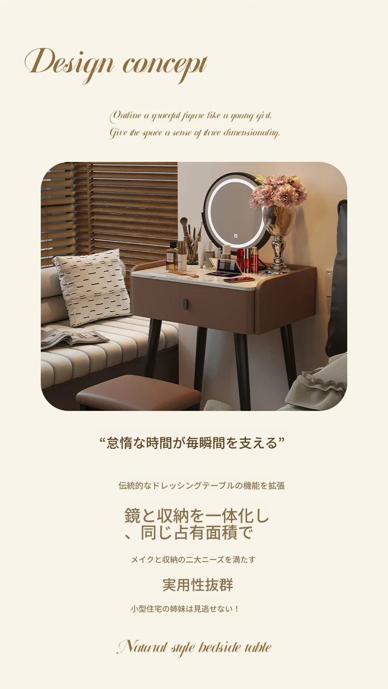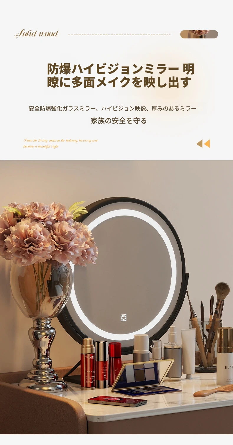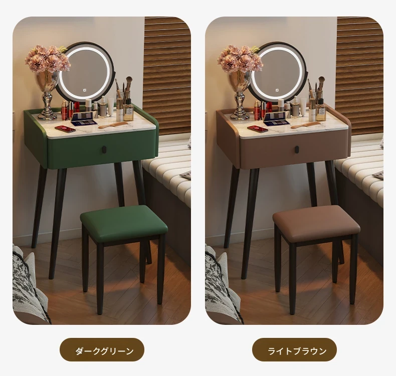 モダンでシンプルなデザインの小型化粧台、2025年新作!高級感あふれるレザー仕上げと実木製の構造で、寝室にぴったりのスタイリッシュな鏡付きドレッサー。あなたの美しさを引き立てる完璧なアイテムです!