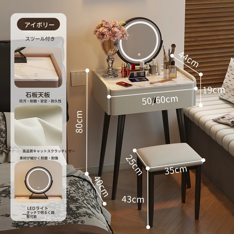 アイボリー - 猫爪皮【単卓+スツール+鏡】