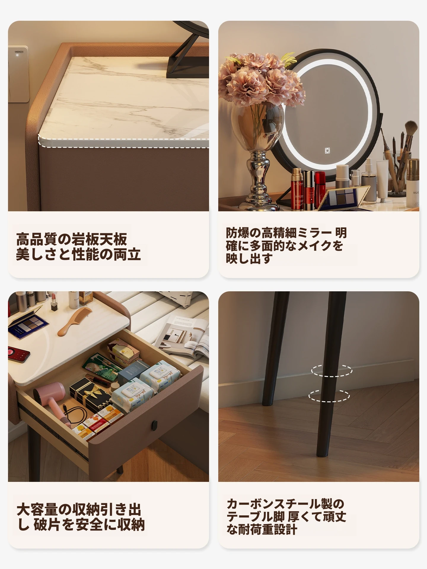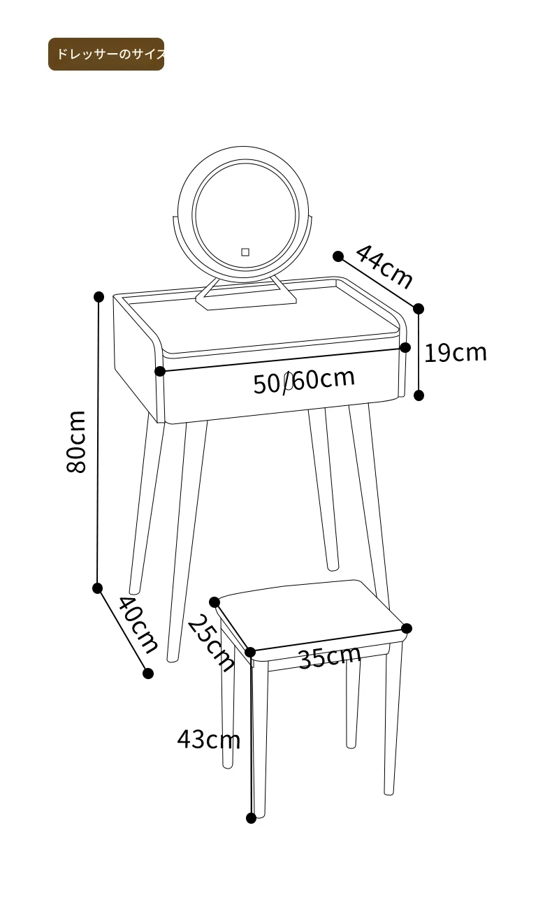 ライトブラウン - 猫爪皮【単卓+スツール+鏡】