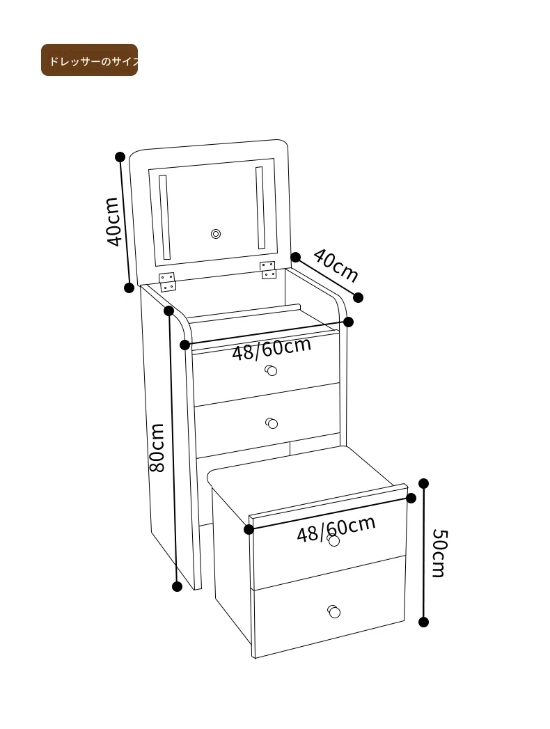 60cm【クリーム色】リフトアップドレッサー