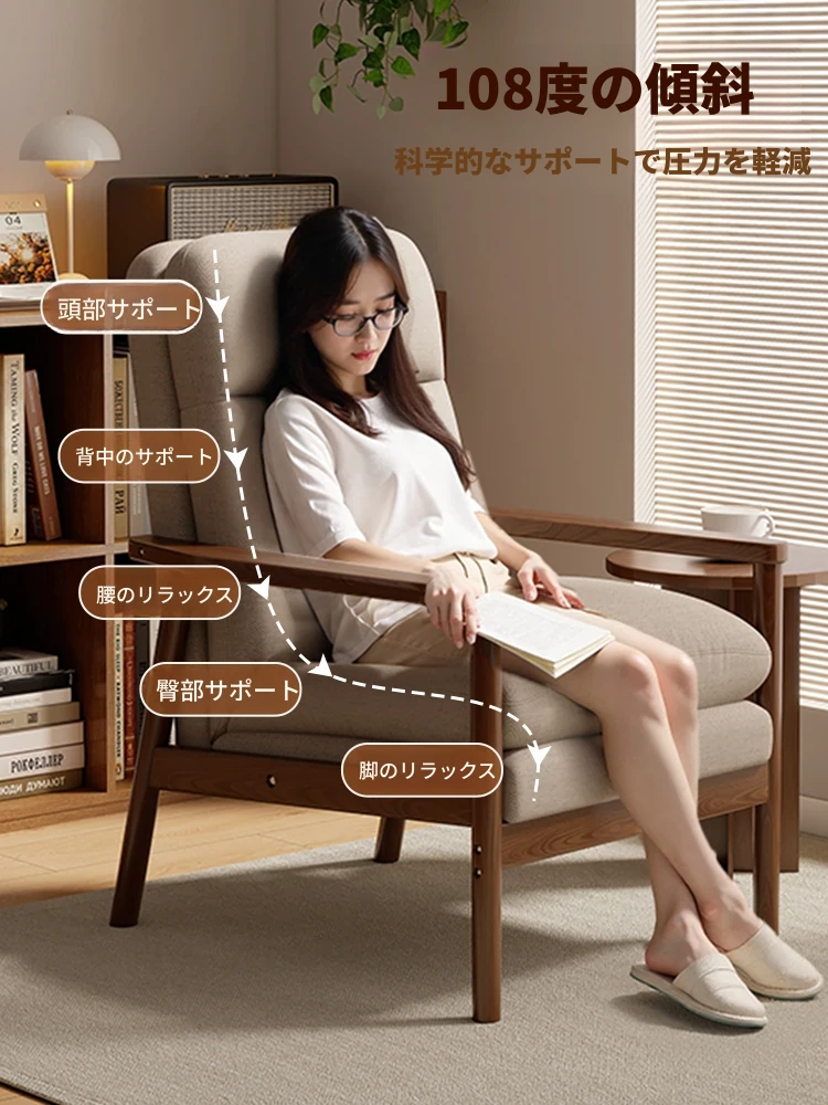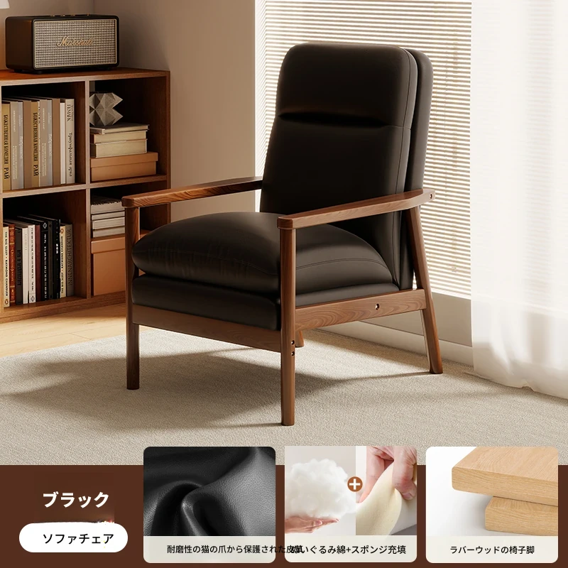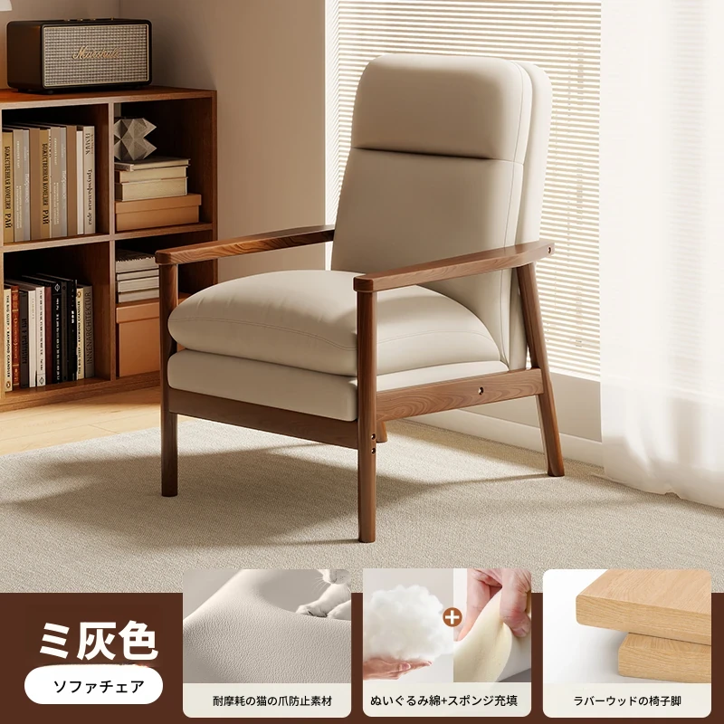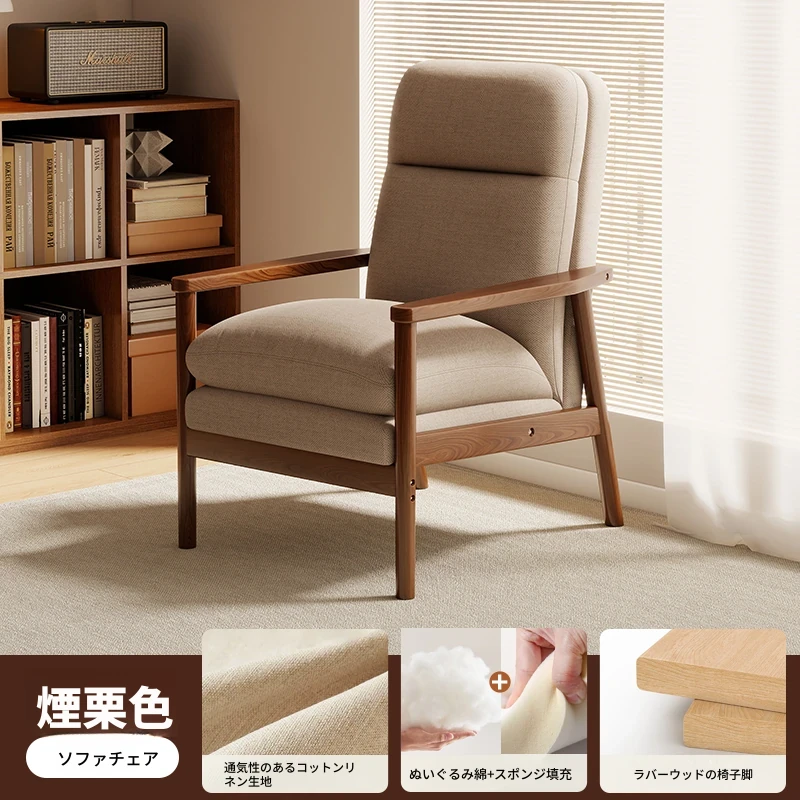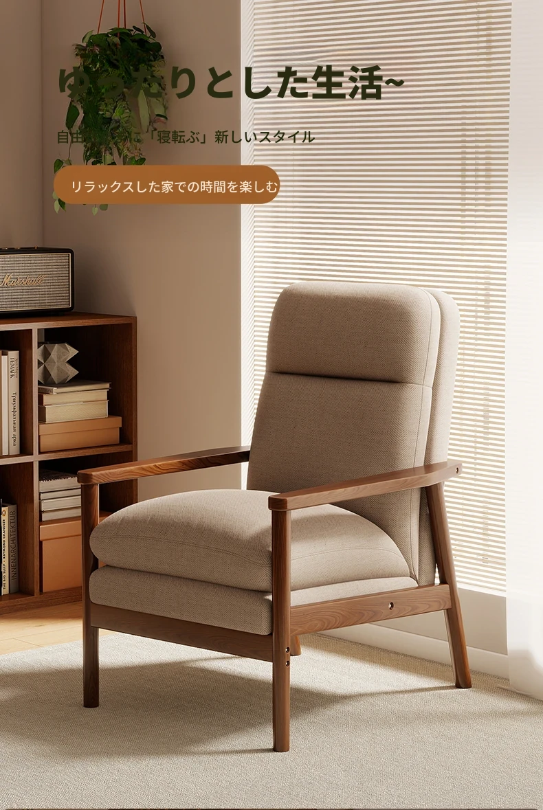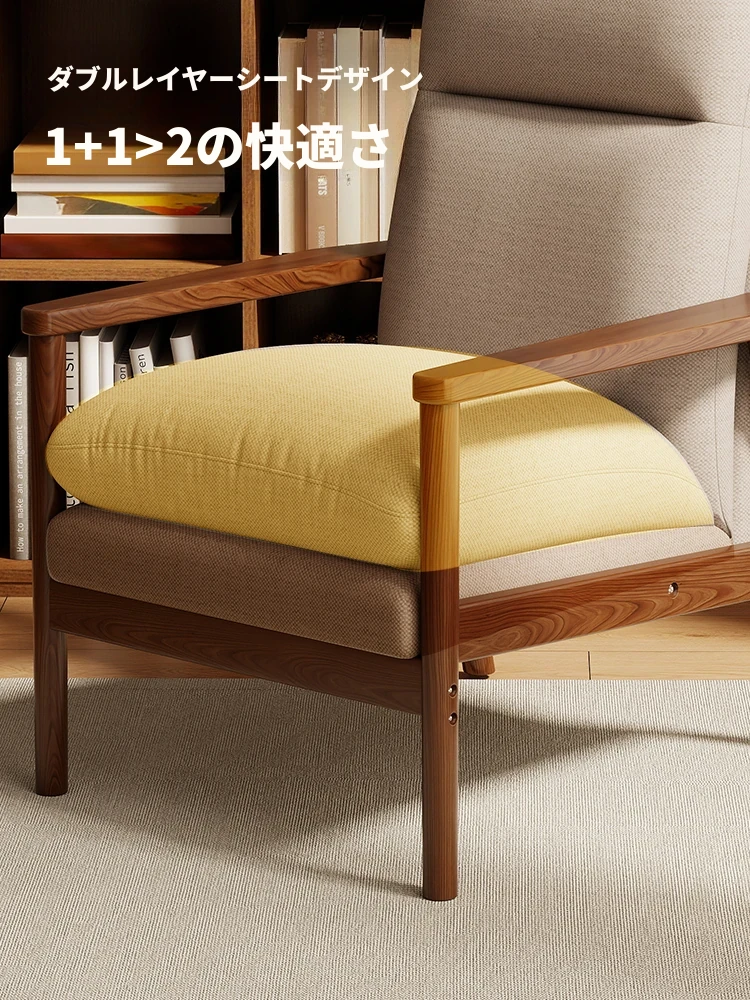モダンなデザインの無垢材一人掛けソファ椅子 - 家庭用、バルコニーに最適なリラックスチェア。快適な背もたれで、リビングや接客スペースにぴったりです。