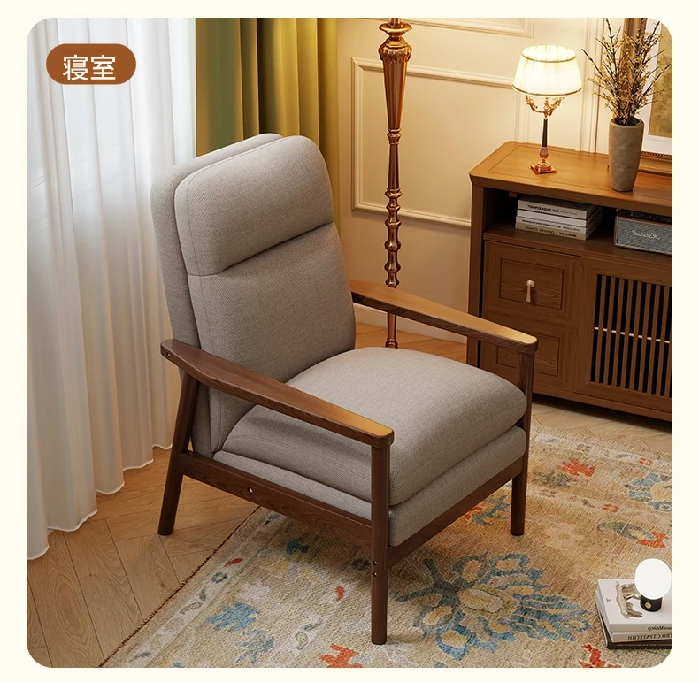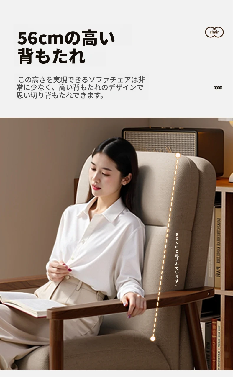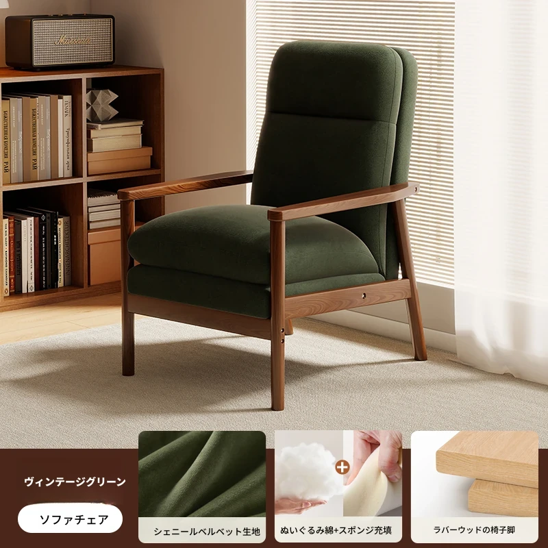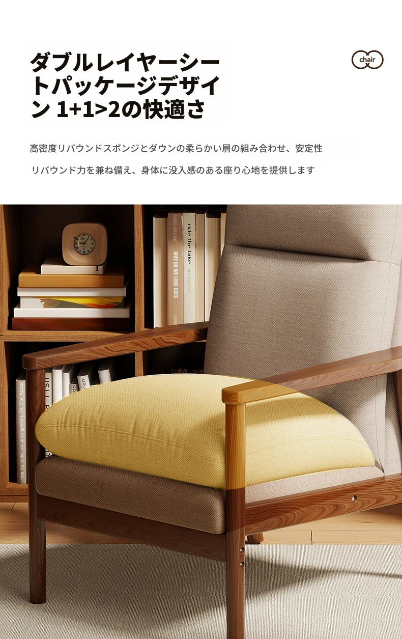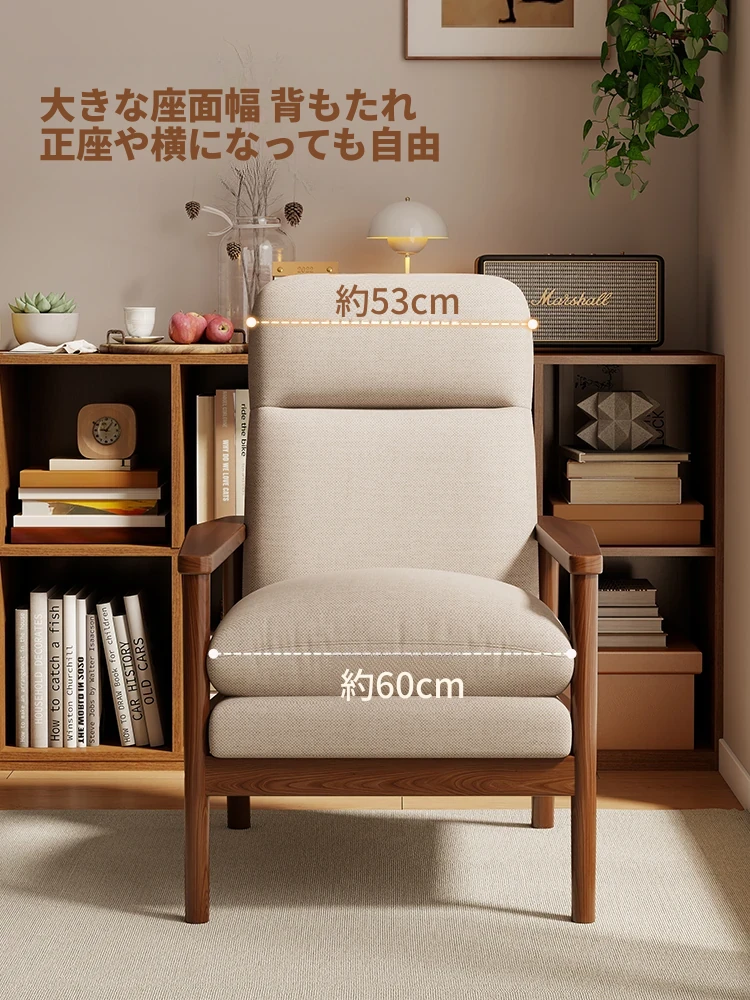 モダンなデザインの無垢材一人掛けソファ椅子 - 家庭用、バルコニーに最適なリラックスチェア。快適な背もたれで、リビングや接客スペースにぴったりです。
