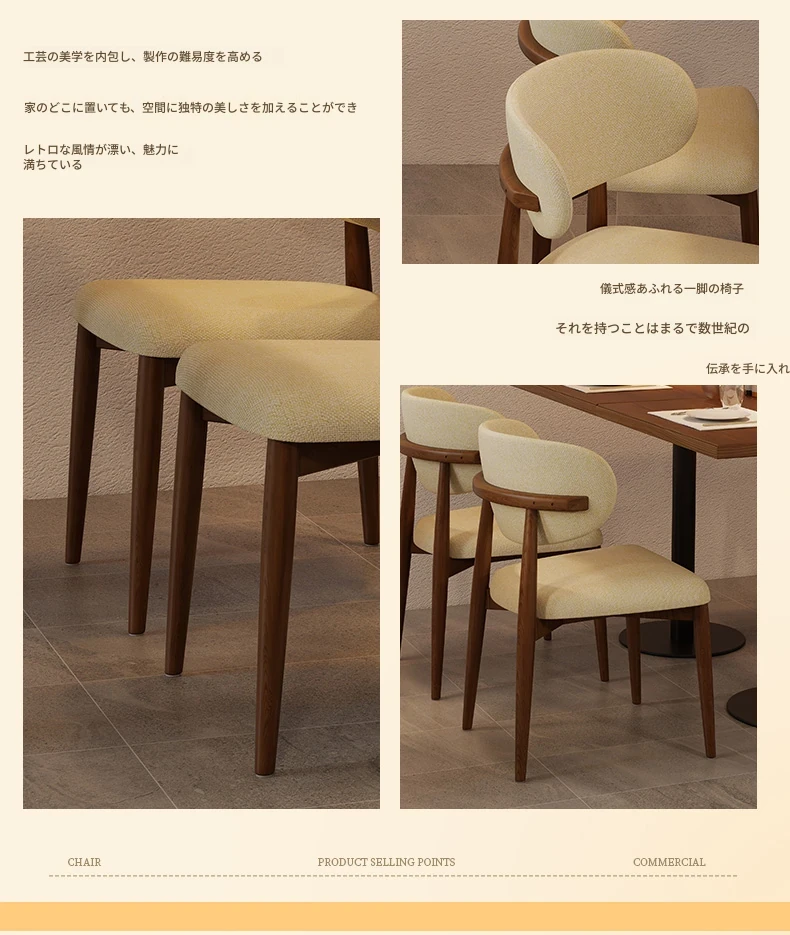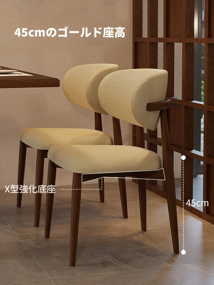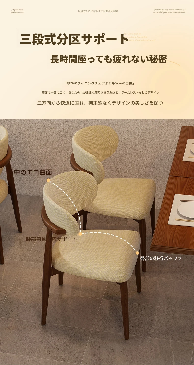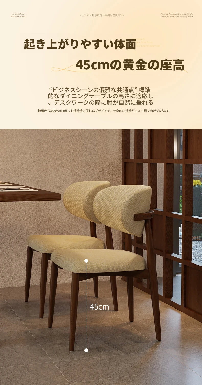 高級感漂う無垢材ダイニングチェア - モダンな家庭用軽奢スタイル、ホテルやカフェにもぴったり!リラックスできるデザインで、書斎やレストランにも最適なチェアです。
