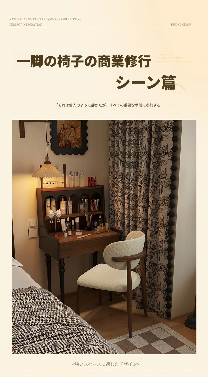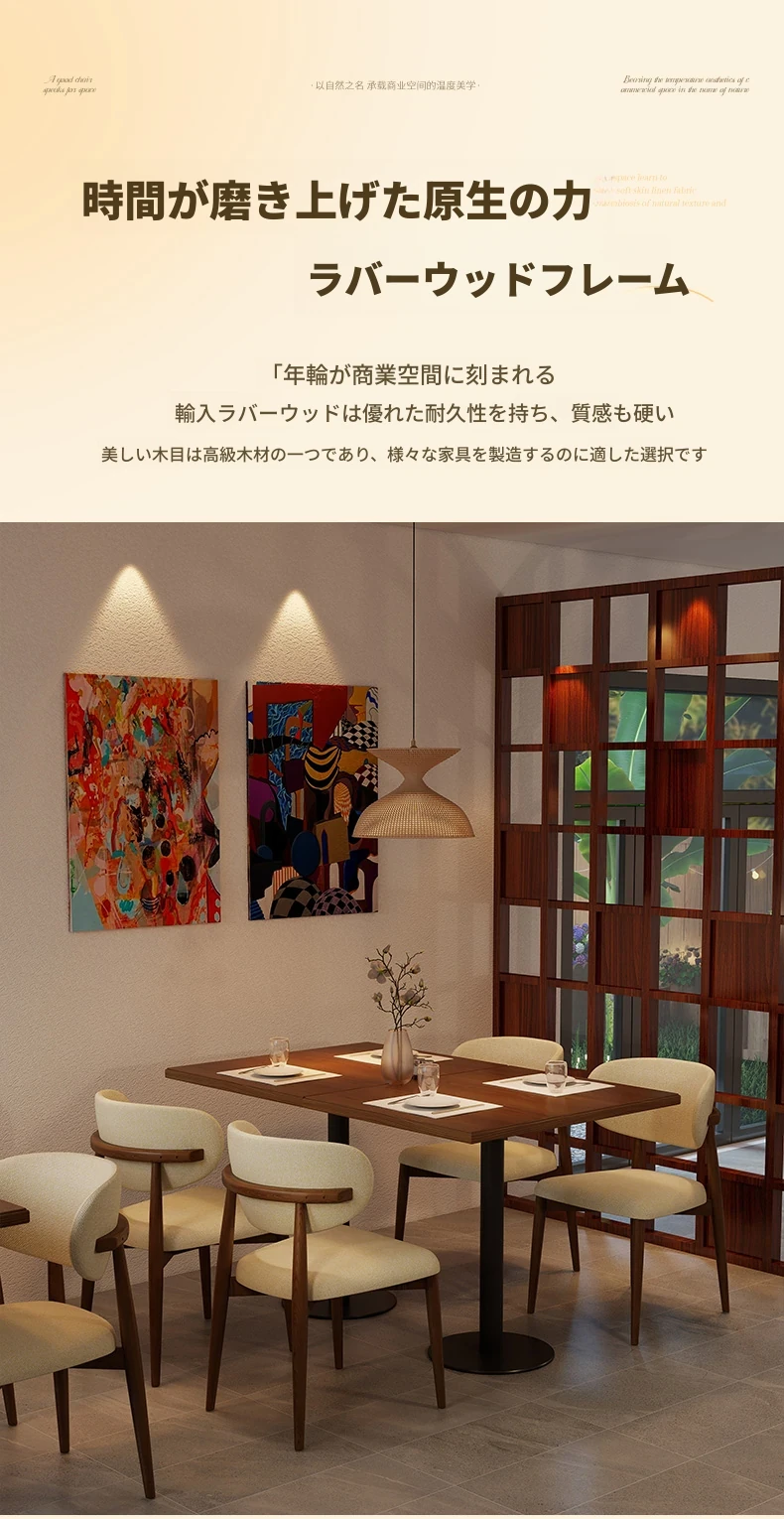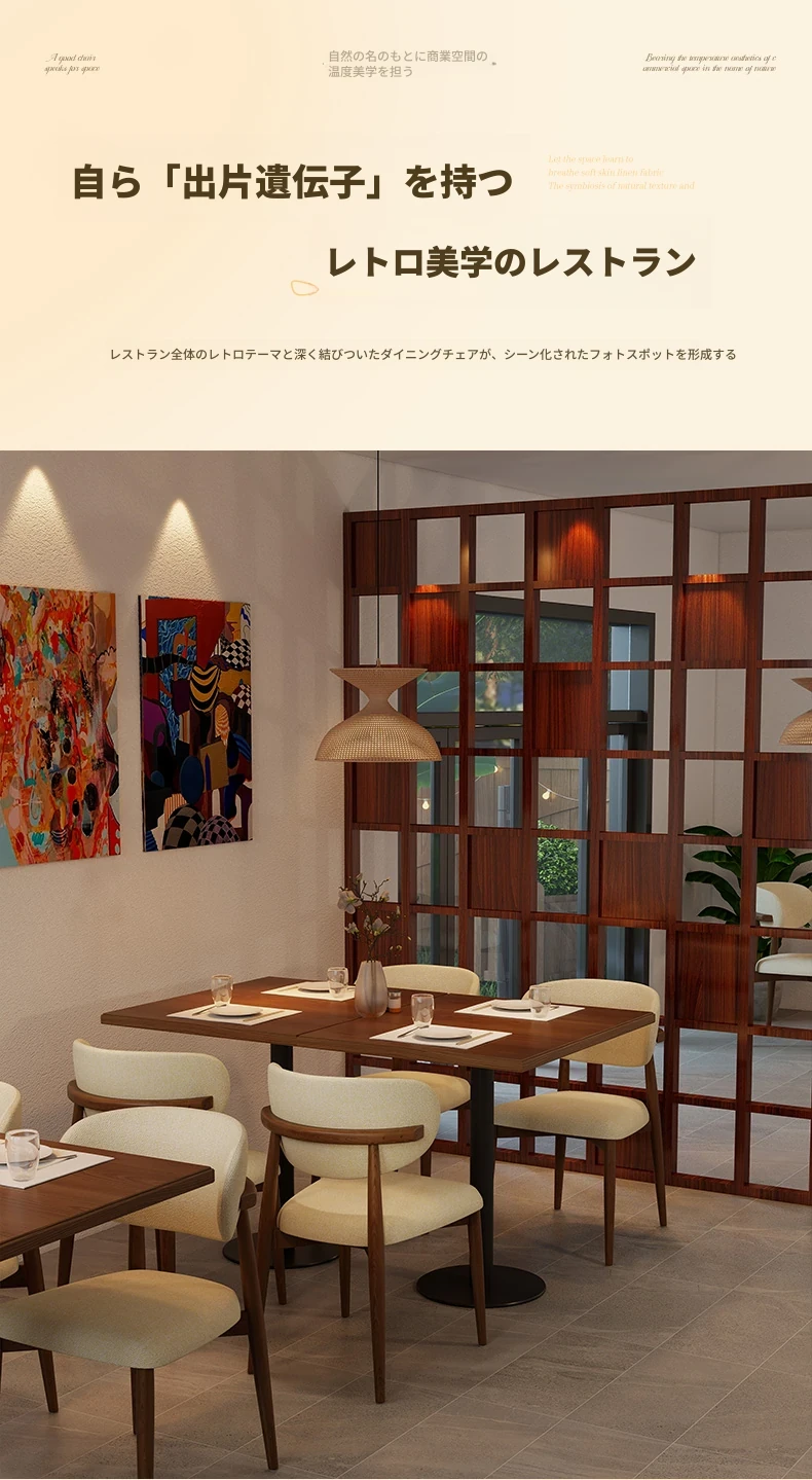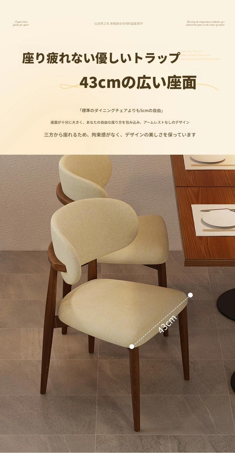 高級感漂う無垢材ダイニングチェア - モダンな家庭用軽奢スタイル、ホテルやカフェにもぴったり!リラックスできるデザインで、書斎やレストランにも最適なチェアです。