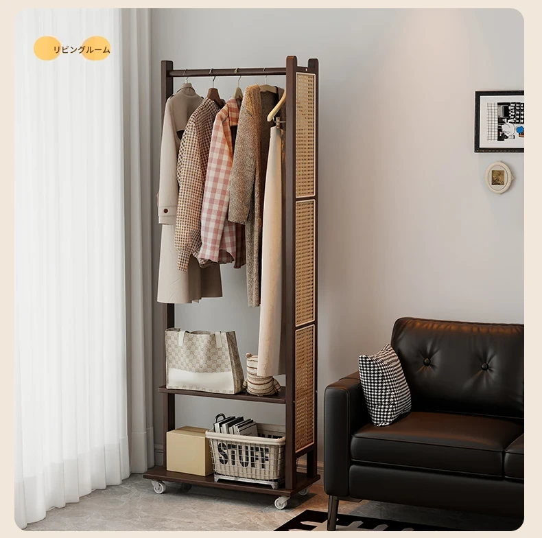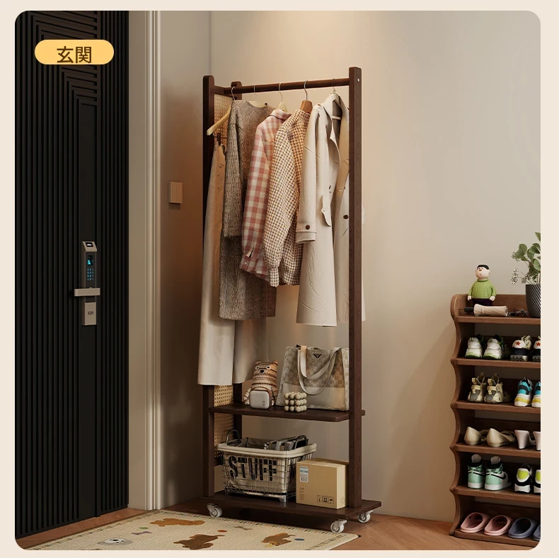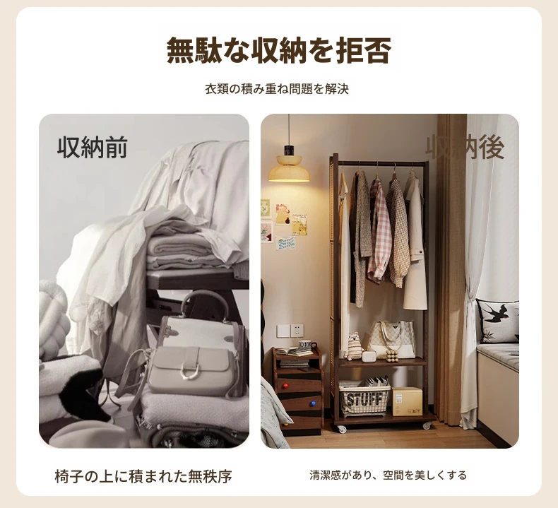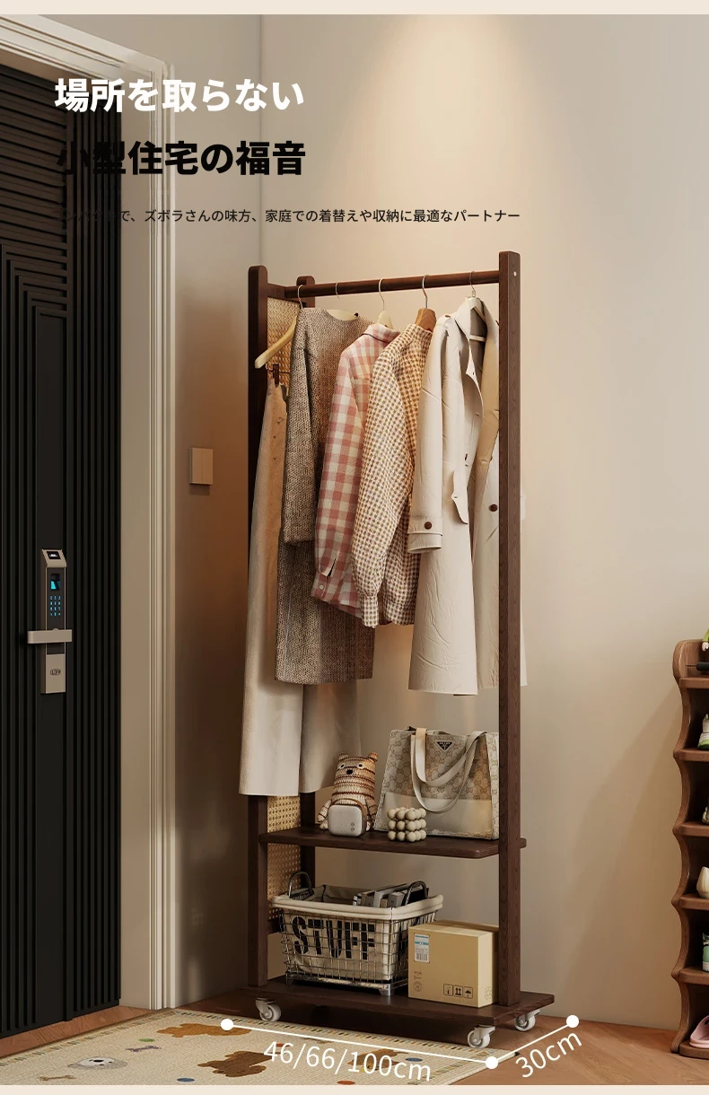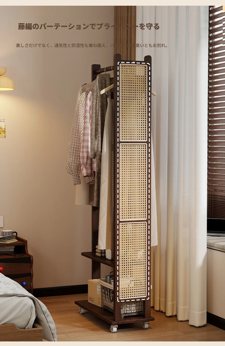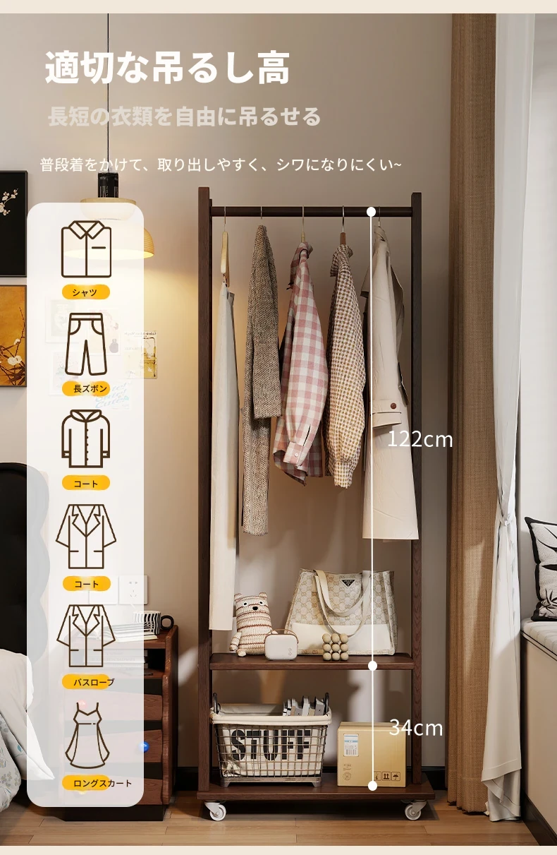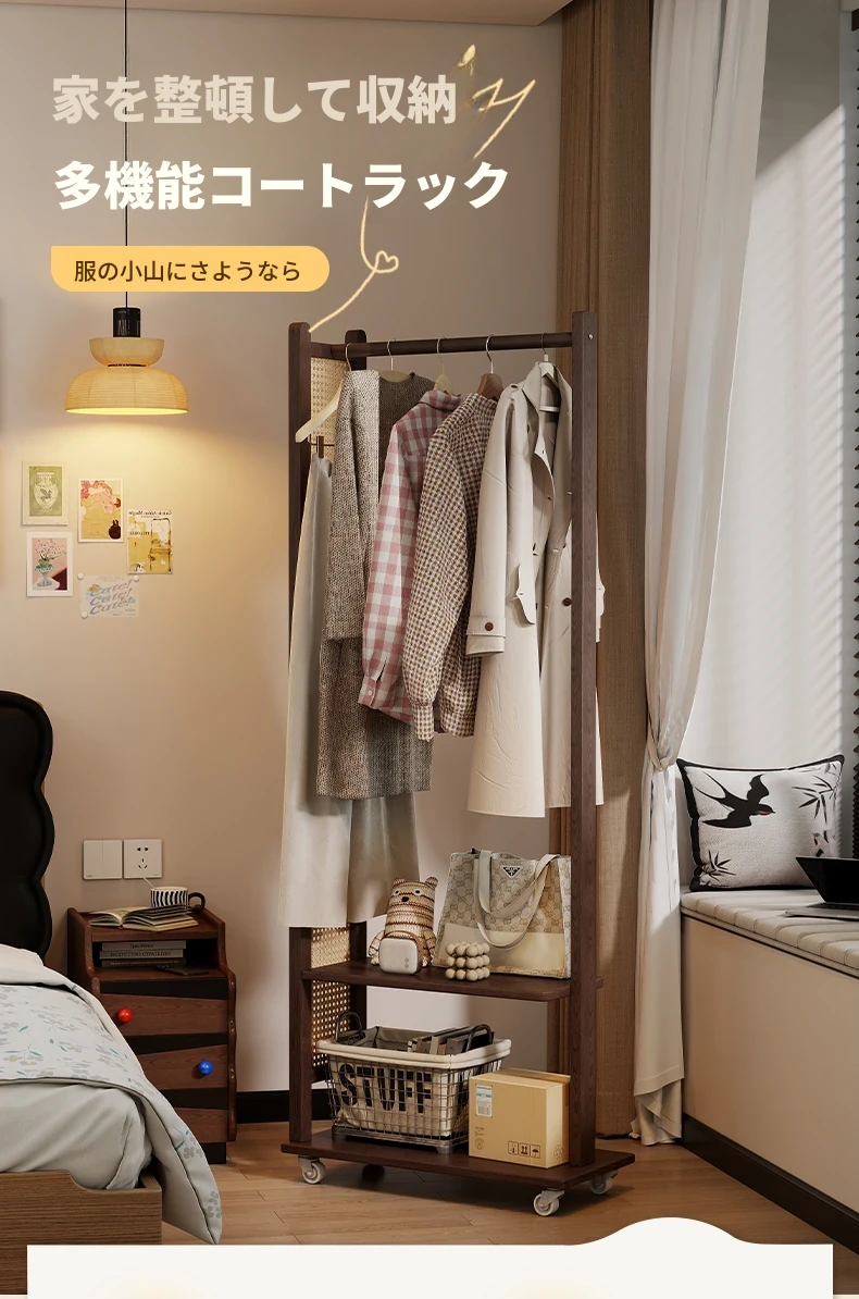 コンパクトな寝室に最適!多機能移動式コートハンガー - シンプルでモダンなデザインの衣類収納ラックで、スッキリとした空間を実現。お部屋の入り口にもぴったり!