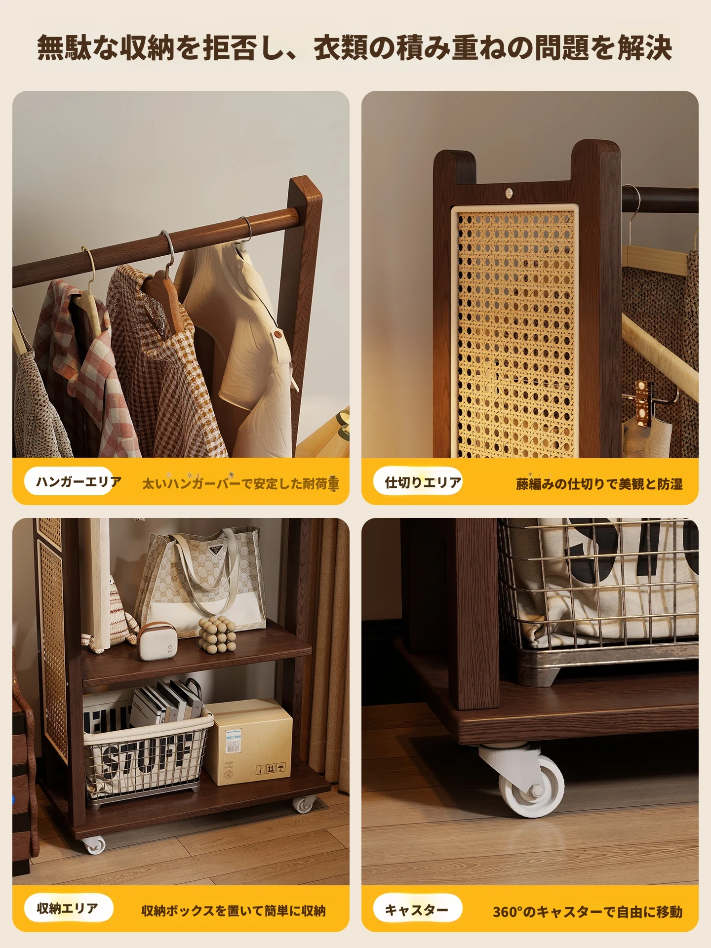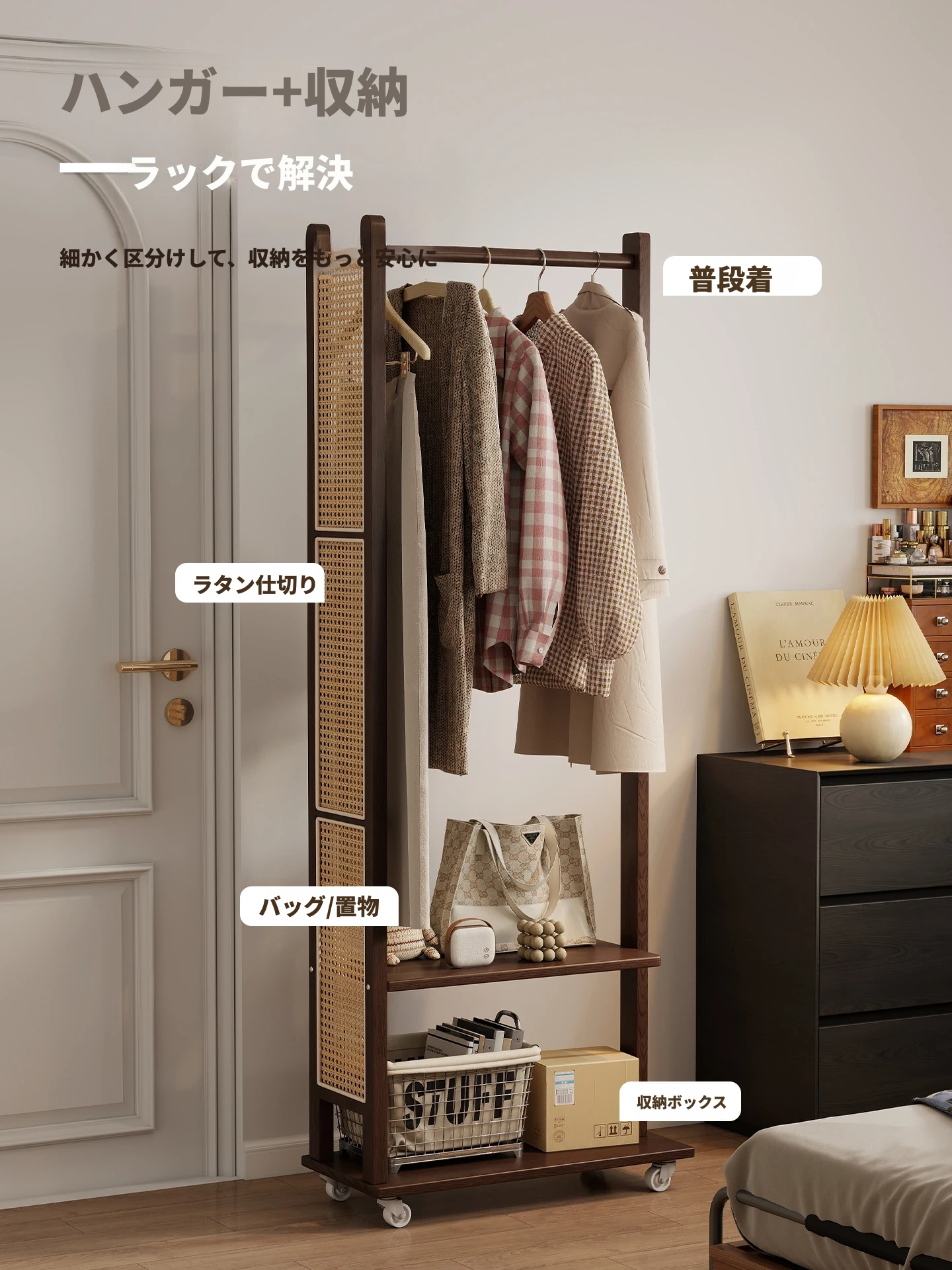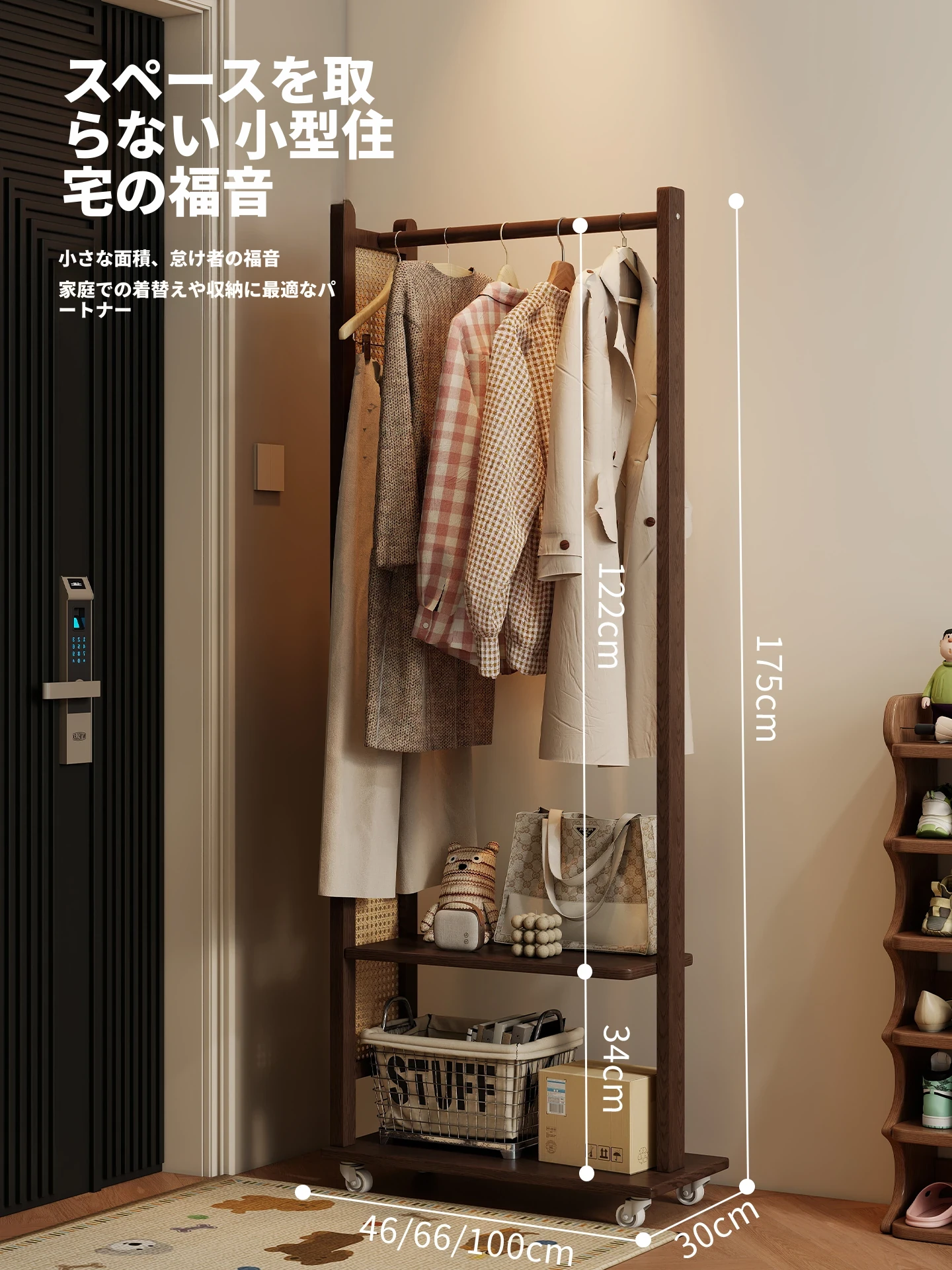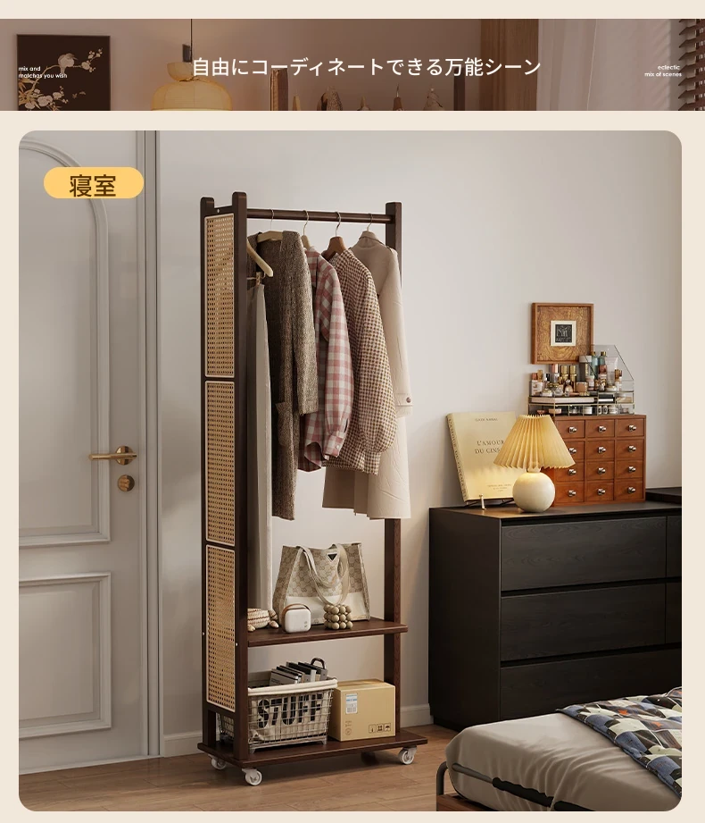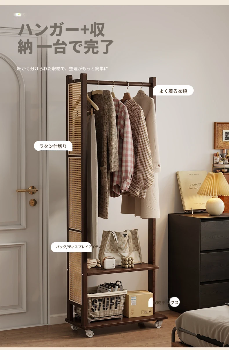 コンパクトな寝室に最適!多機能移動式コートハンガー - シンプルでモダンなデザインの衣類収納ラックで、スッキリとした空間を実現。お部屋の入り口にもぴったり!
