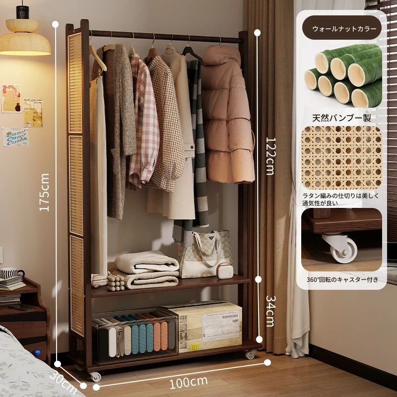 100cm【ウォールナット色】移動式コートハンガー-天然バンブー