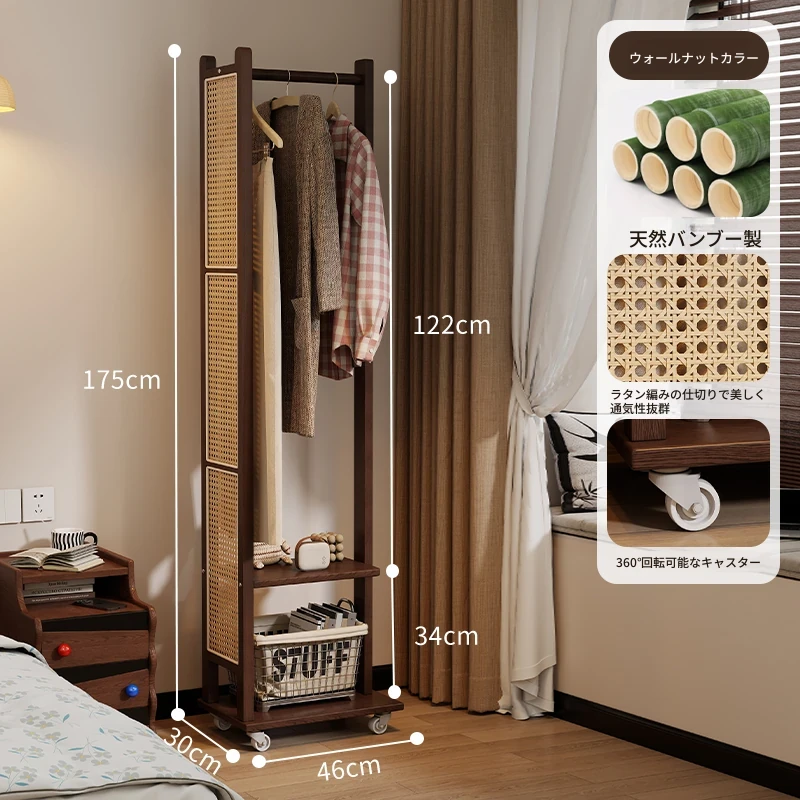 46cm【ウォールナット色】移動式コートハンガー-天然バンブー