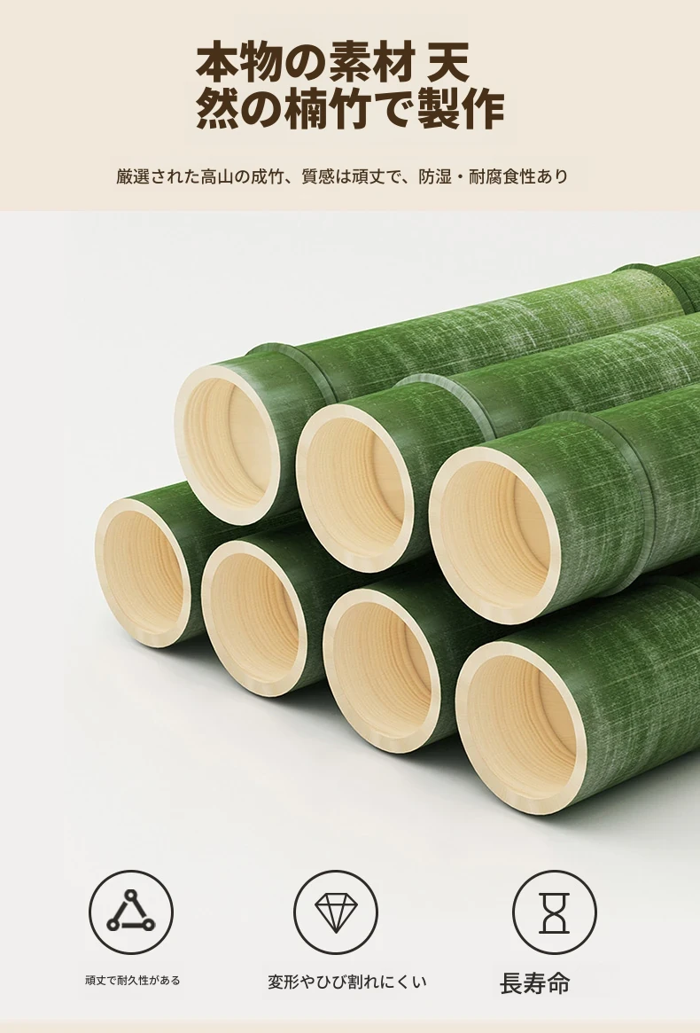 66cm【ブラウン】移動式コートハンガー-天然バンブー