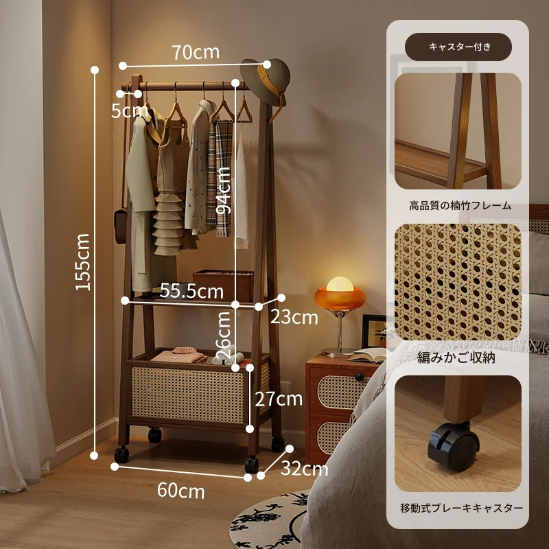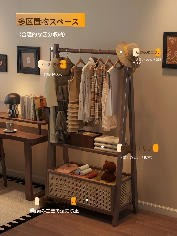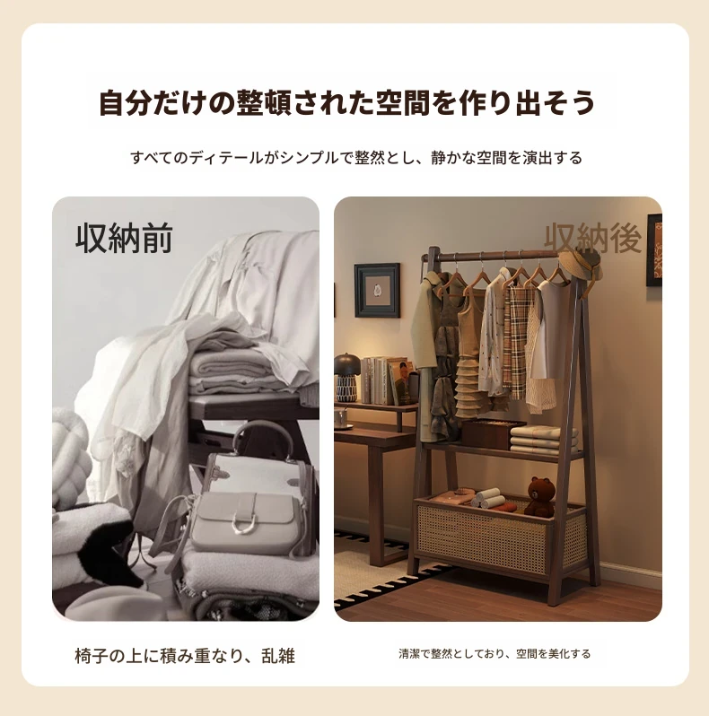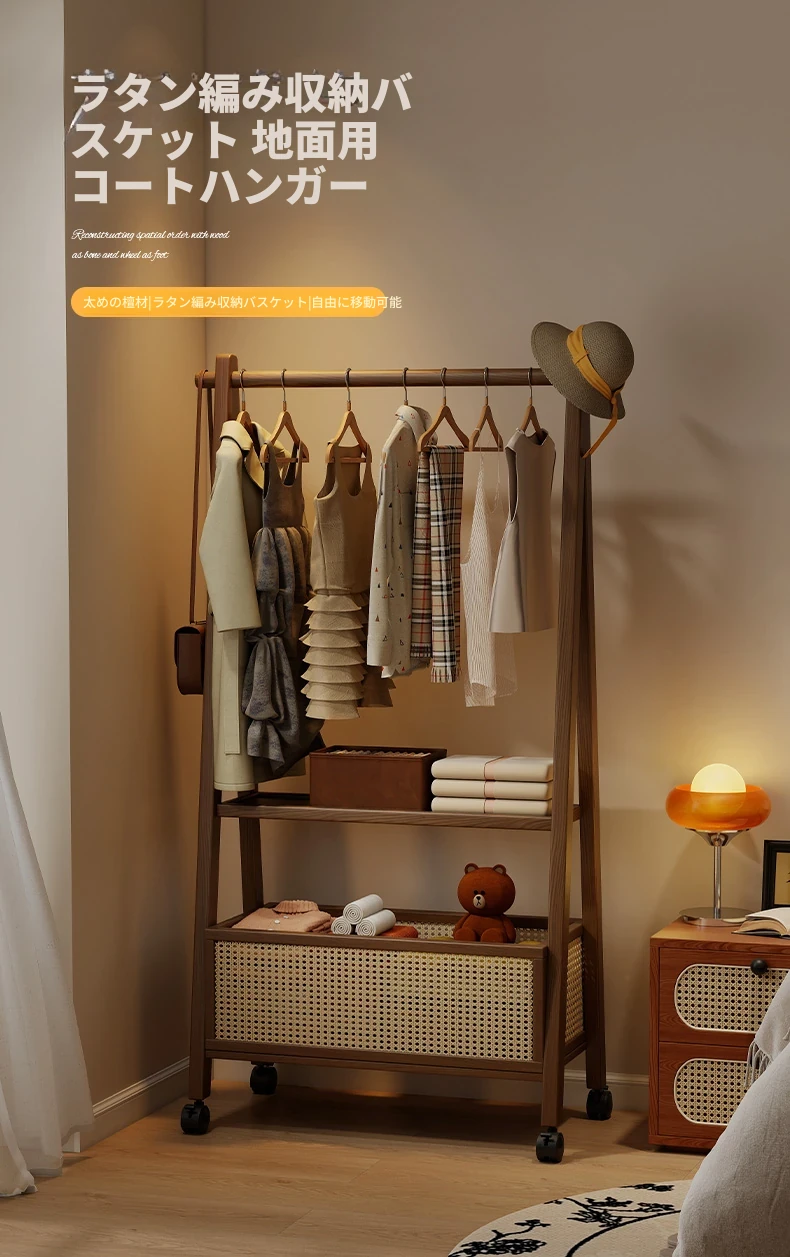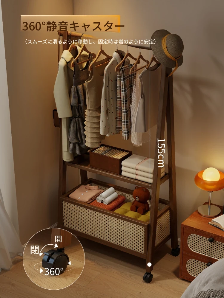 多機能衣服掛けラック - 移動可能なスタンド式ハンガー、寝室やリビングに最適!収納スペースも確保できる便利なアイテム!