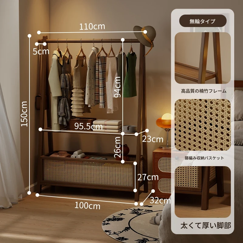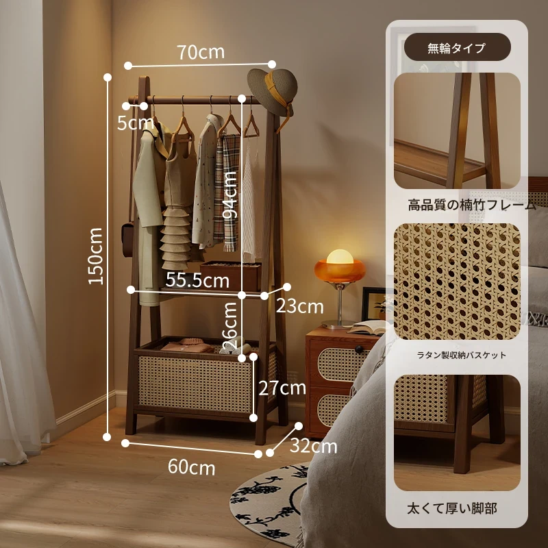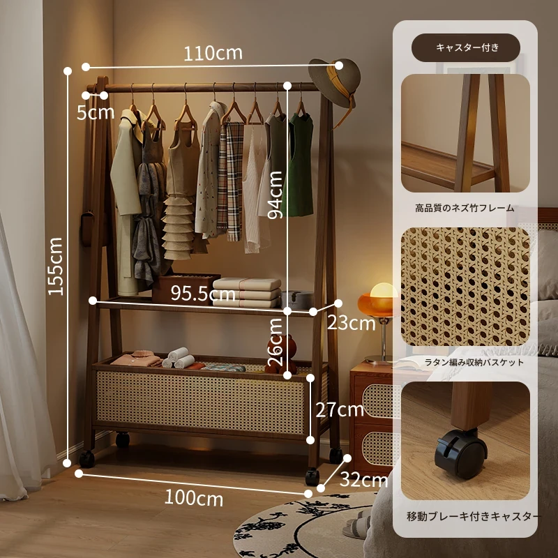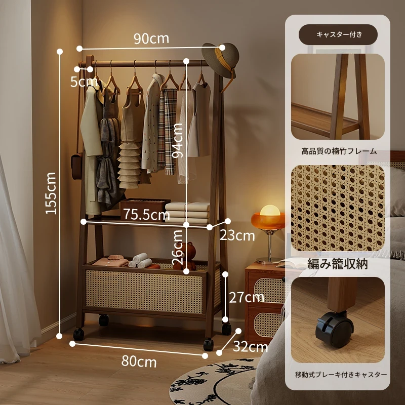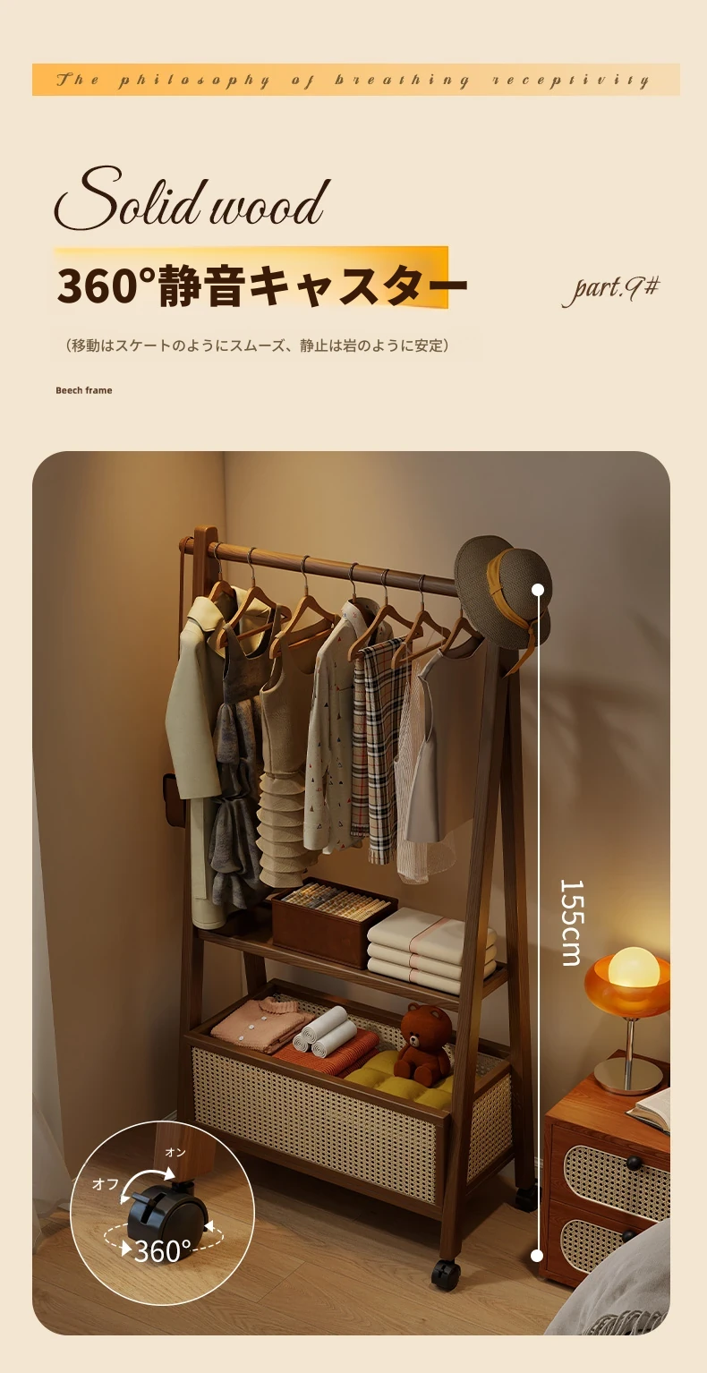 多機能衣服掛けラック - 移動可能なスタンド式ハンガー、寝室やリビングに最適!収納スペースも確保できる便利なアイテム!