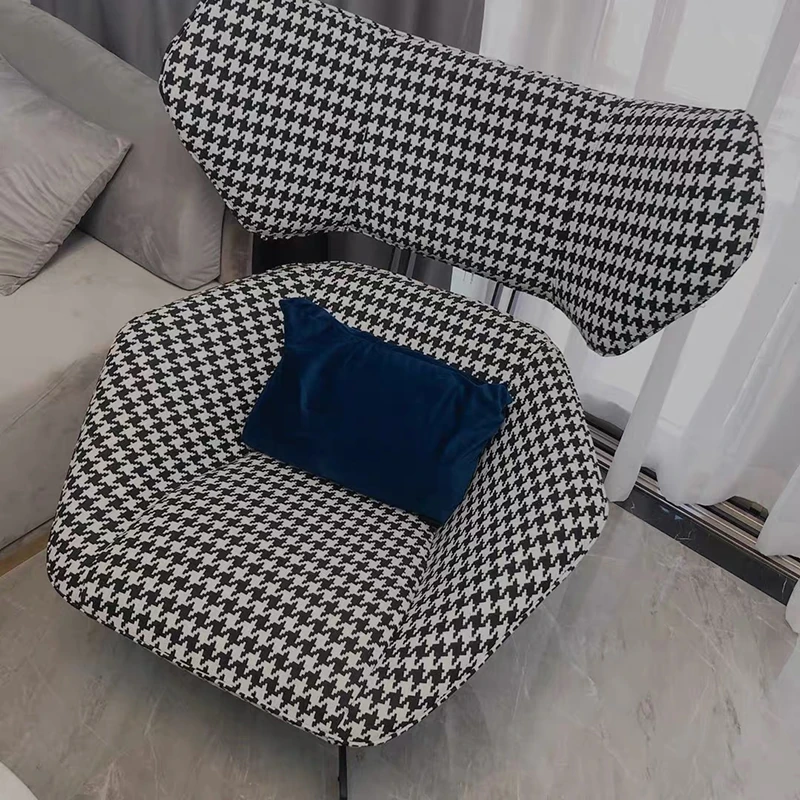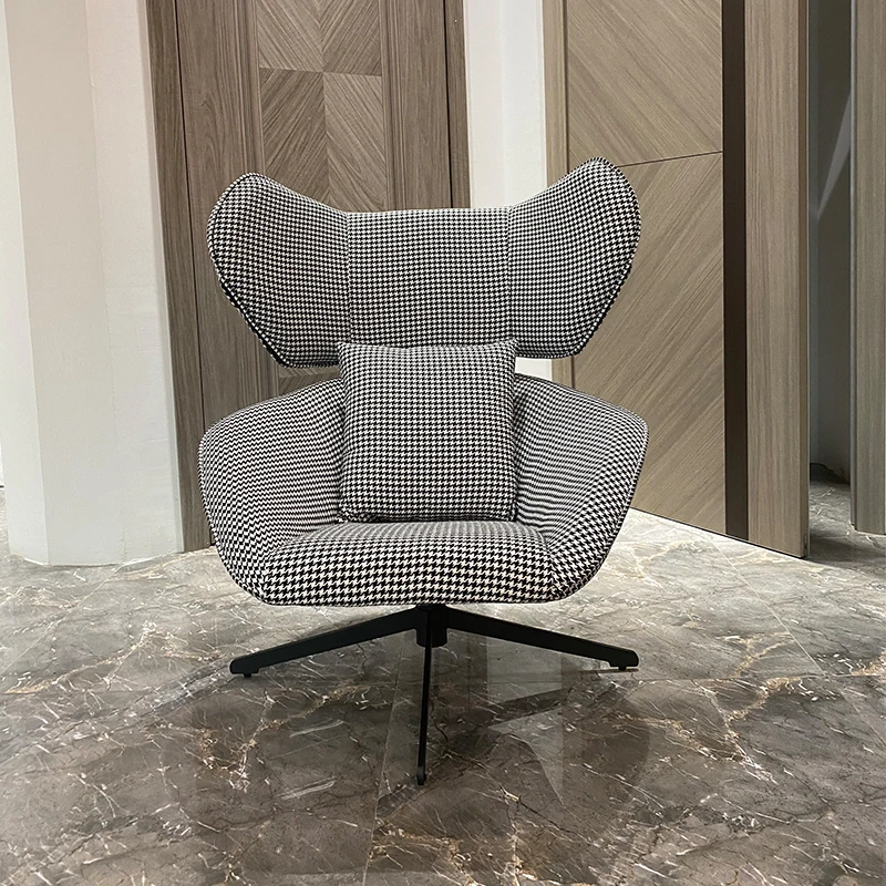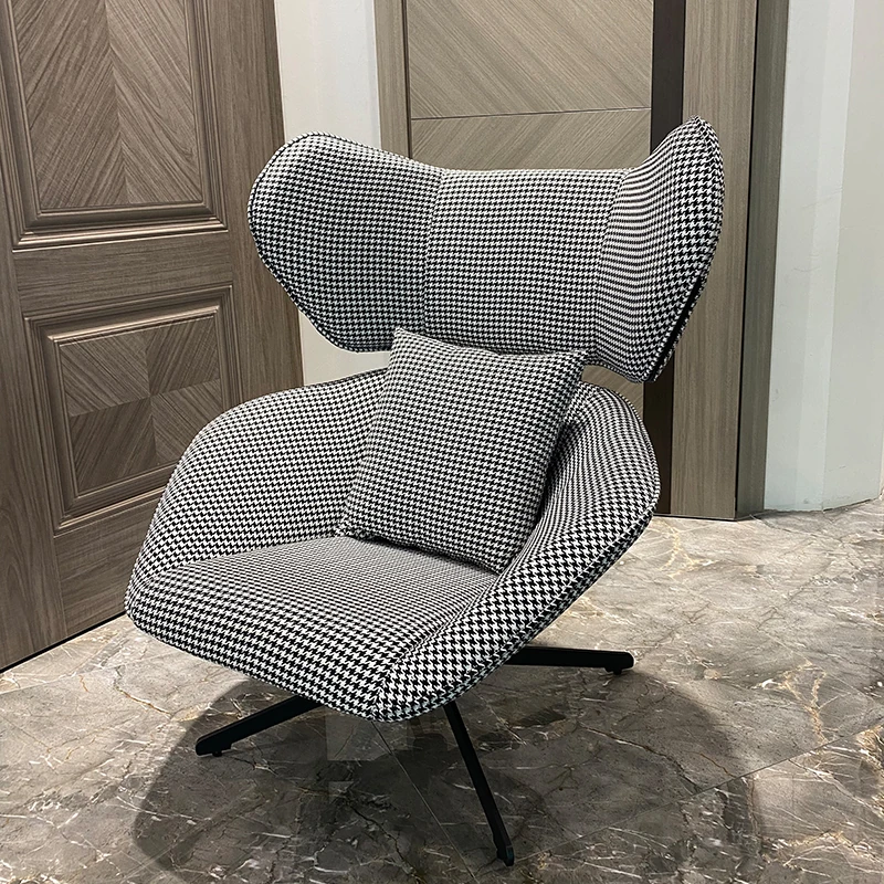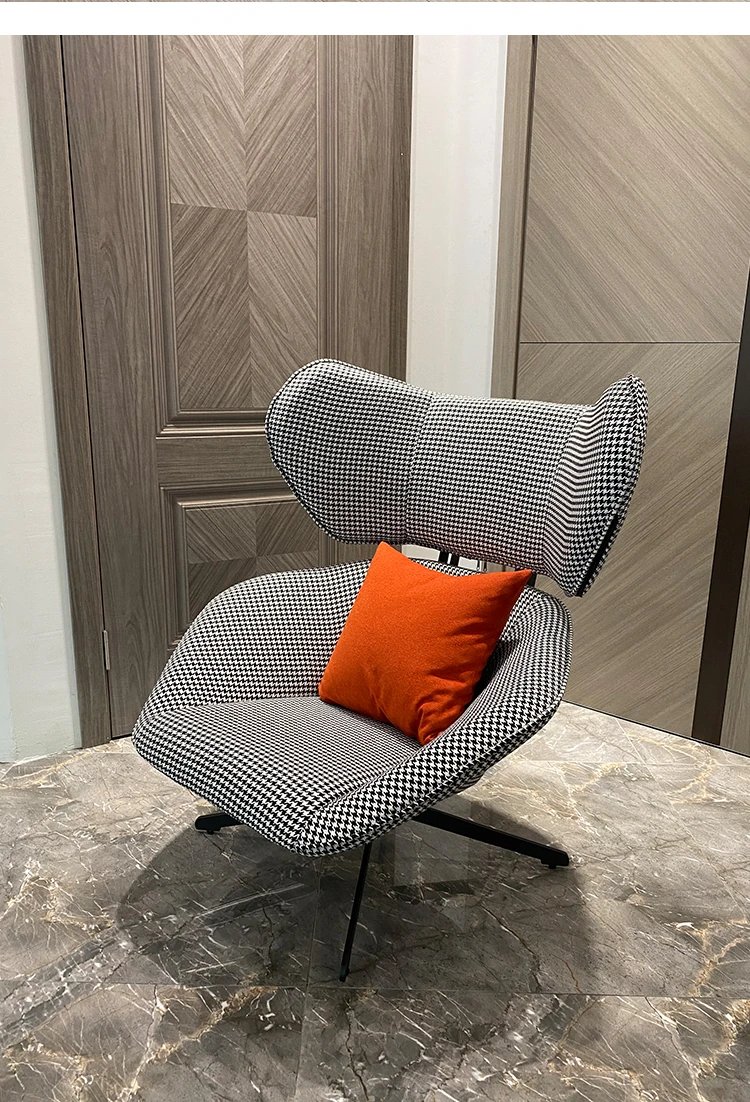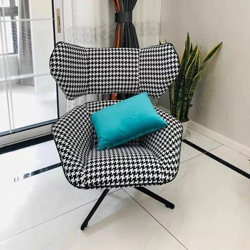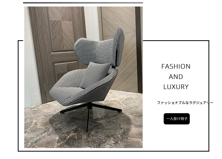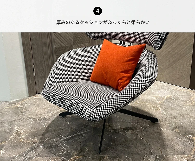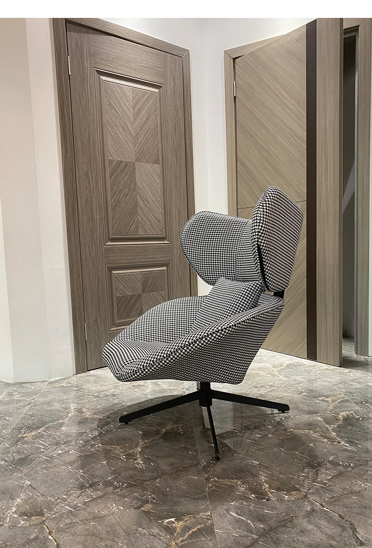 一人用千鳥格デザインの回転ソファチェア - 北欧スタイルのラグジュアリーなリーディングチェア、リラックスに最適な布製スネイルチェア!あなたのリビングをスタイリッシュに演出します。