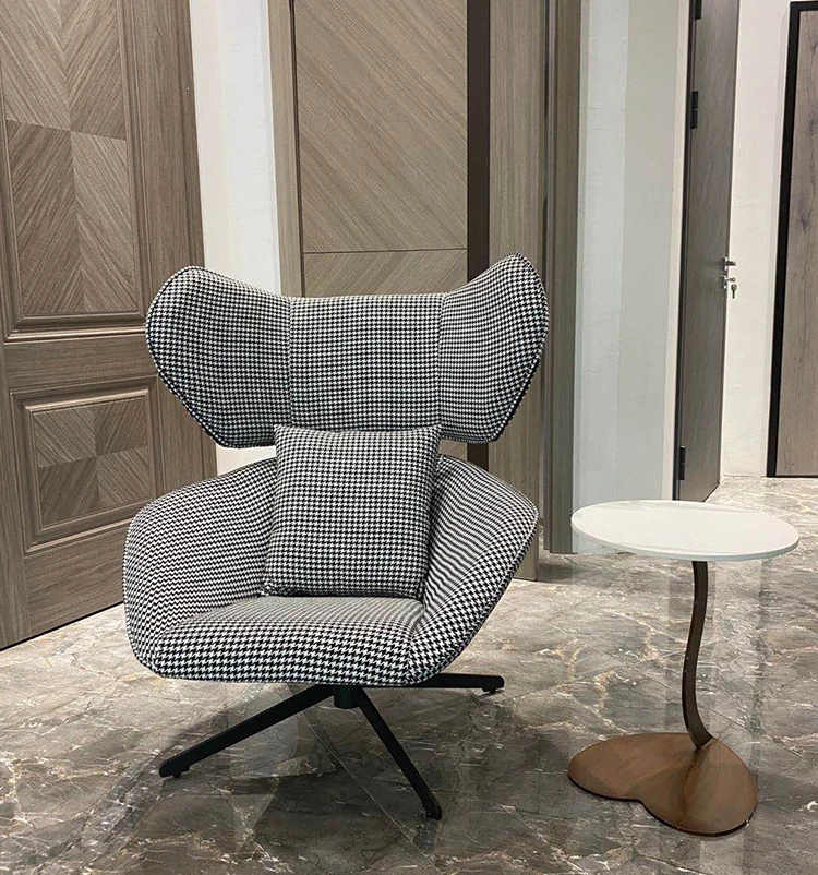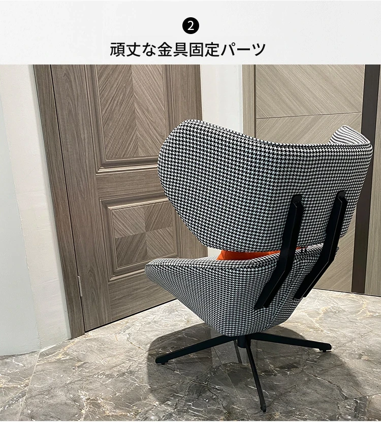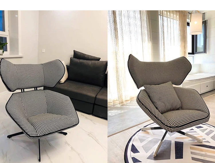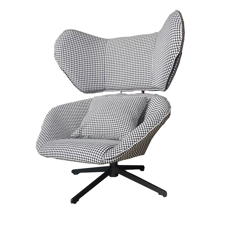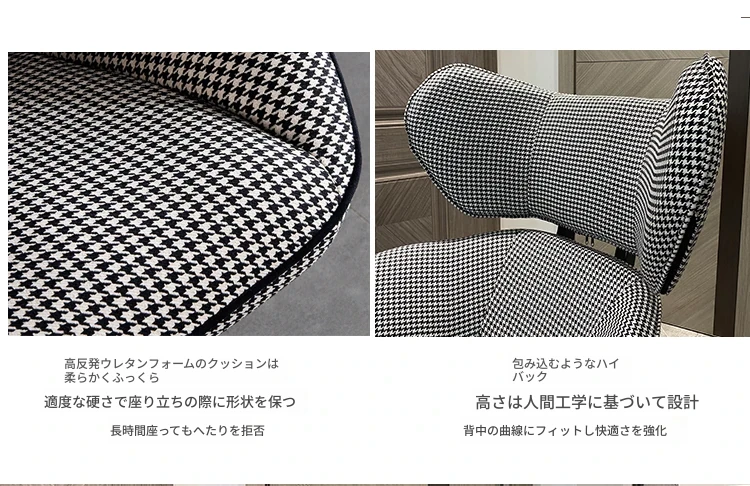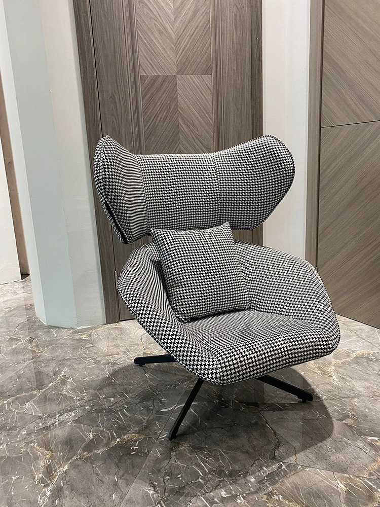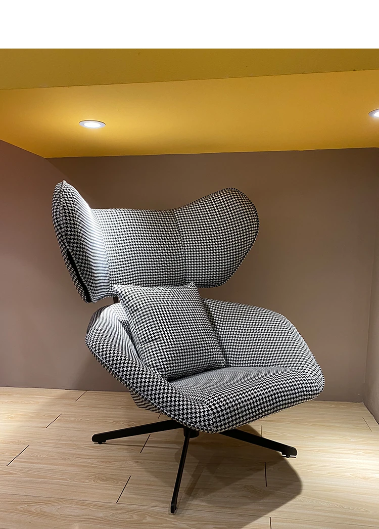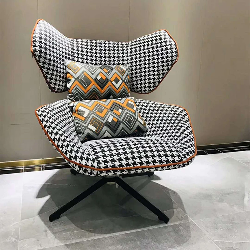 一人用千鳥格デザインの回転ソファチェア - 北欧スタイルのラグジュアリーなリーディングチェア、リラックスに最適な布製スネイルチェア!あなたのリビングをスタイリッシュに演出します。