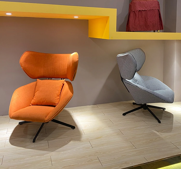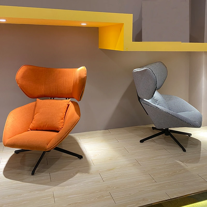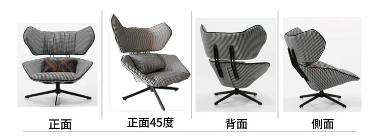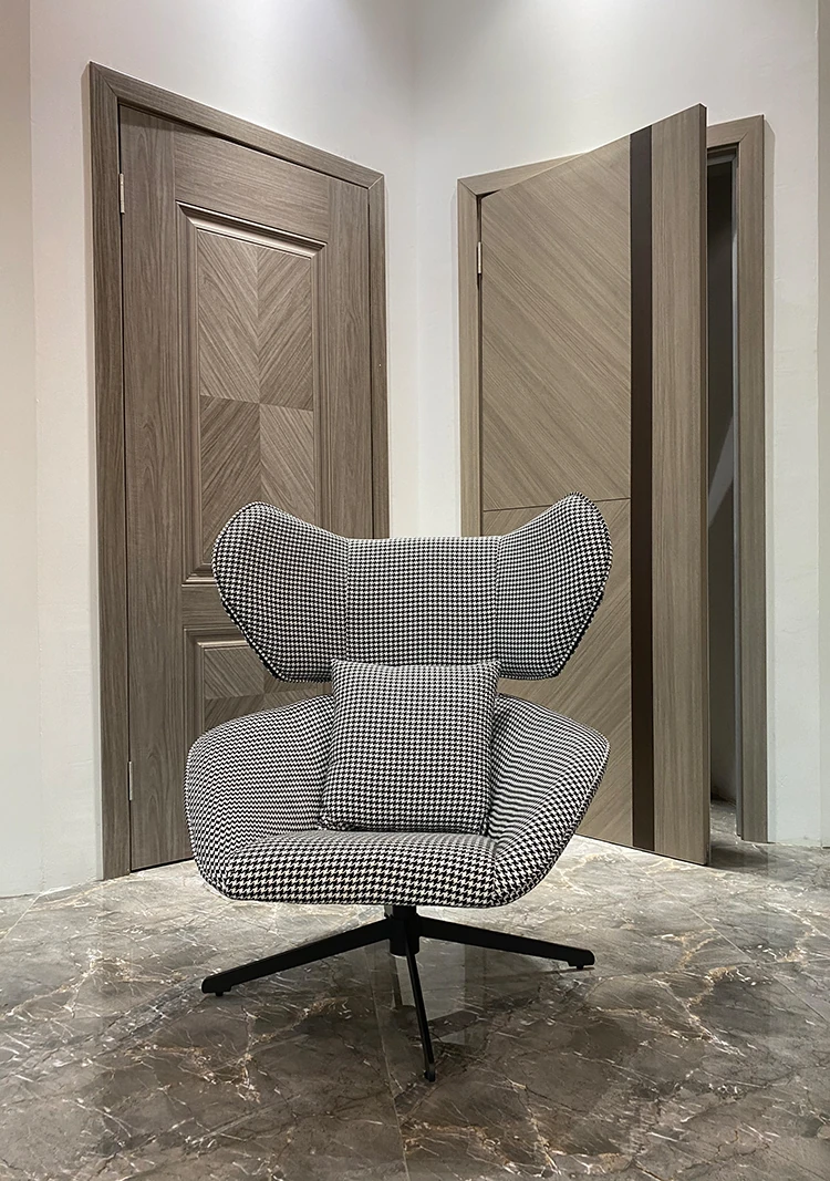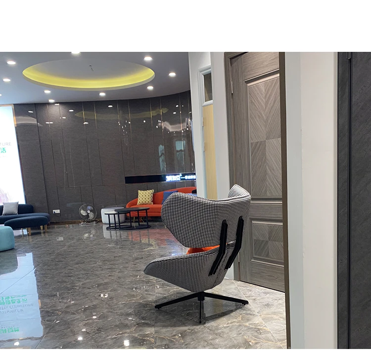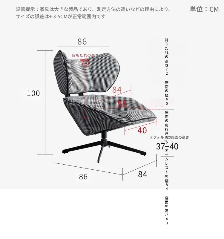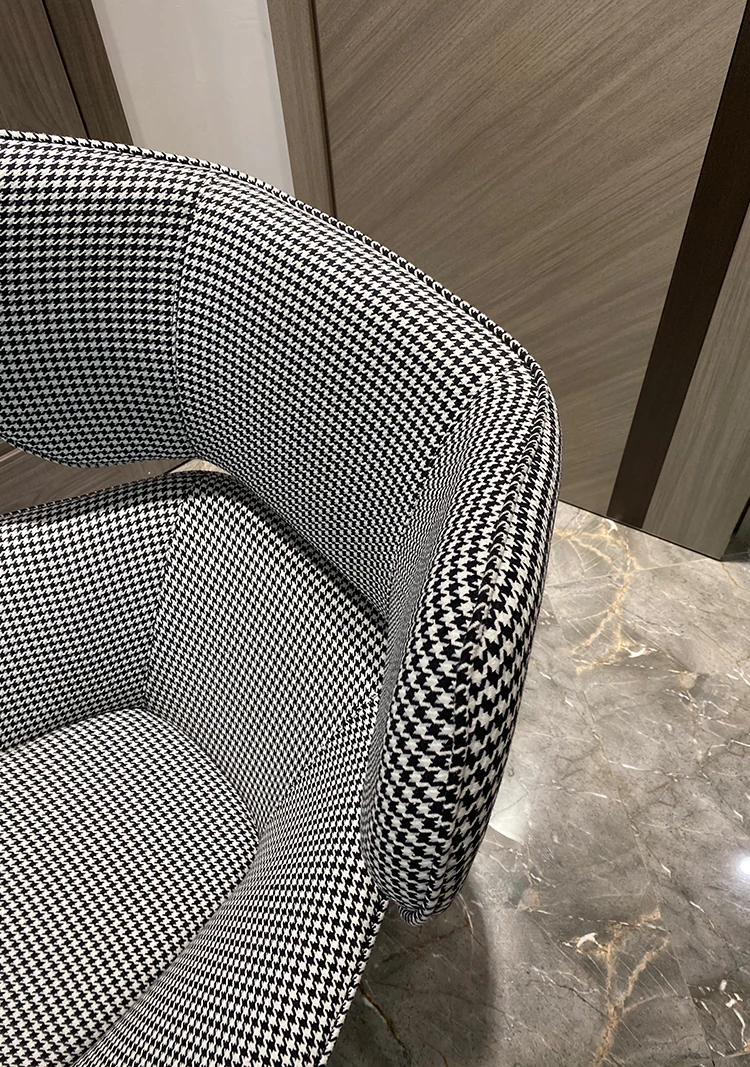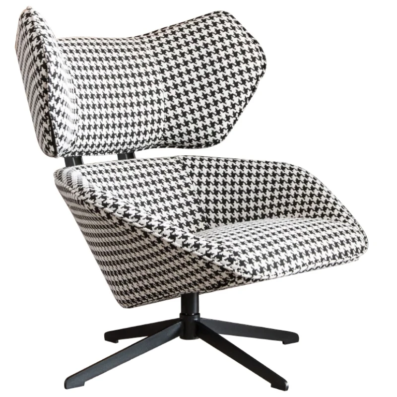 一人用千鳥格デザインの回転ソファチェア - 北欧スタイルのラグジュアリーなリーディングチェア、リラックスに最適な布製スネイルチェア!あなたのリビングをスタイリッシュに演出します。