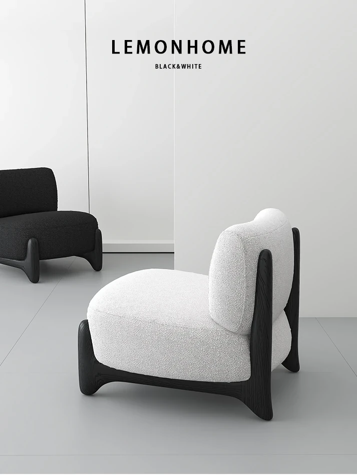 北欧風シンプルデザインの木製リビング用アームチェア - スペースを有効活用するモダンな小型ソファ。洗練されたスタイルで、快適なリラックス空間を提供します。