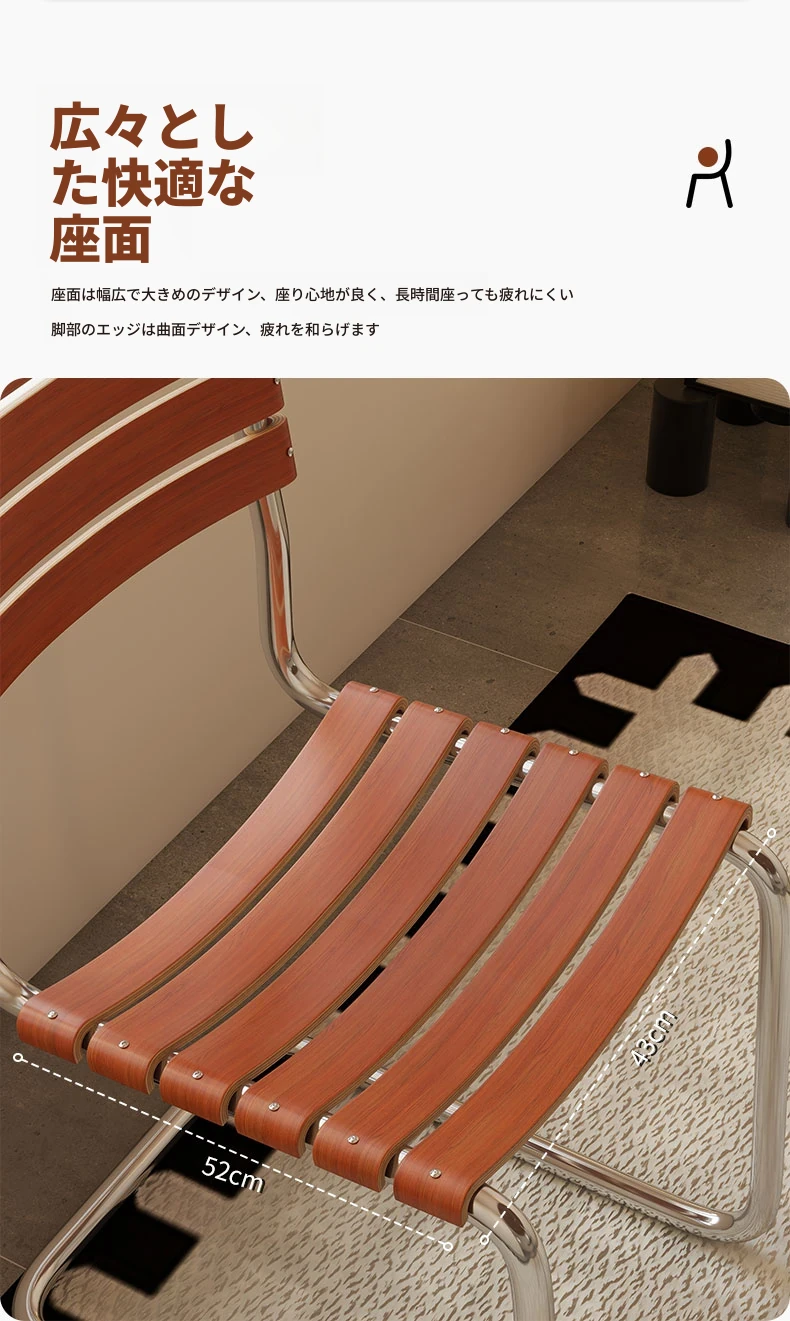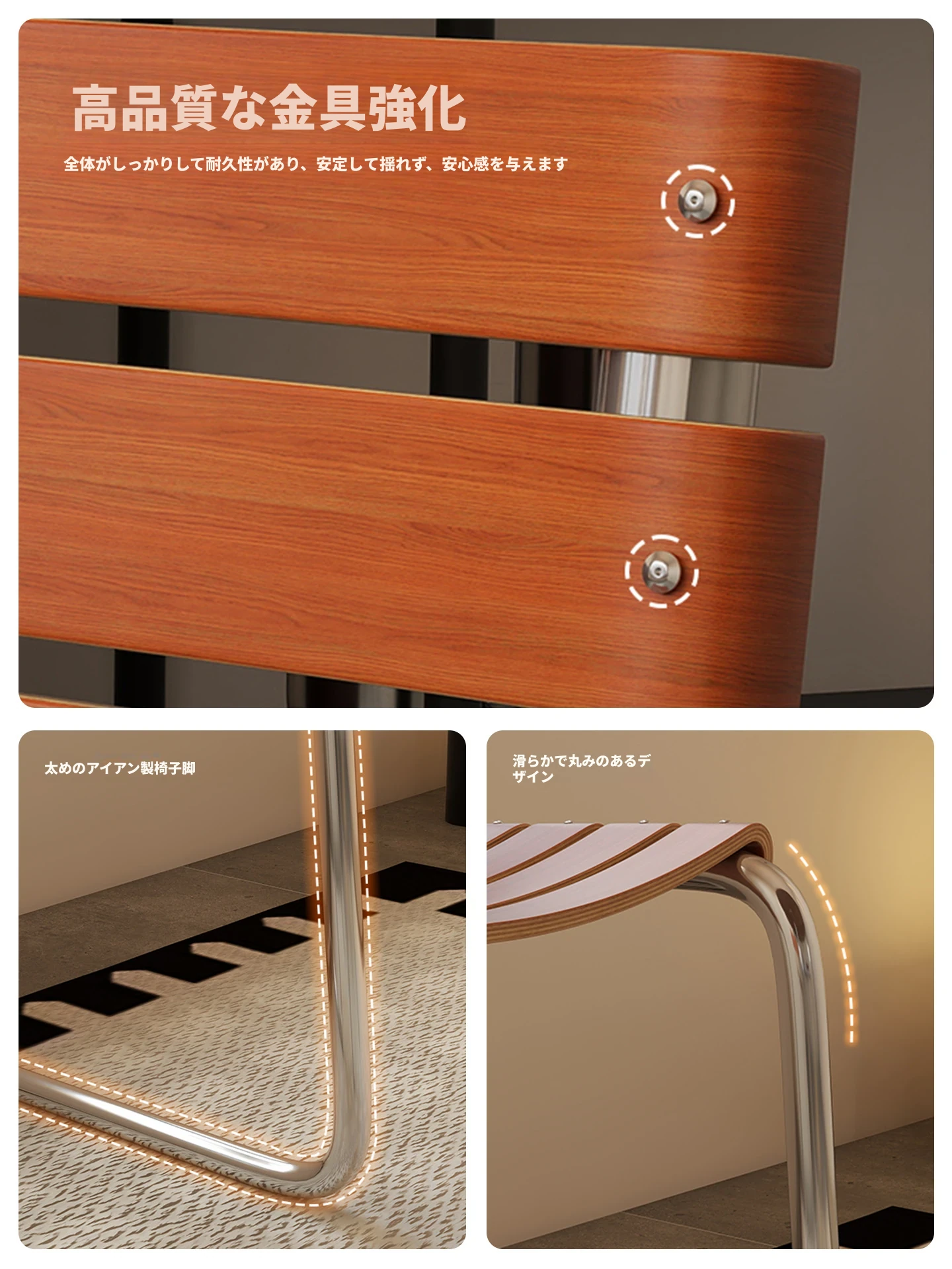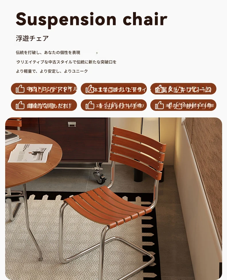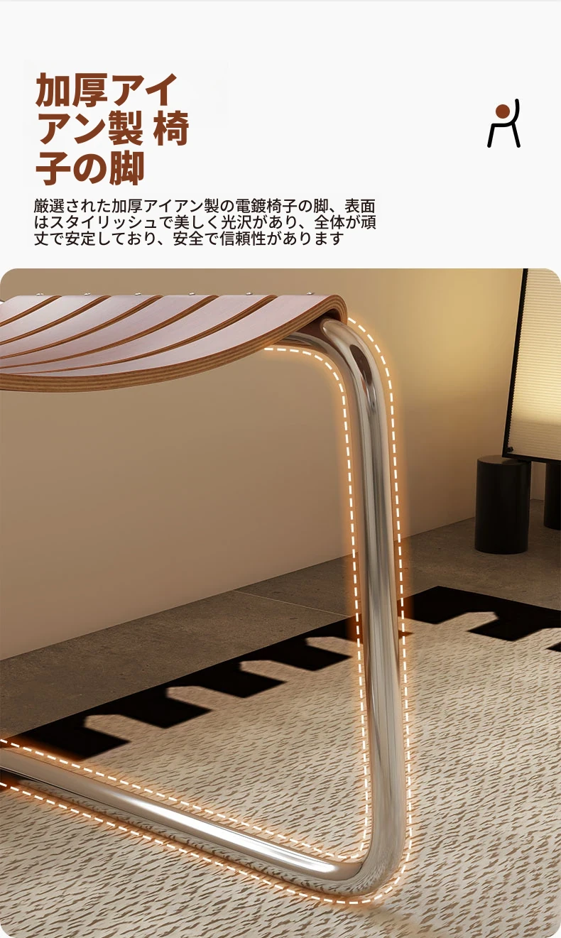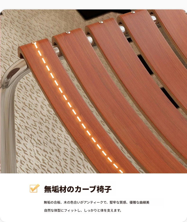 北欧デザインの無垢材ダイニング浮遊椅子 - 家庭用にも商業用にも最適!スタイリッシュな弓形デザインで、リラックスした食事のひとときを演出します。カフェやレストランにもピッタリ!