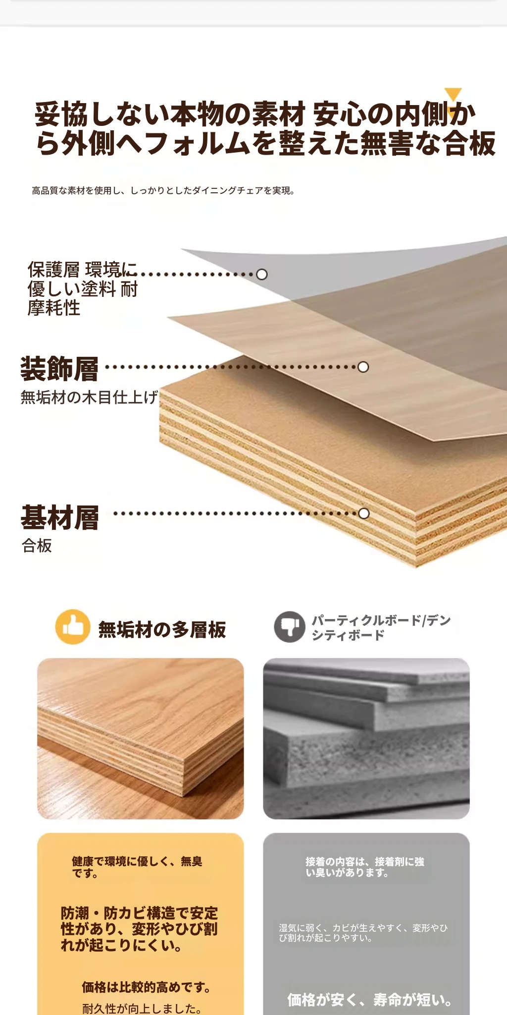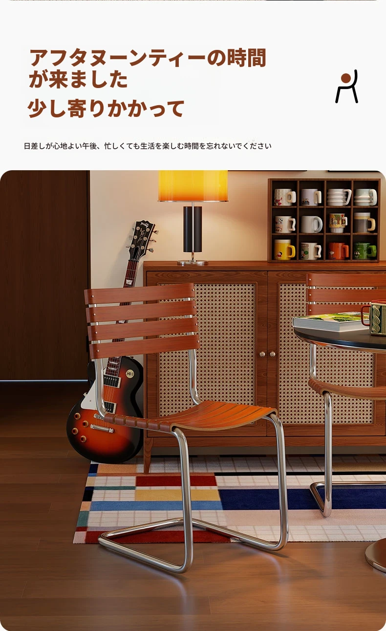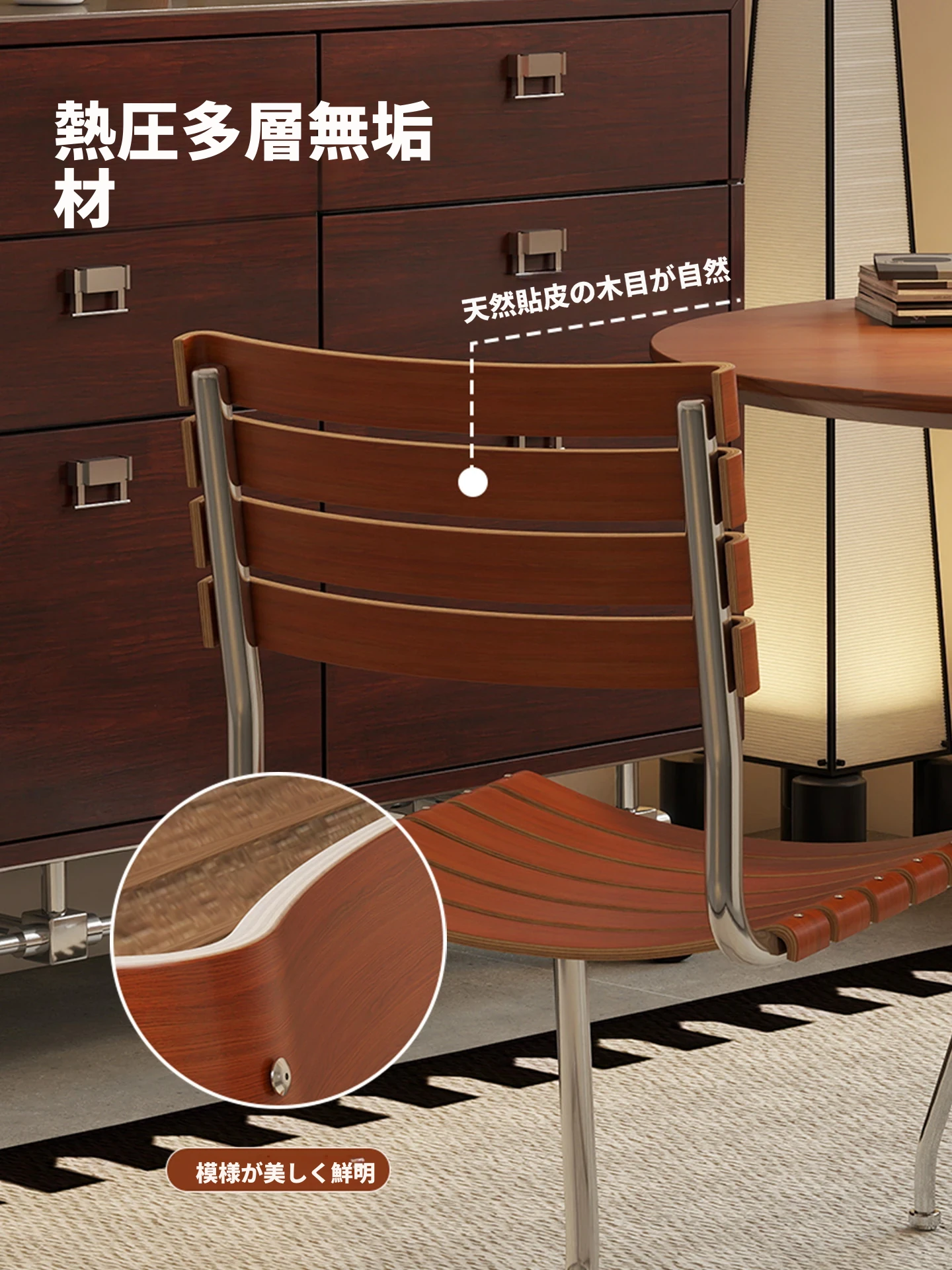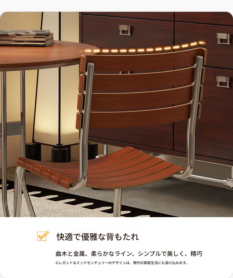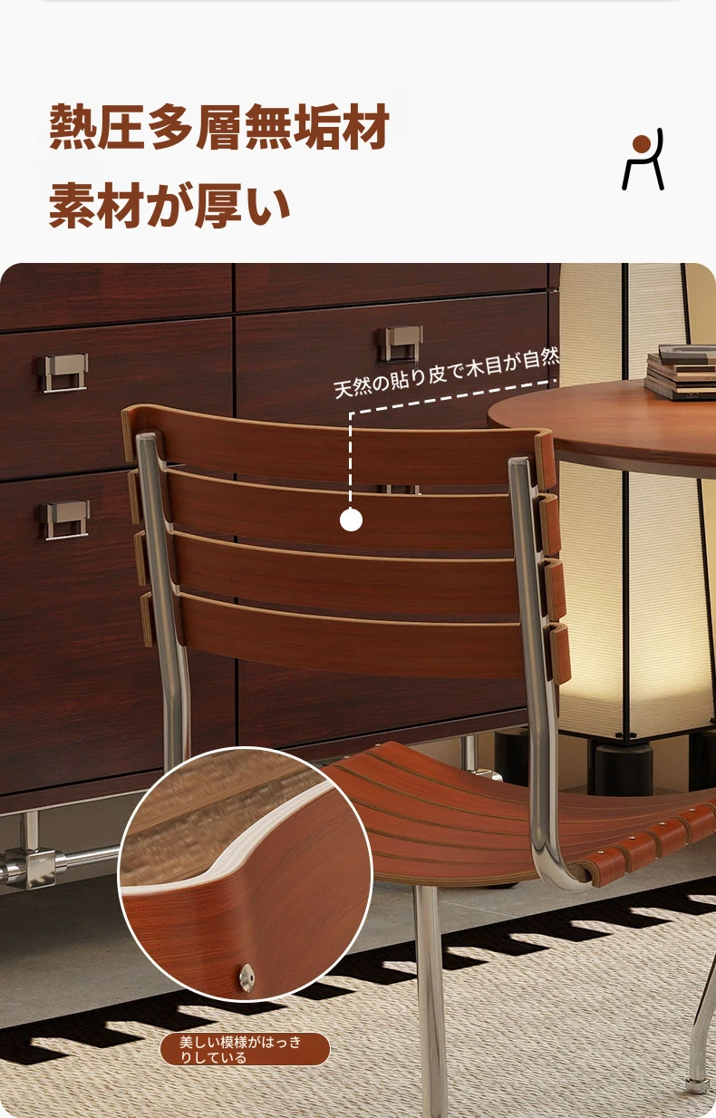 北欧デザインの無垢材ダイニング浮遊椅子 - 家庭用にも商業用にも最適!スタイリッシュな弓形デザインで、リラックスした食事のひとときを演出します。カフェやレストランにもピッタリ!