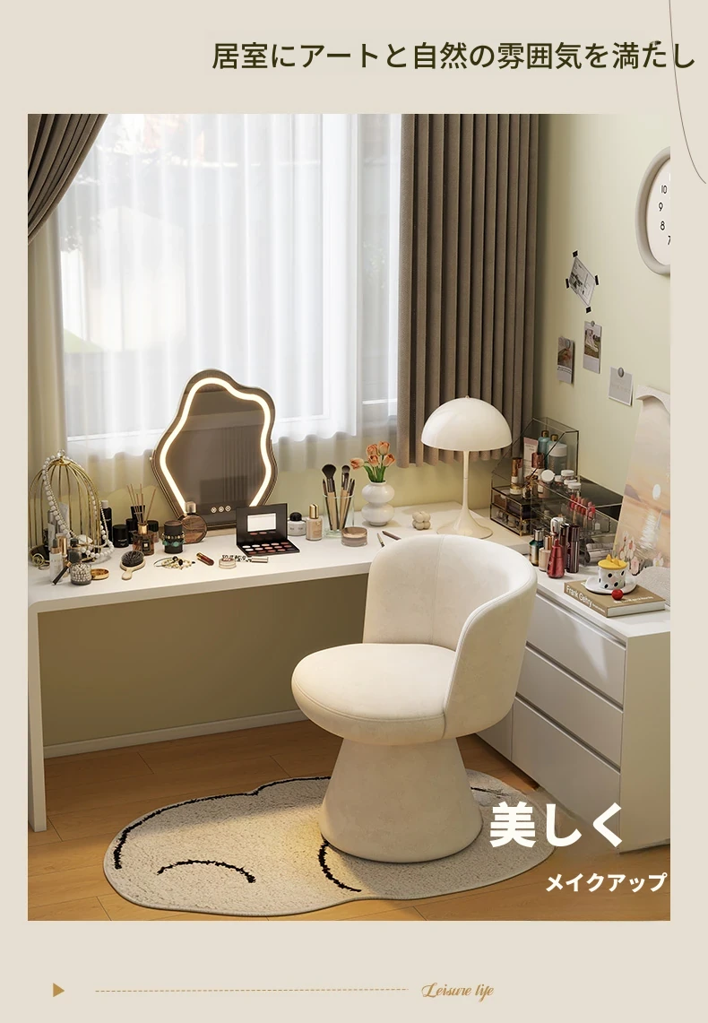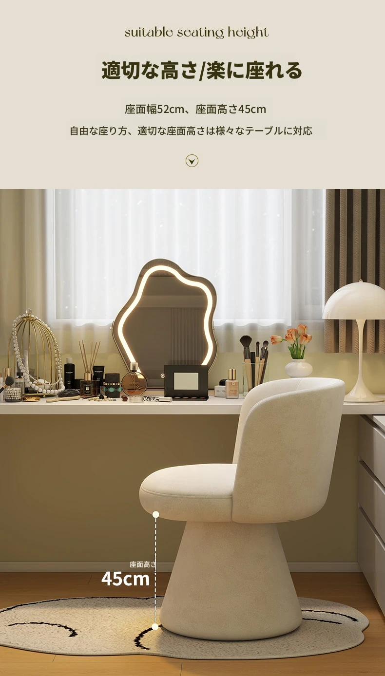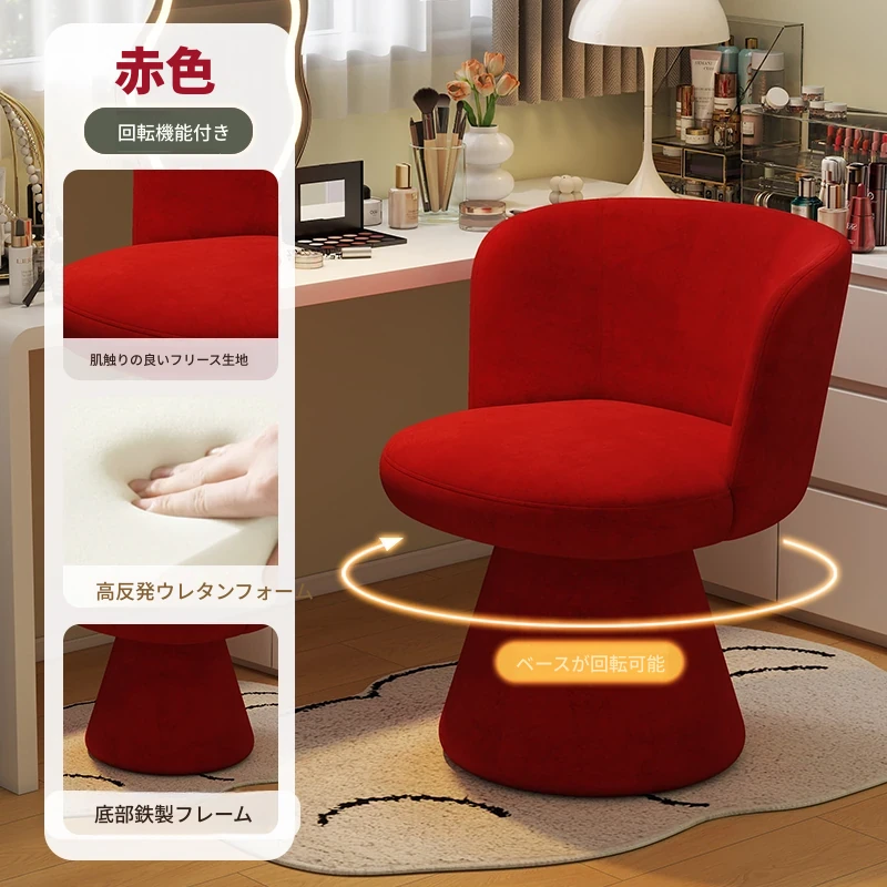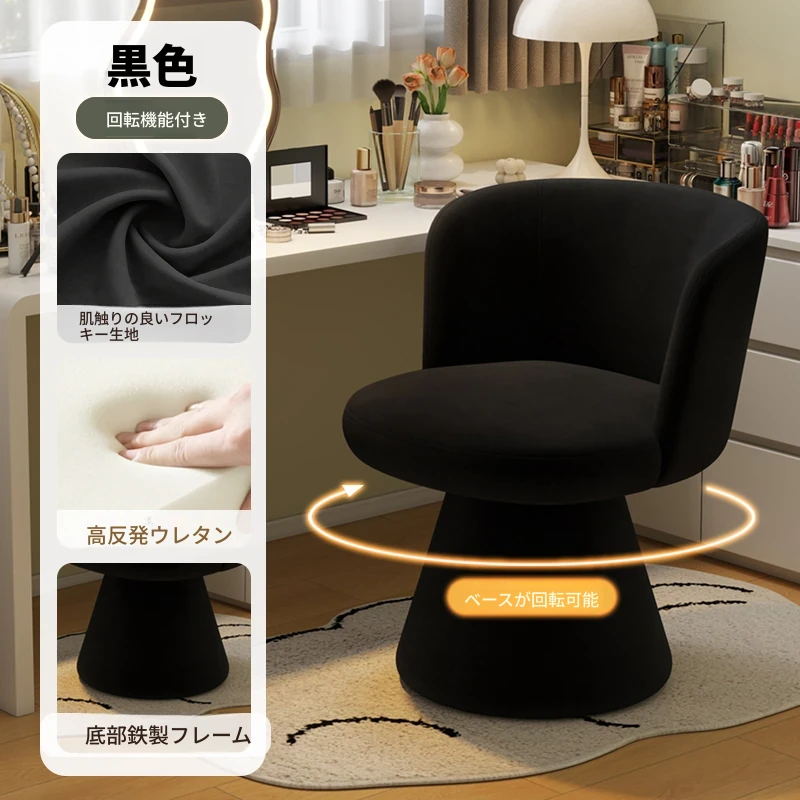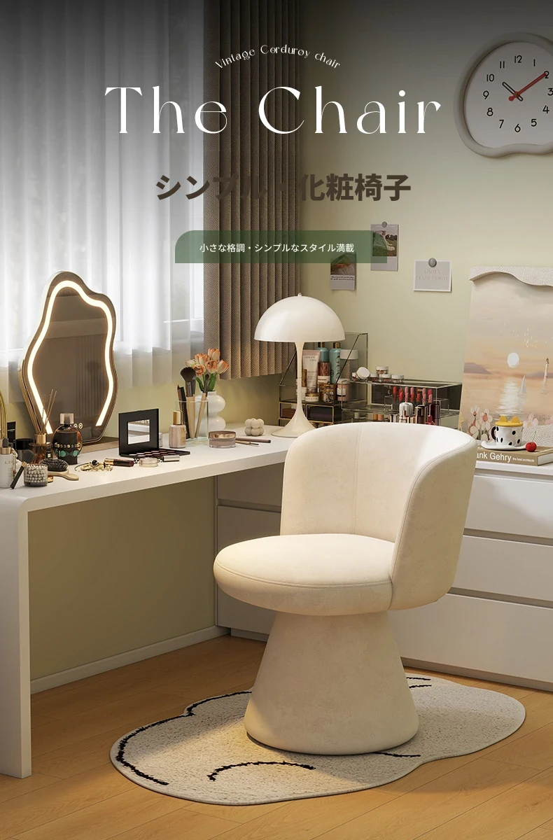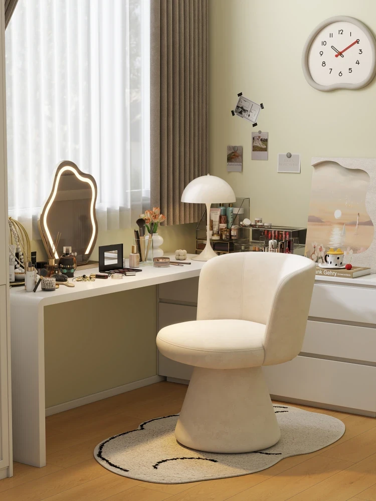 北欧スタイルの回転化粧椅子 - 高級感あふれるデザイン、女子の寝室にぴったりのスタイリッシュなドレッシングテーブル用チェア。デザイナーが手掛けた一人用のクローゼット用スツール。